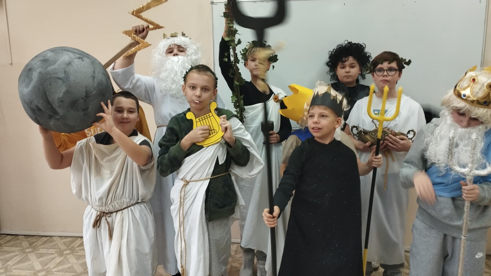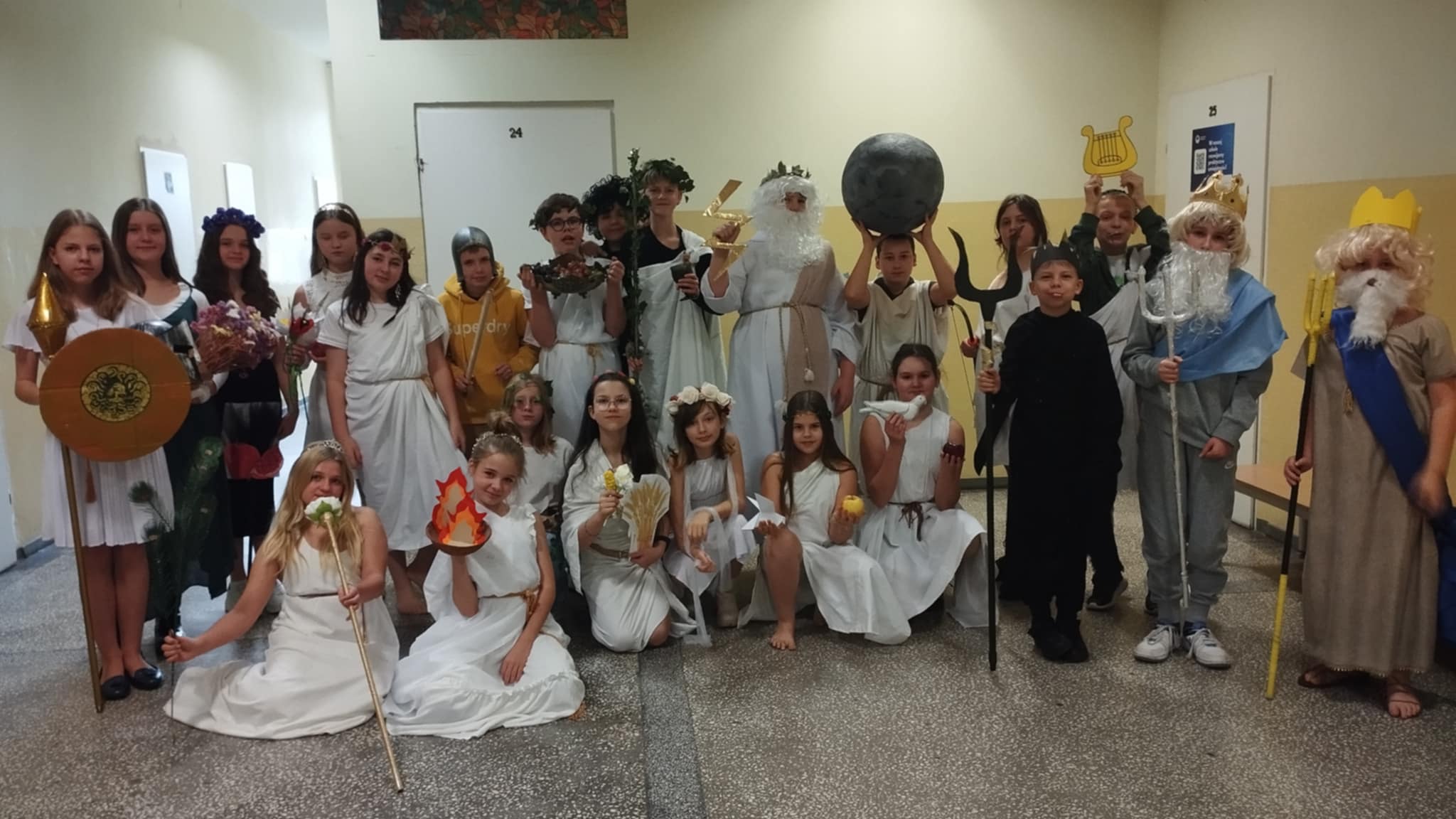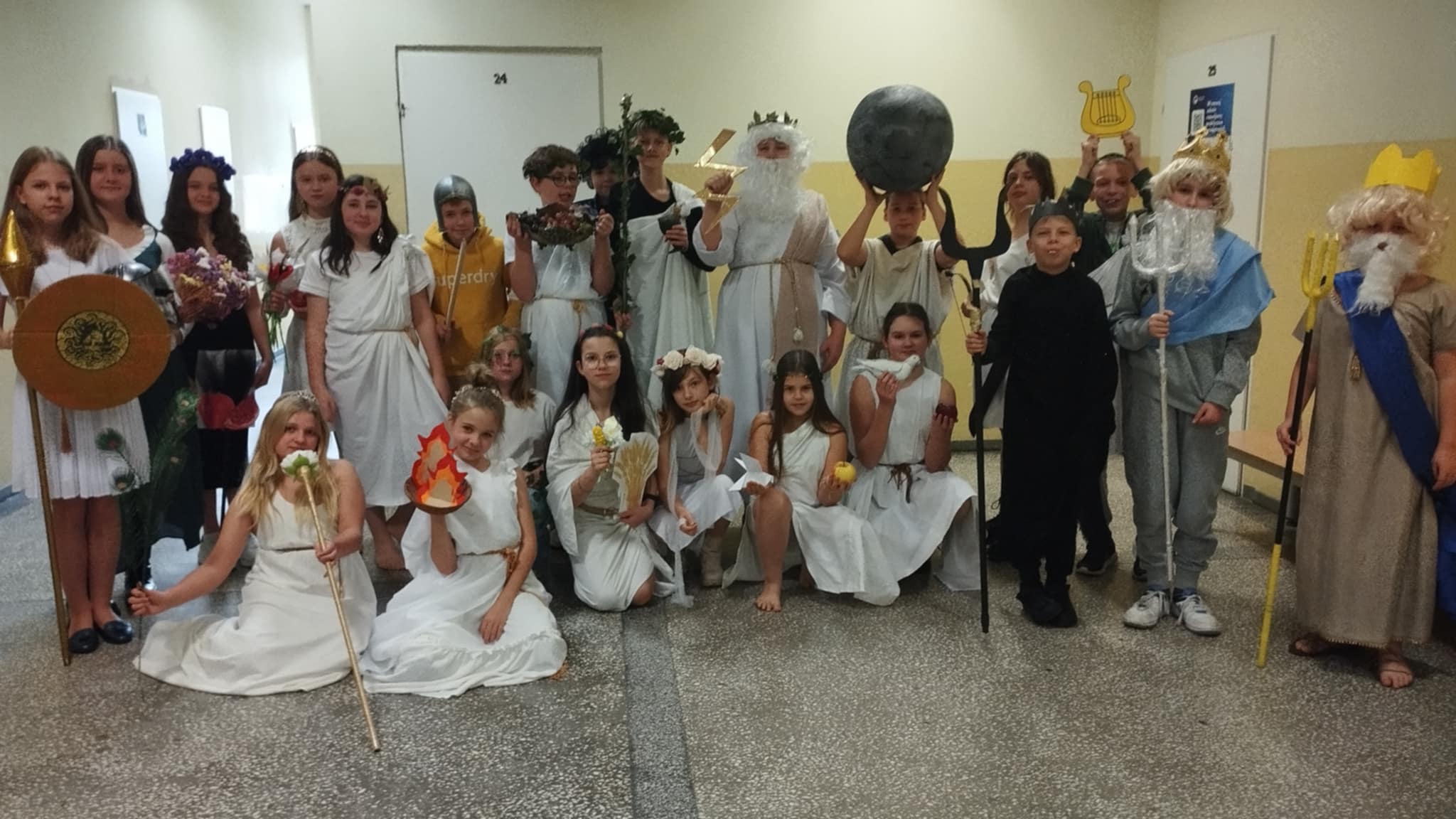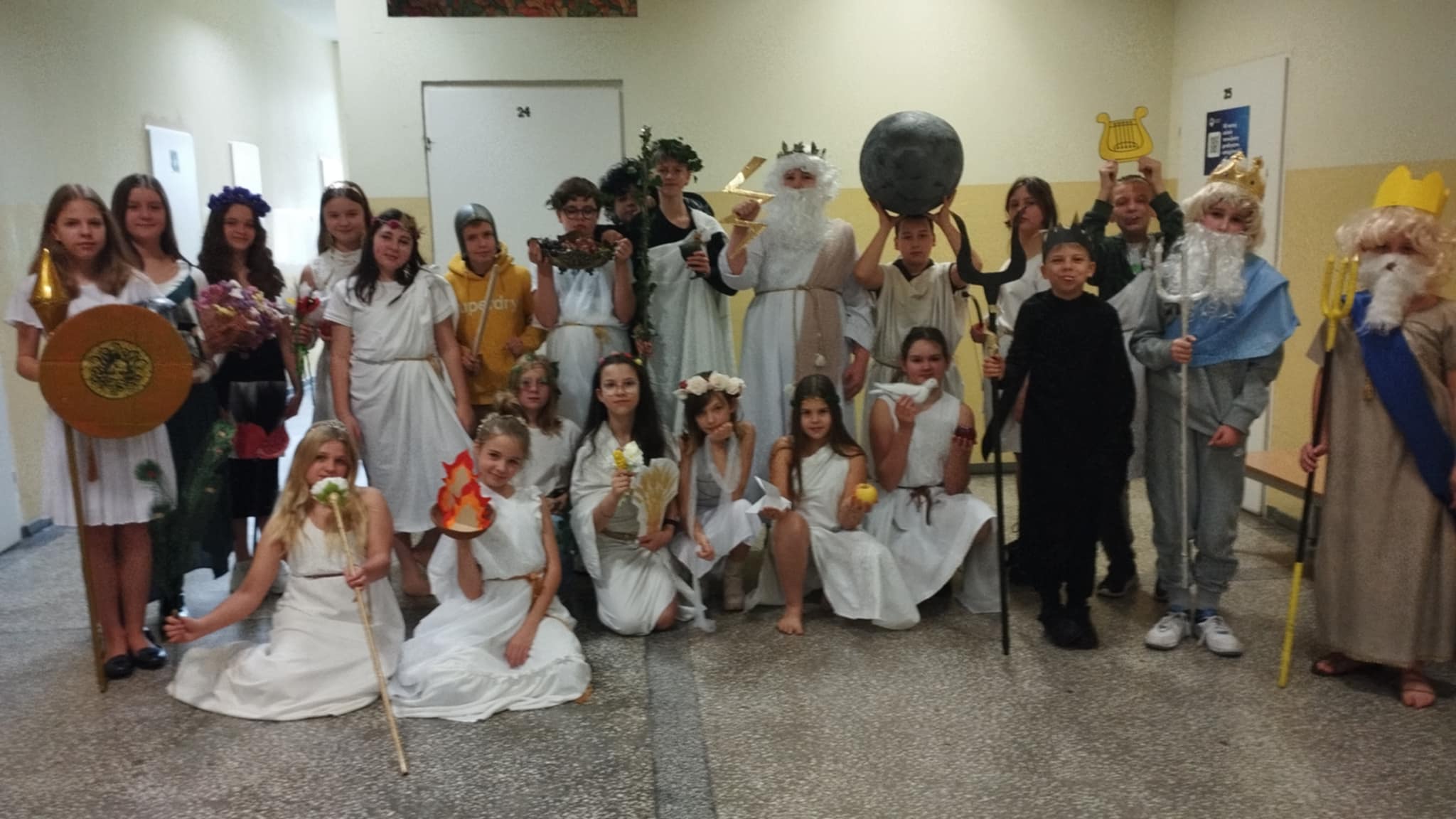 Dzisiaj piątoklasiści podsumowali swoje spotkania z bogami olimpijskimi na lekcjach języka polskiego. Przygotowali pokaz bogów, uprzednio sposobiąc się do niego - wspólnie z rodzicami - przez dwa tygodnie. Każdy bóg opowiadał krótko ( lub dłużej ) o sobie. I choć niektórym spadały sandały, innym peruki, a strzały leciały w innym kierunku......całość wypadła okazale. Dziękujemy rodzicom za zaangażowanie!