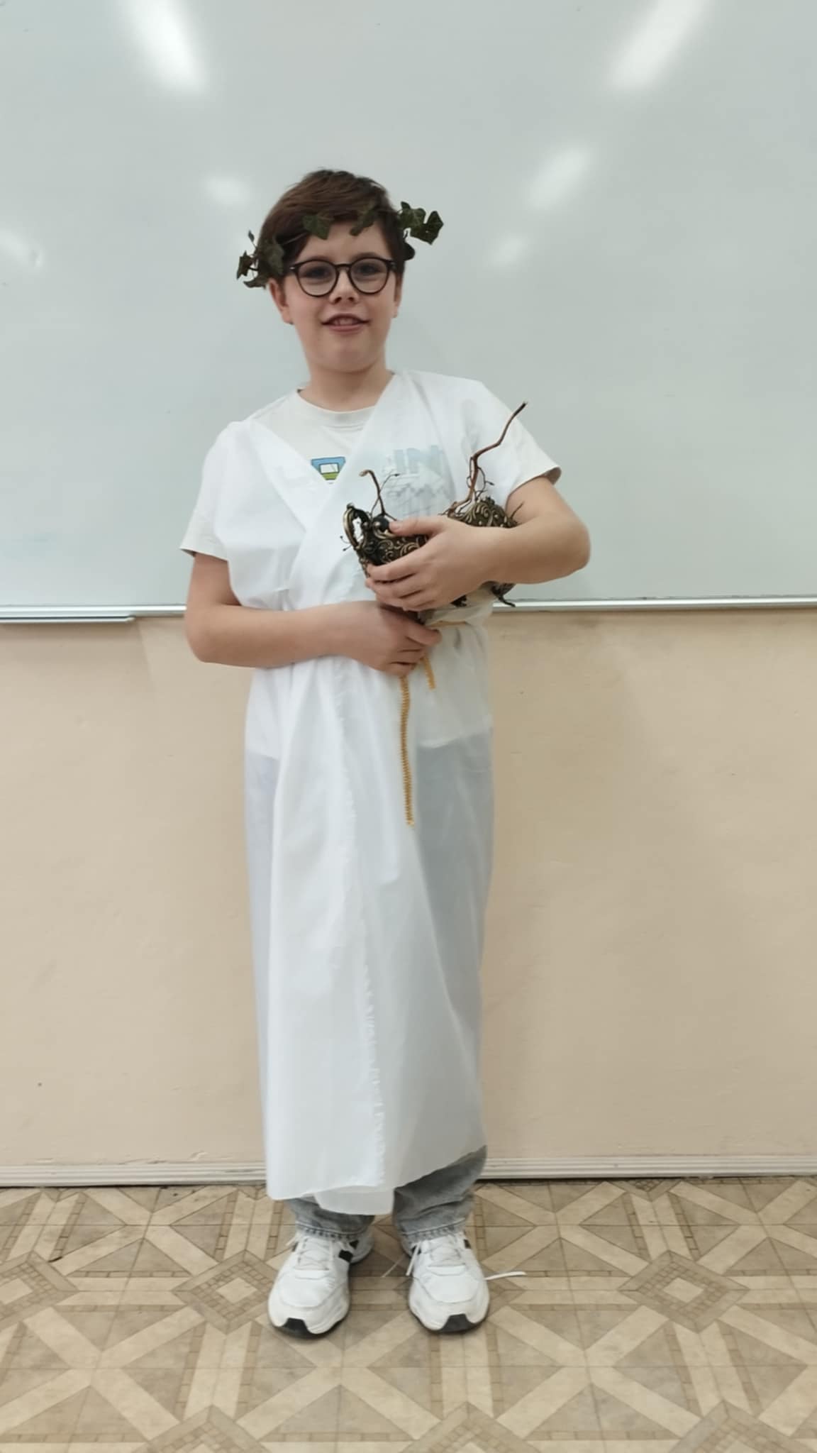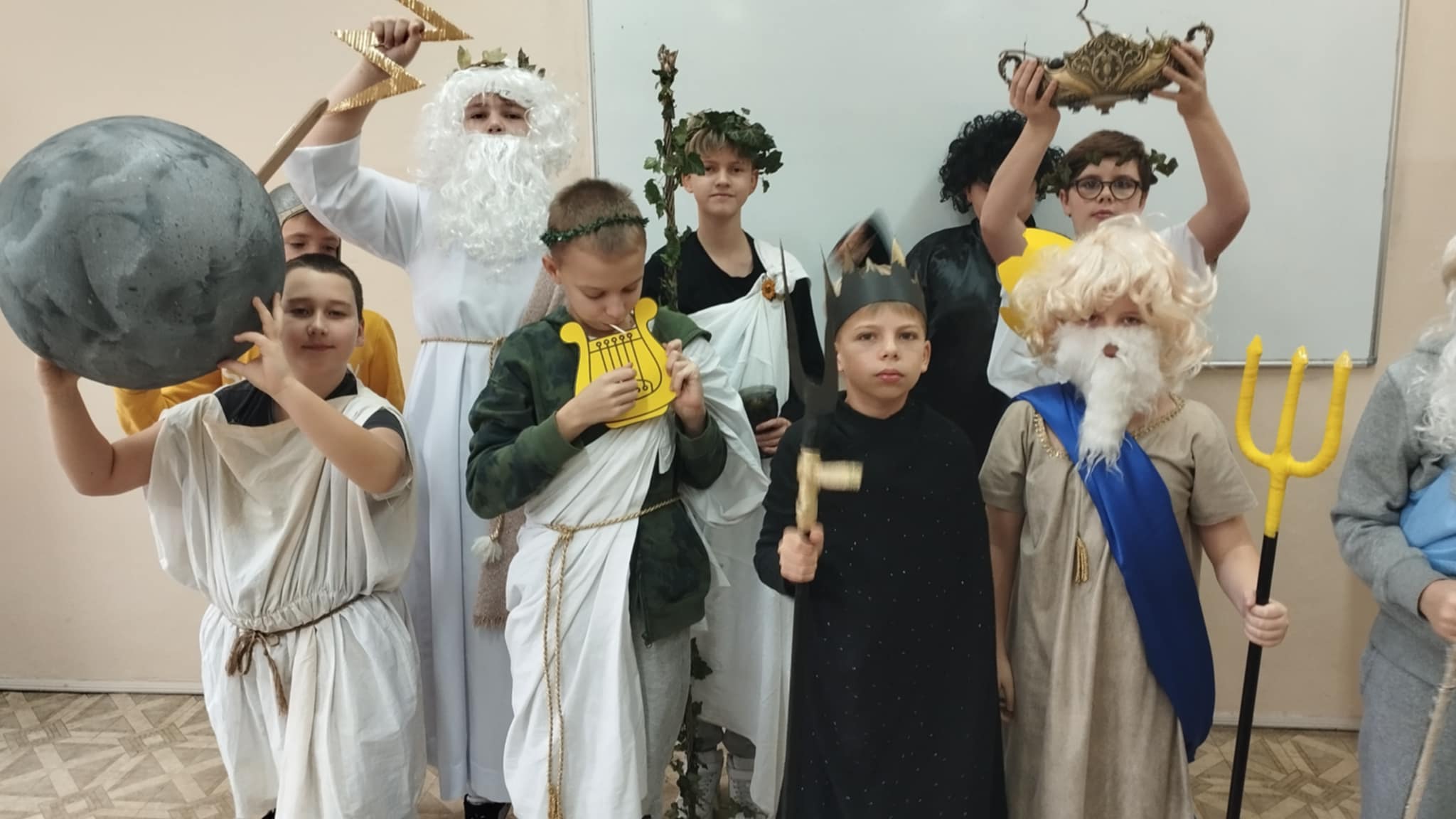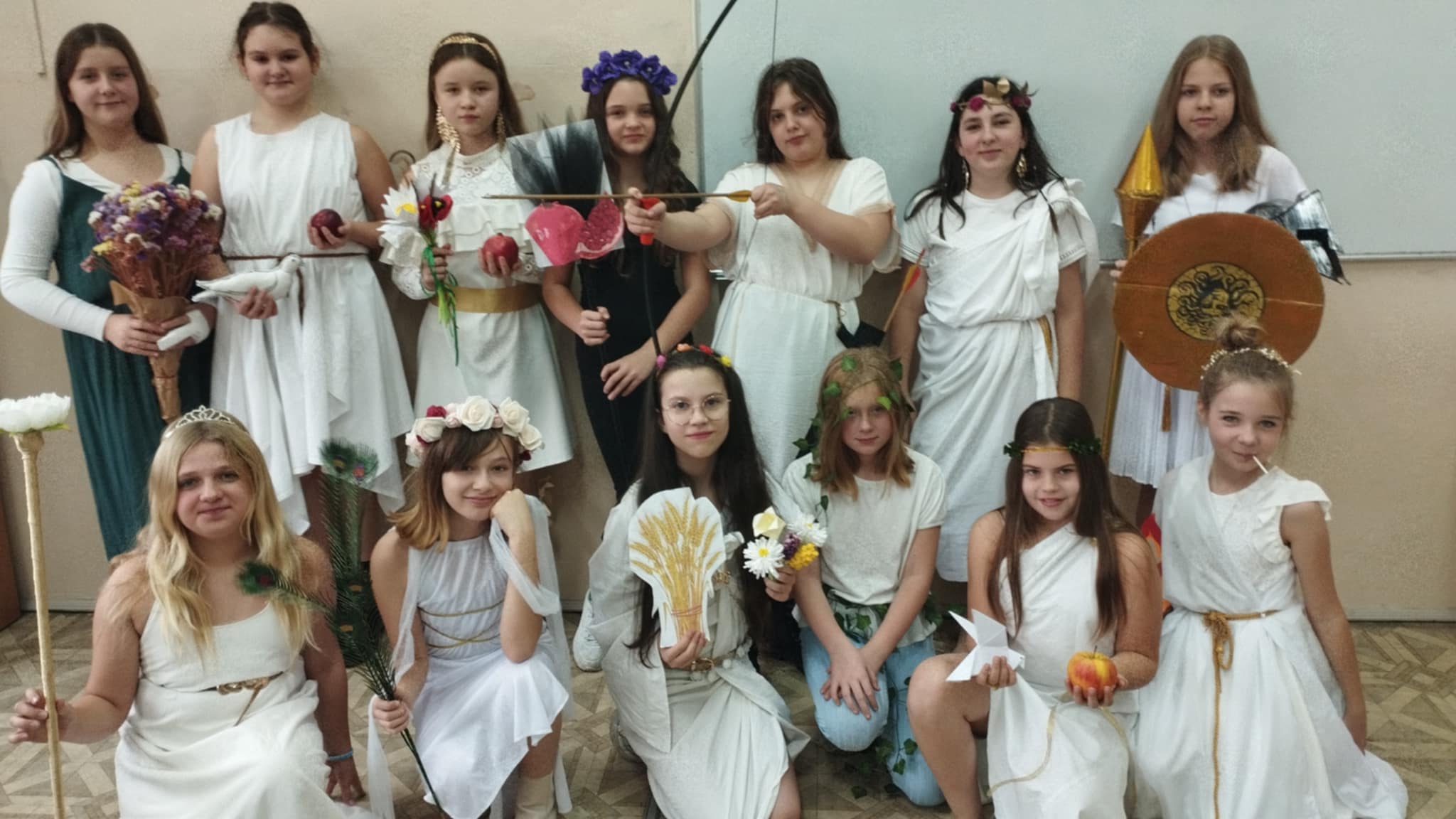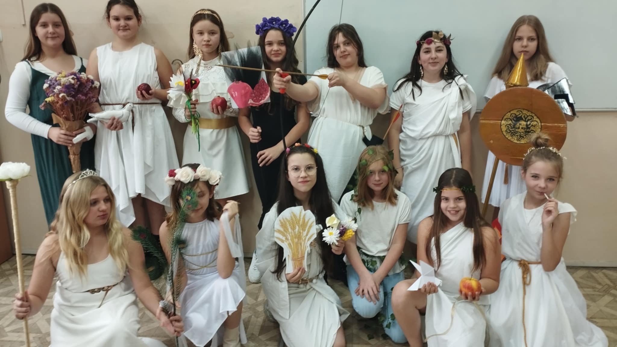 Dzisiaj piątoklasiści podsumowali swoje spotkania z bogami olimpijskimi na lekcjach języka polskiego. Przygotowali pokaz bogów, uprzednio sposobiąc się do niego - wspólnie z rodzicami - przez dwa tygodnie. Każdy bóg opowiadał krótko ( lub dłużej ) o sobie. I choć niektórym spadały sandały, innym peruki, a strzały leciały w innym kierunku......całość wypadła okazale. Dziękujemy rodzicom za zaangażowanie!