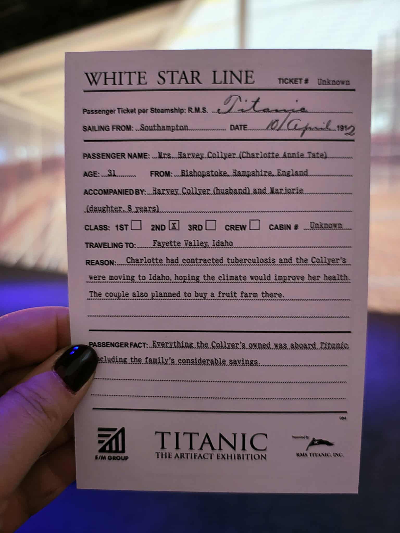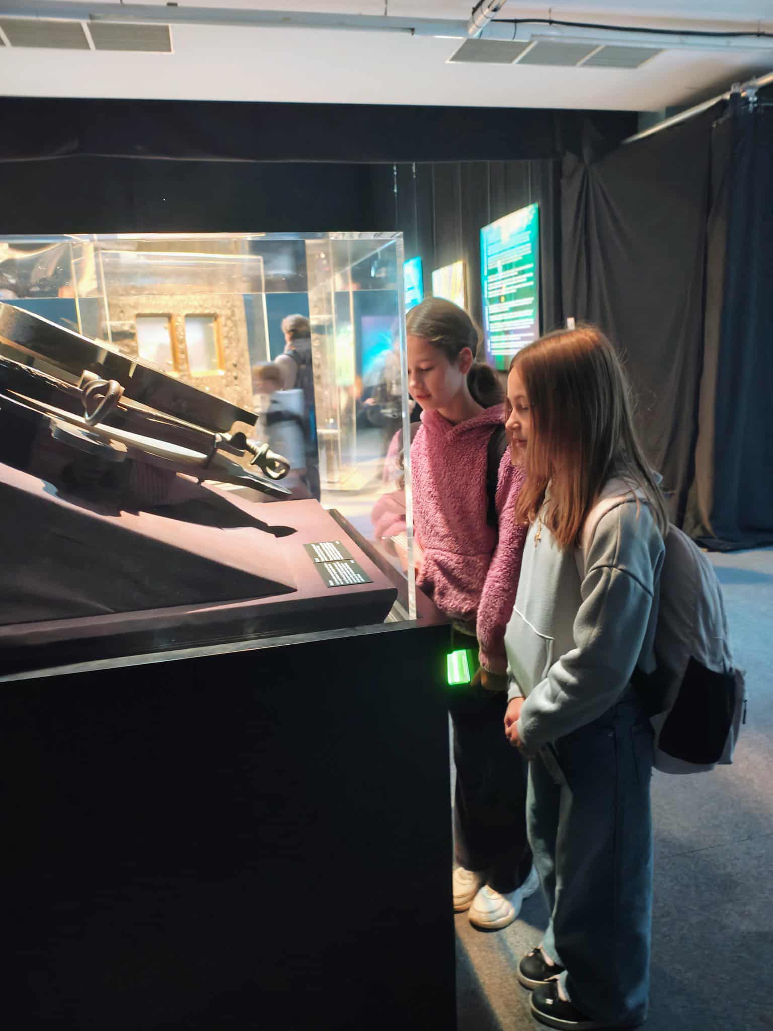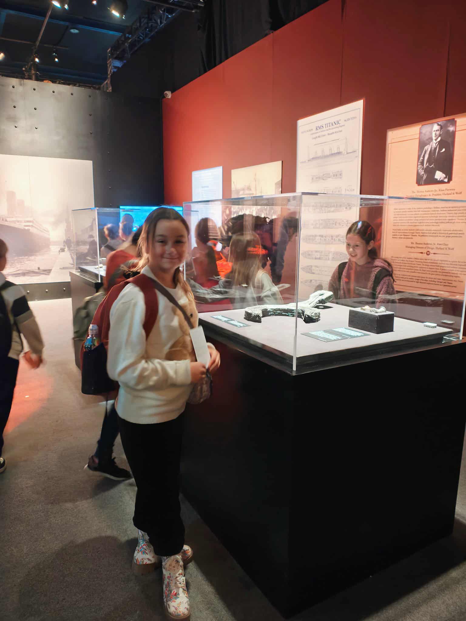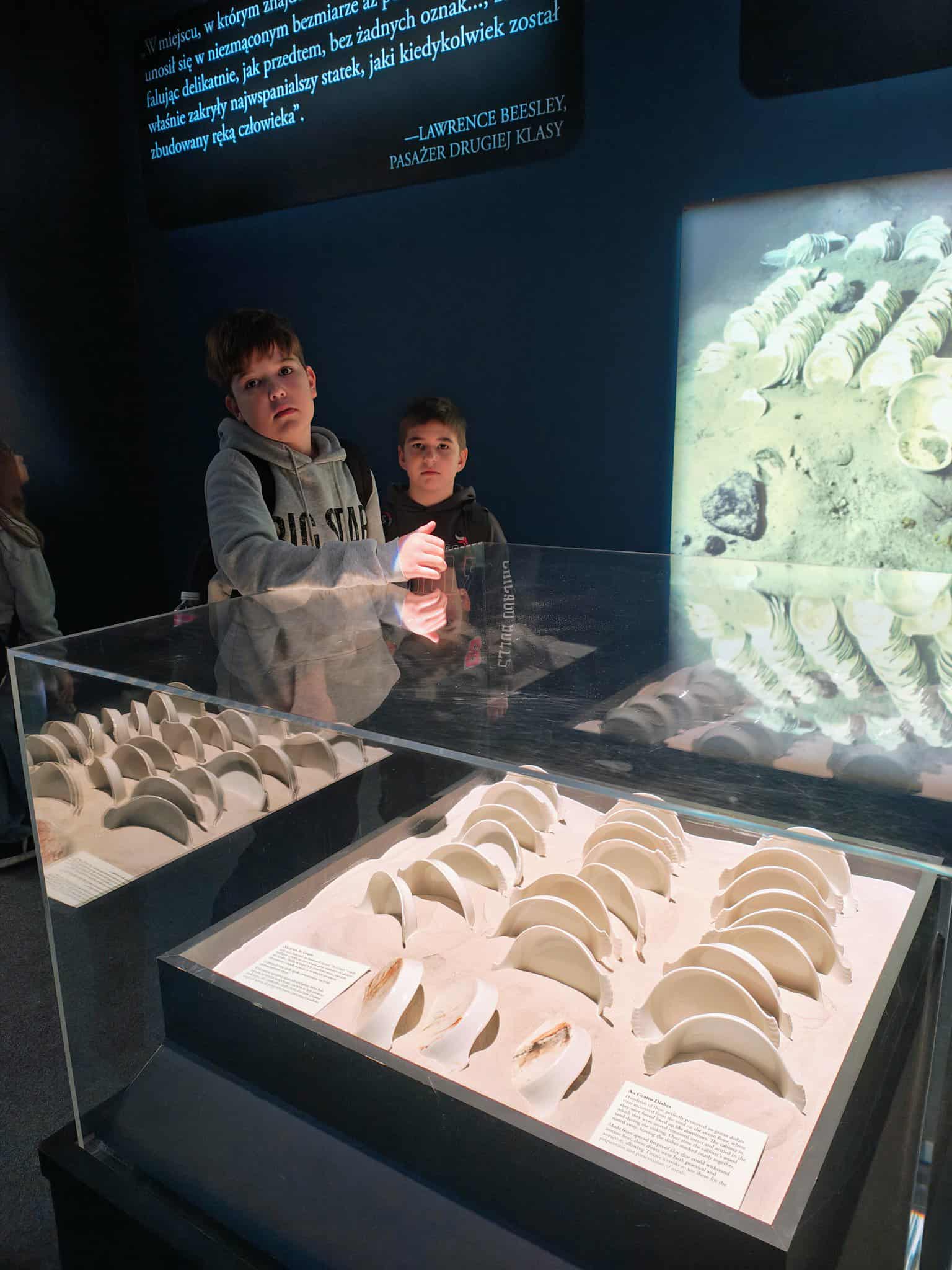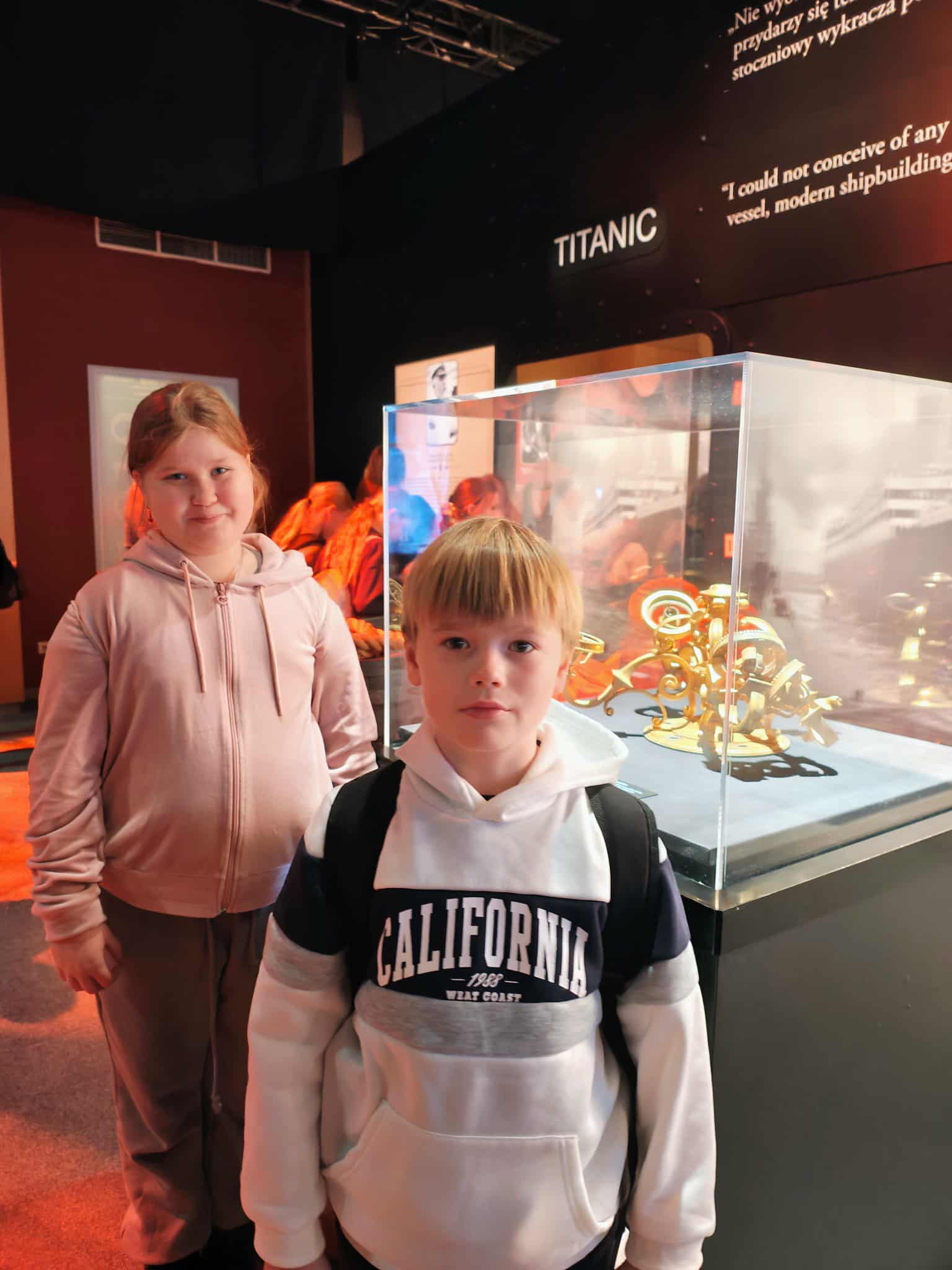 Kluczowym punktem programu było zwiedzanie wystawy artefaktów z Titanica. Uczniowie z zapartym tchem oglądali oryginalne przedmioty wydobyte z wraku słynnego statku. Mogliśmy zobaczyć m.in. biżuterię, elementy wyposażenia kabin. Była to niezwykle pouczająca lekcja historii i techniki, która zrobiła na wszystkich ogromne wrażenie i skłoniła do wielu refleksji nad tą tragiczną katastrofą. Każdy z uczestników na początku wyprawy dostał kartę pokładową, by móc na końcu sprawdzić, czy jego postać przeżyła katastrofę transatlantyka.