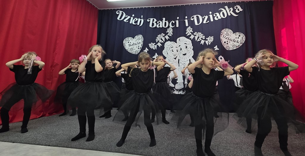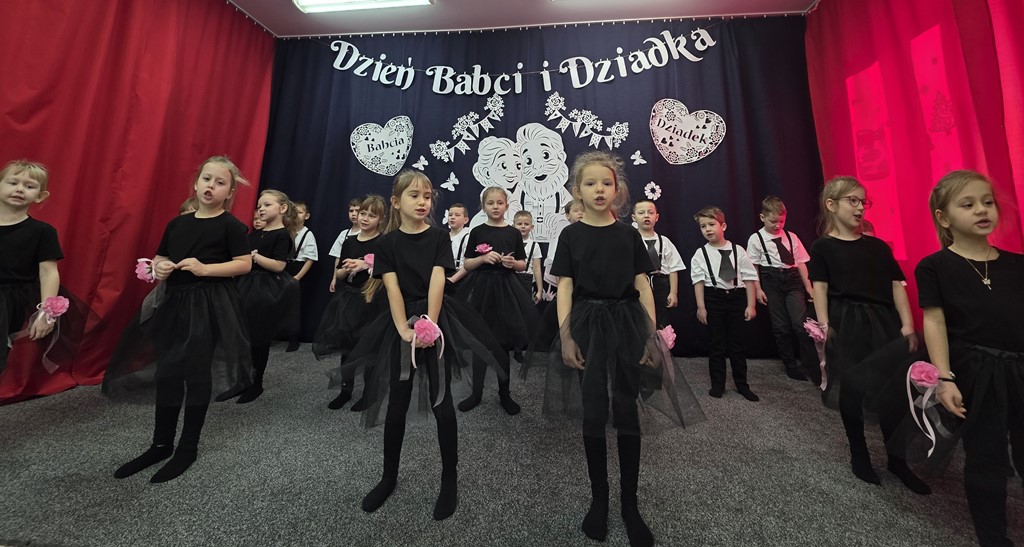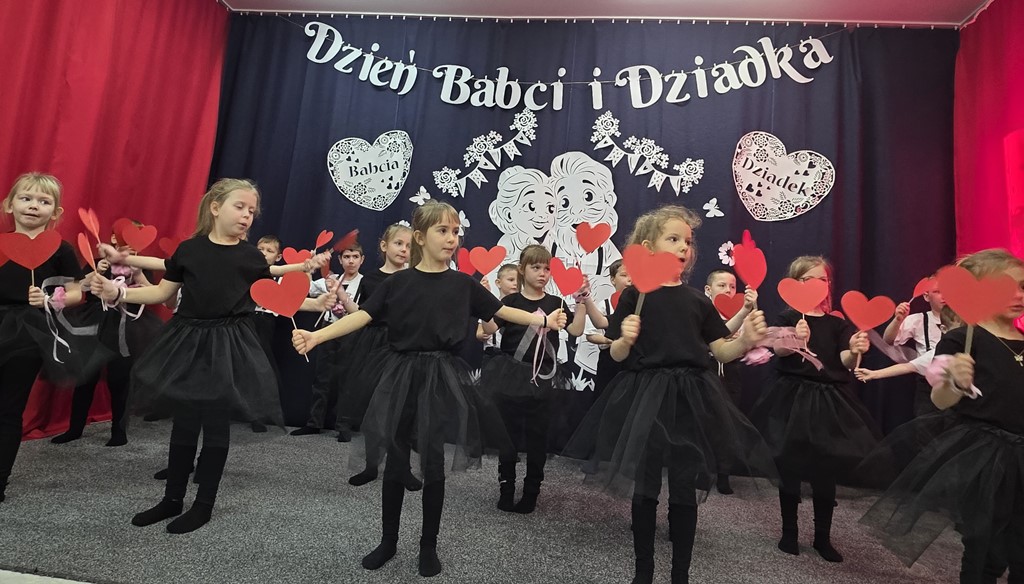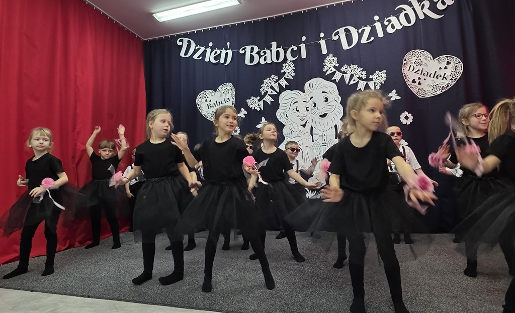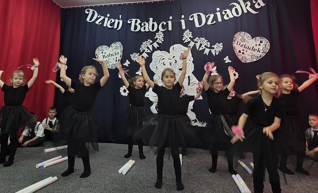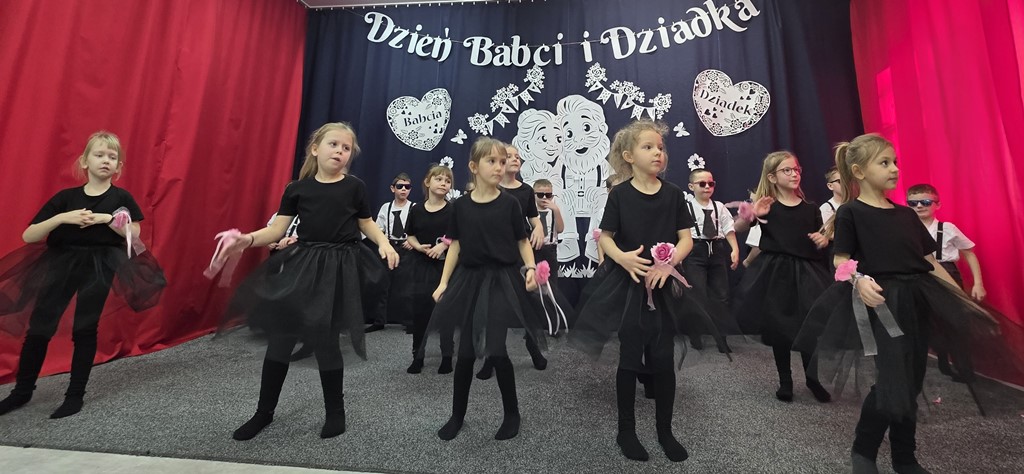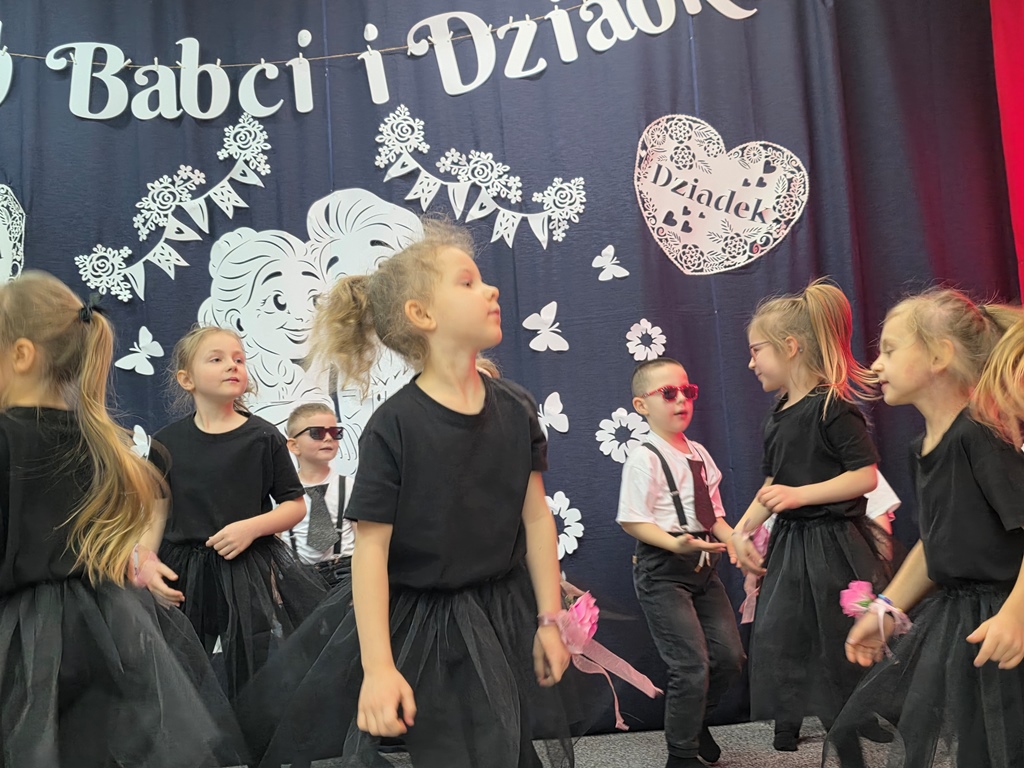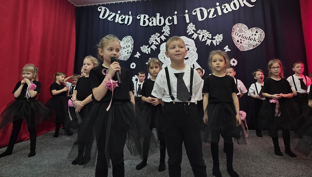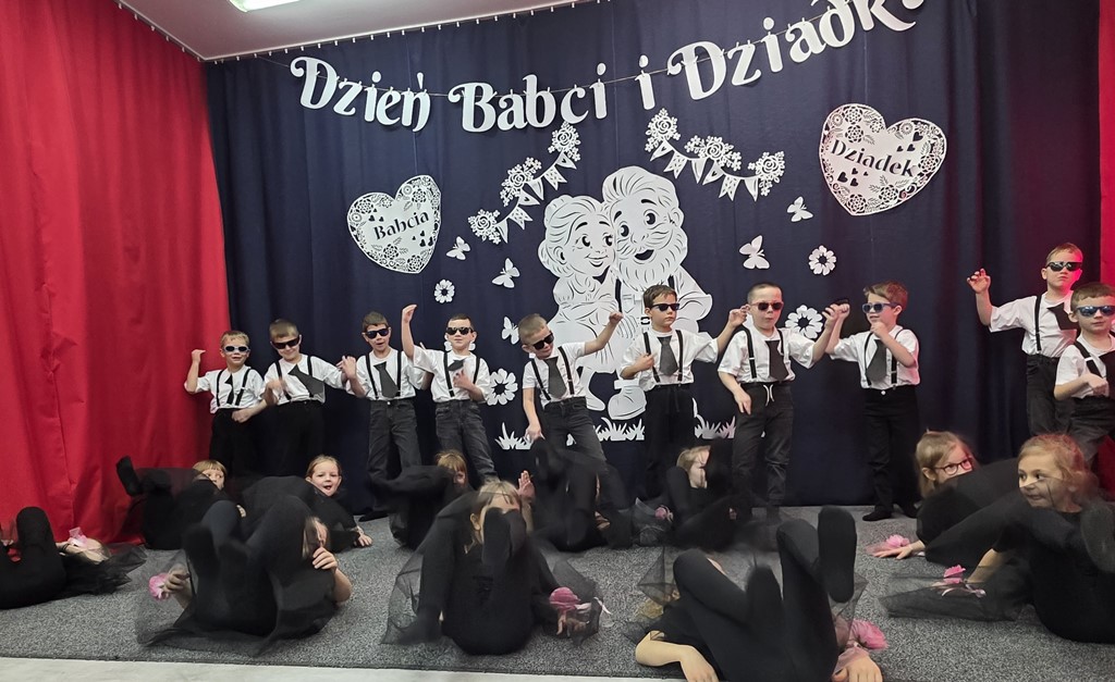 Wnuki z ogromnym zaangażowaniem zaprezentowały pięknie przygotowany program artystyczny. Nie zabrakło wzruszających wierszy, radosnych piosenek oraz oryginalnych układów tanecznych z wykorzystaniem różnorodnych rekwizytów. Każdy występ był wyrazem wdzięczności, miłości i szacunku wobec Babć i Dziadków.