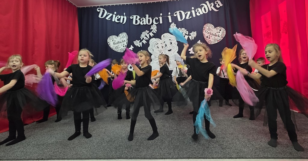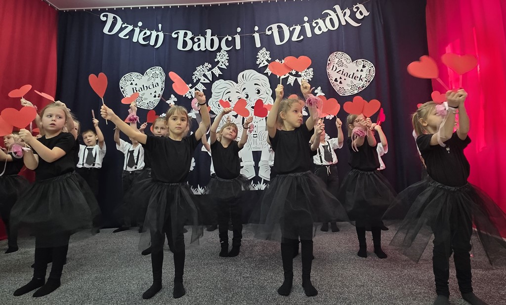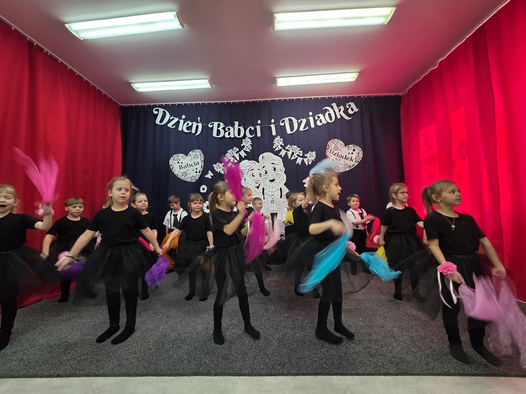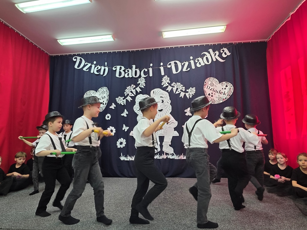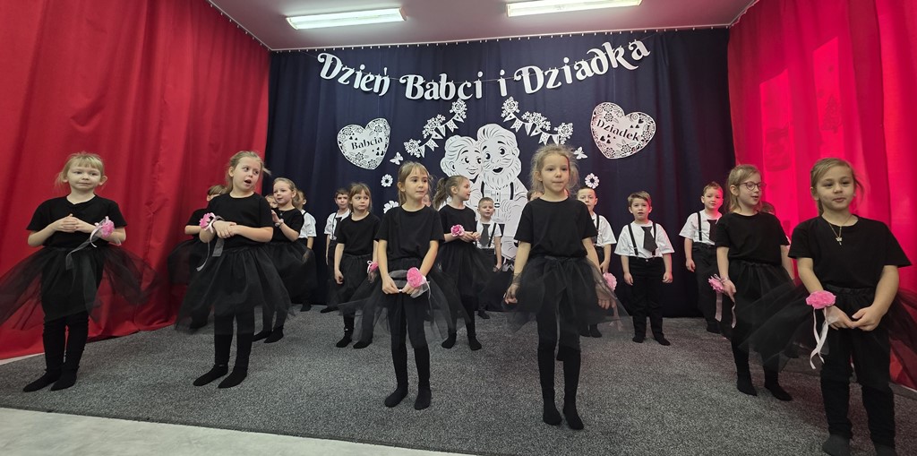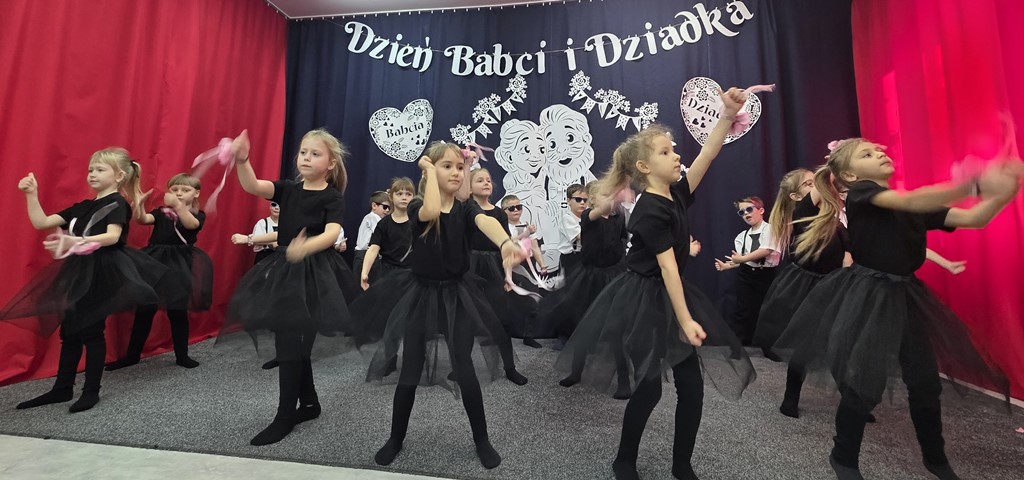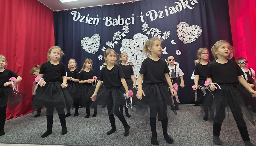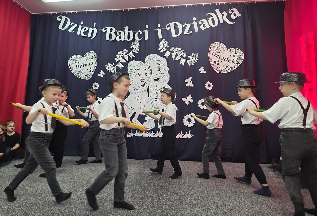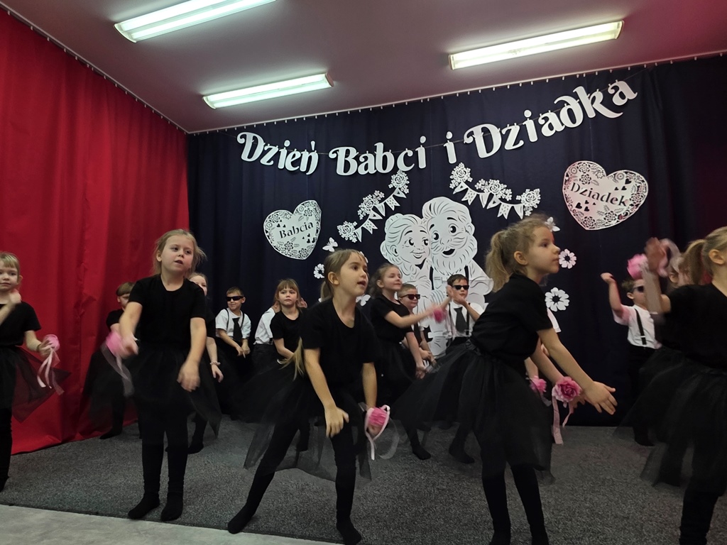 Wnuki z ogromnym zaangażowaniem zaprezentowały pięknie przygotowany program artystyczny. Nie zabrakło wzruszających wierszy, radosnych piosenek oraz oryginalnych układów tanecznych z wykorzystaniem różnorodnych rekwizytów. Każdy występ był wyrazem wdzięczności, miłości i szacunku wobec Babć i Dziadków.