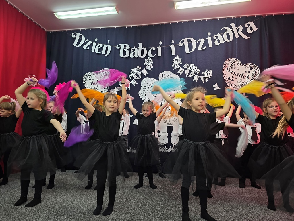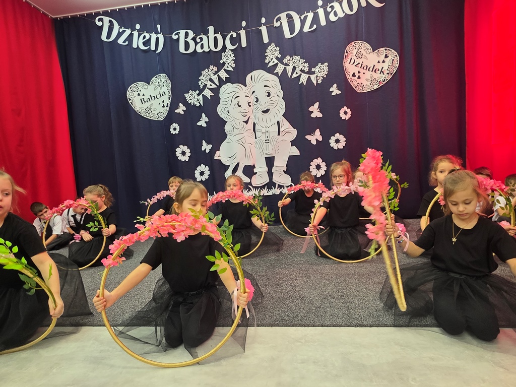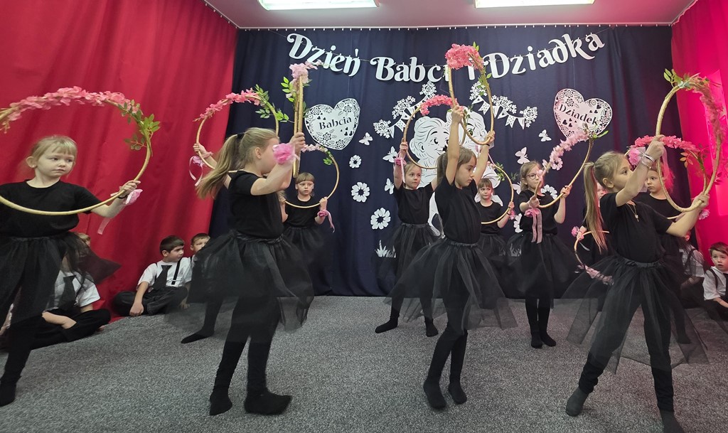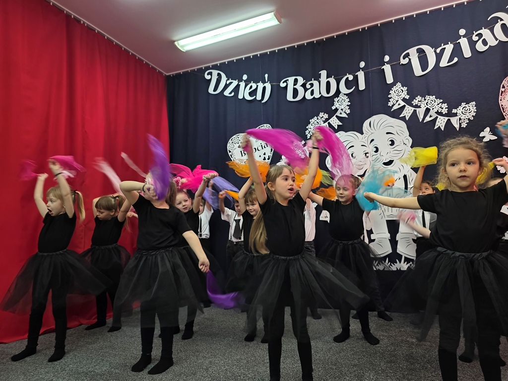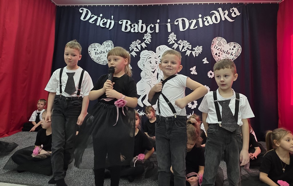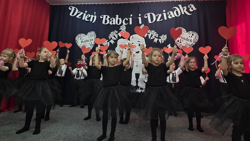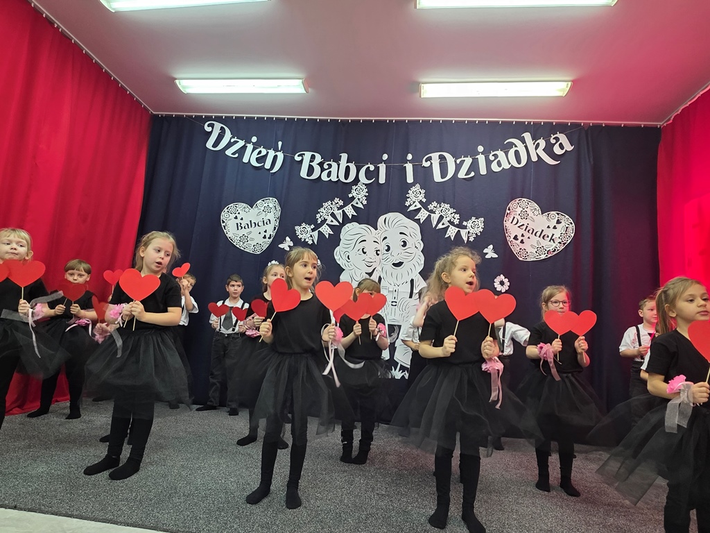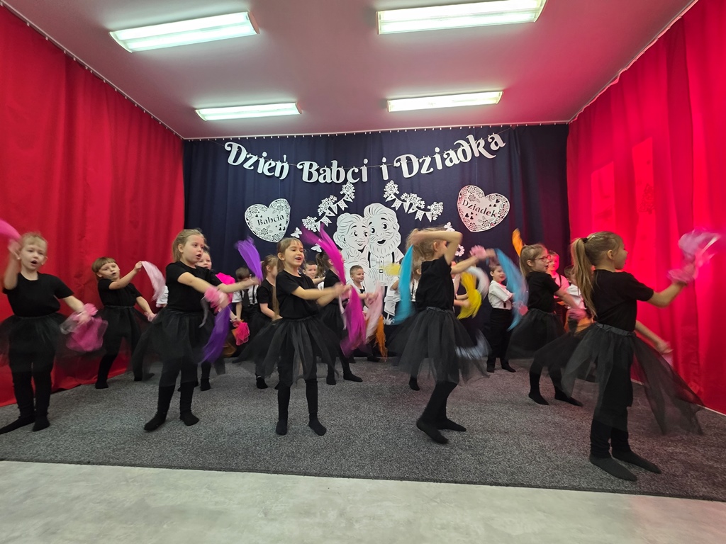 Wnuki z ogromnym zaangażowaniem zaprezentowały pięknie przygotowany program artystyczny. Nie zabrakło wzruszających wierszy, radosnych piosenek oraz oryginalnych układów tanecznych z wykorzystaniem różnorodnych rekwizytów. Każdy występ był wyrazem wdzięczności, miłości i szacunku wobec Babć i Dziadków.