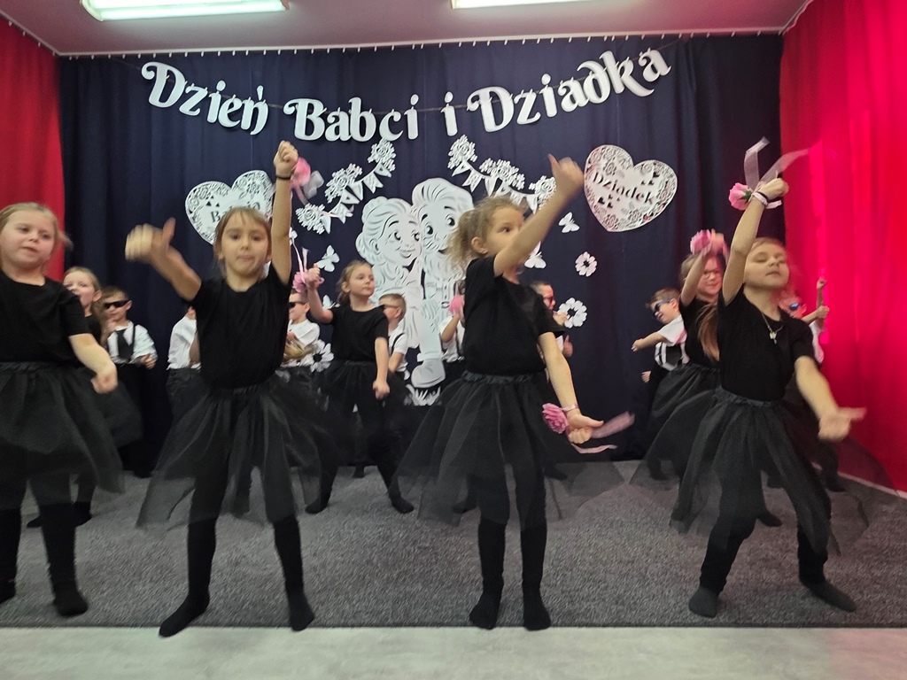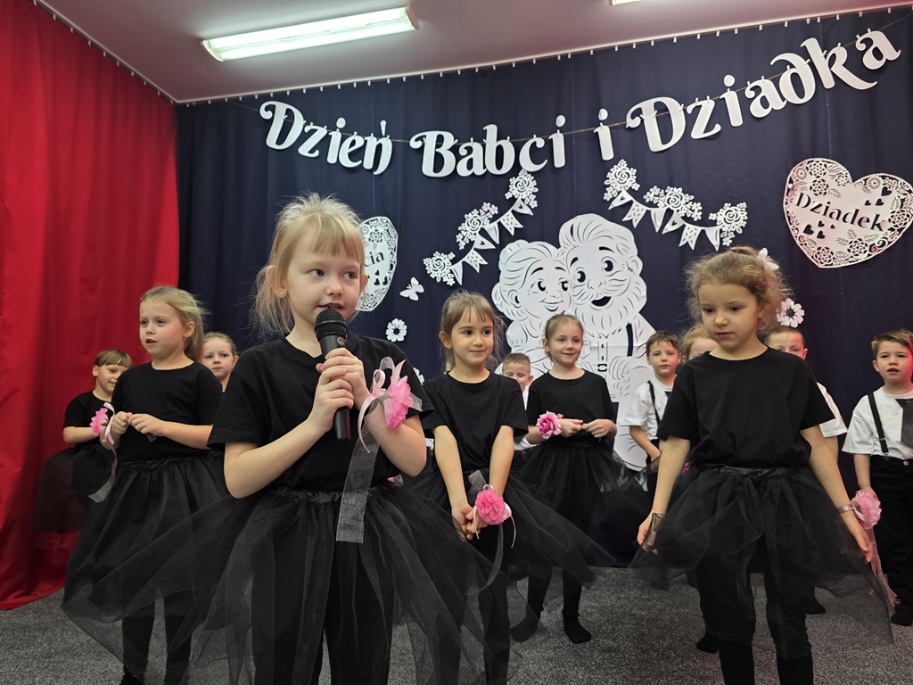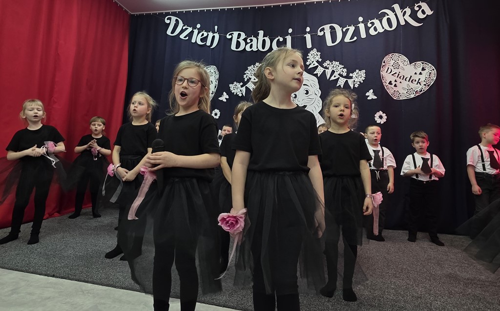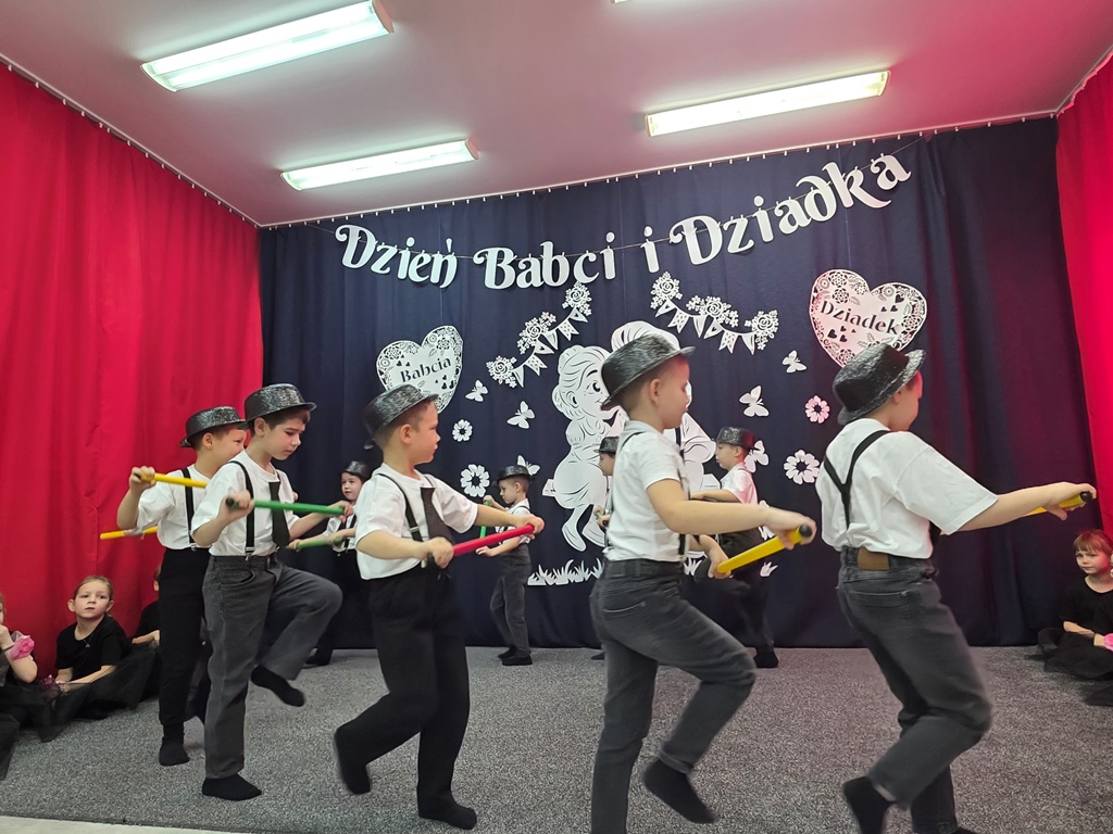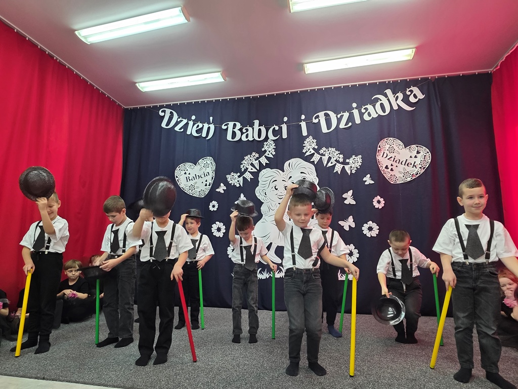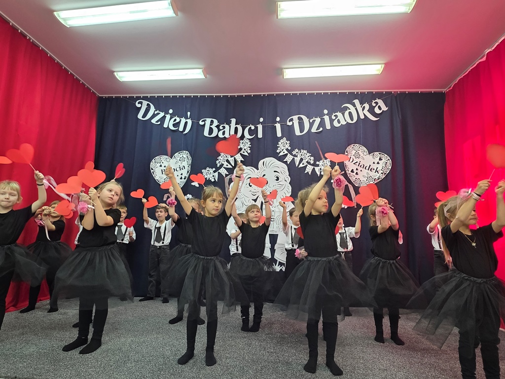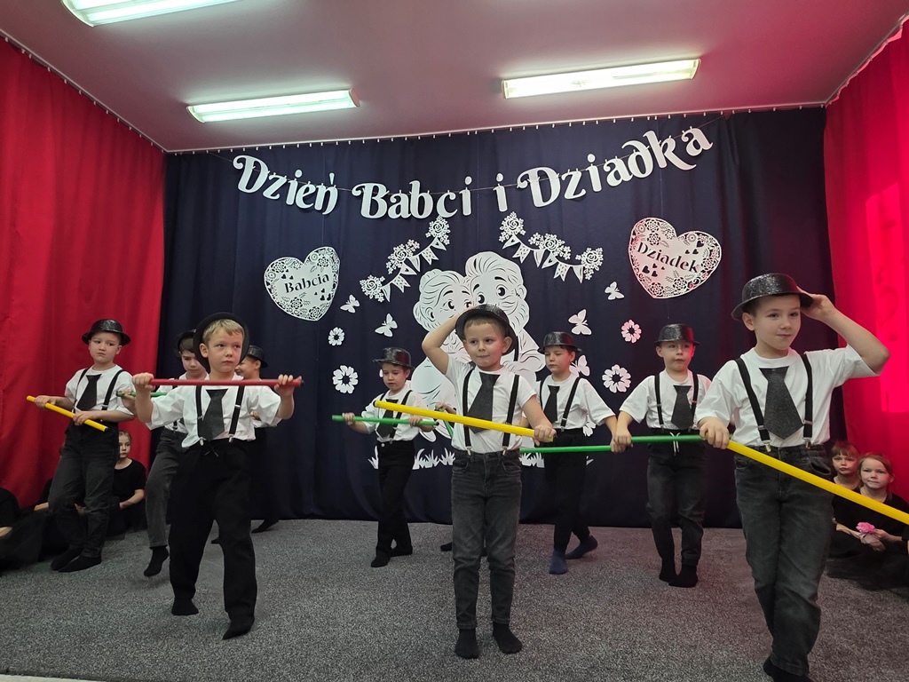 Wnuki z ogromnym zaangażowaniem zaprezentowały pięknie przygotowany program artystyczny. Nie zabrakło wzruszających wierszy, radosnych piosenek oraz oryginalnych układów tanecznych z wykorzystaniem różnorodnych rekwizytów. Każdy występ był wyrazem wdzięczności, miłości i szacunku wobec Babć i Dziadków.