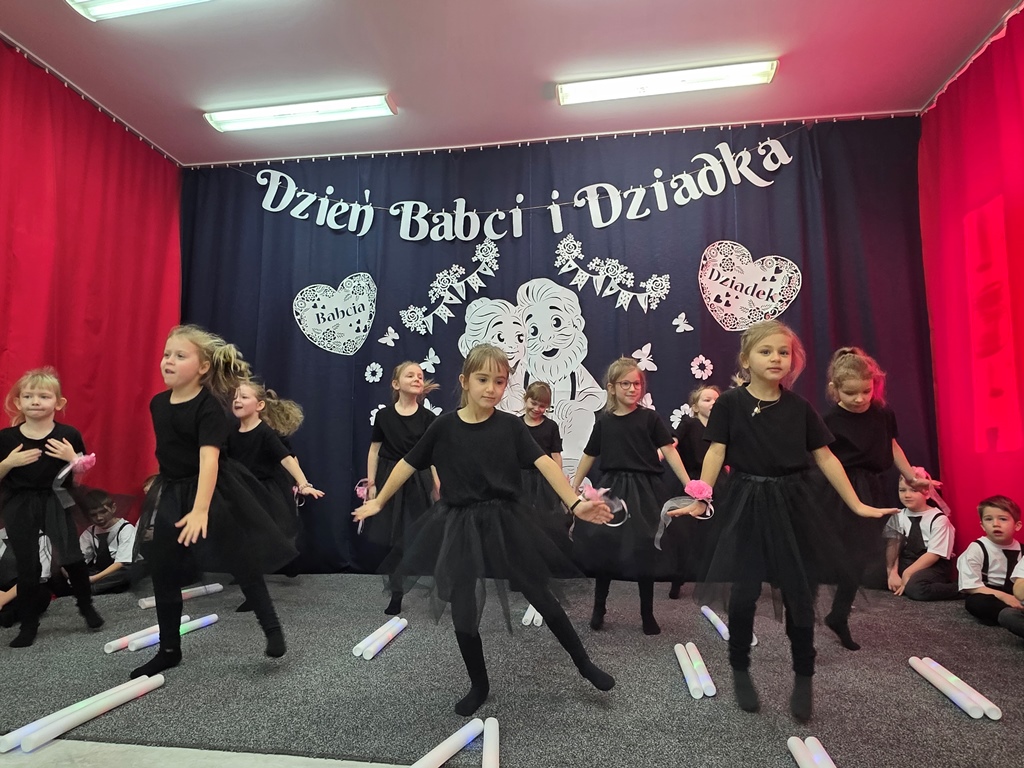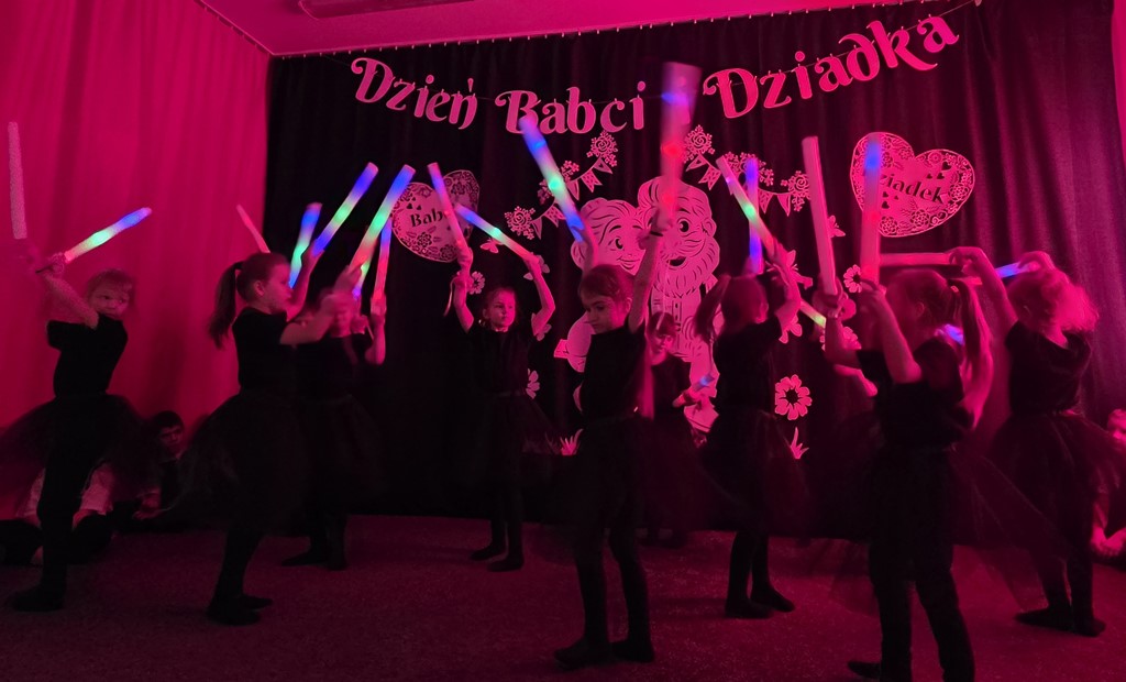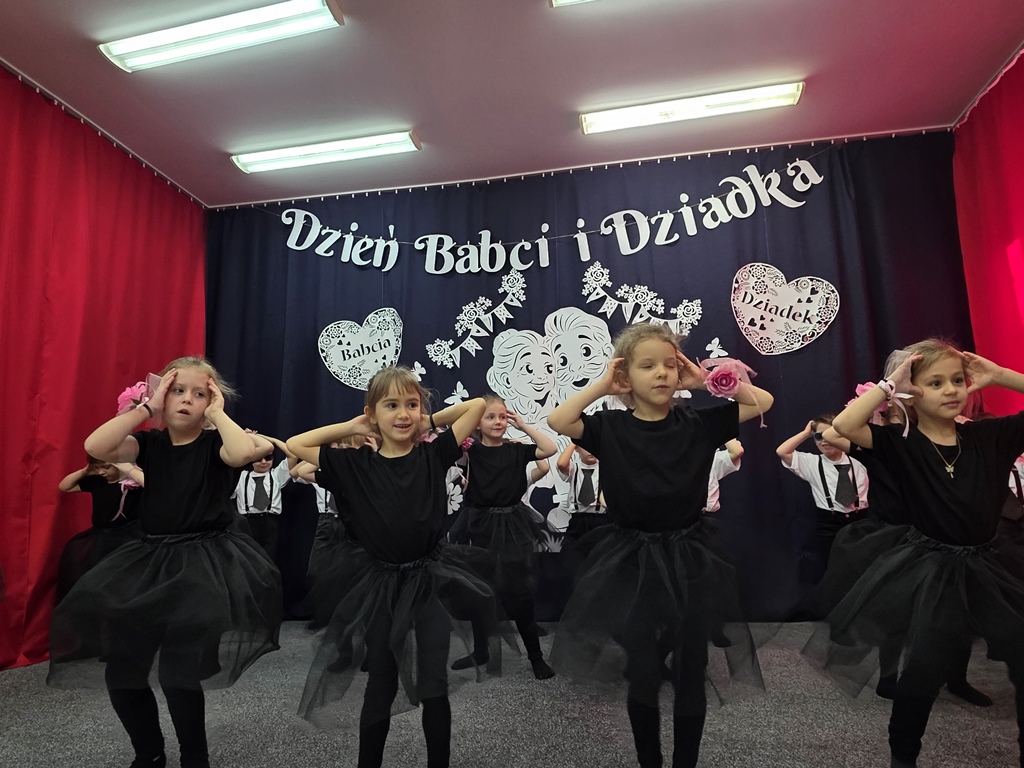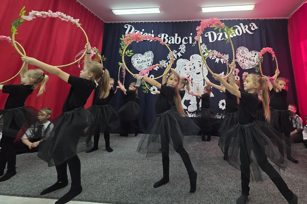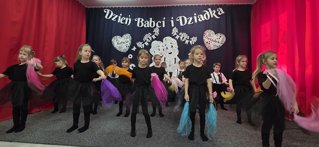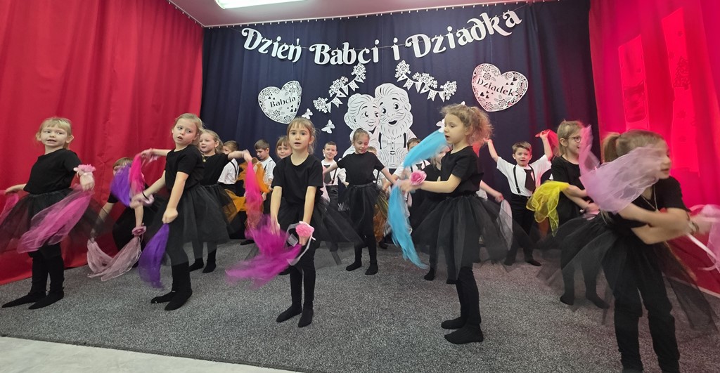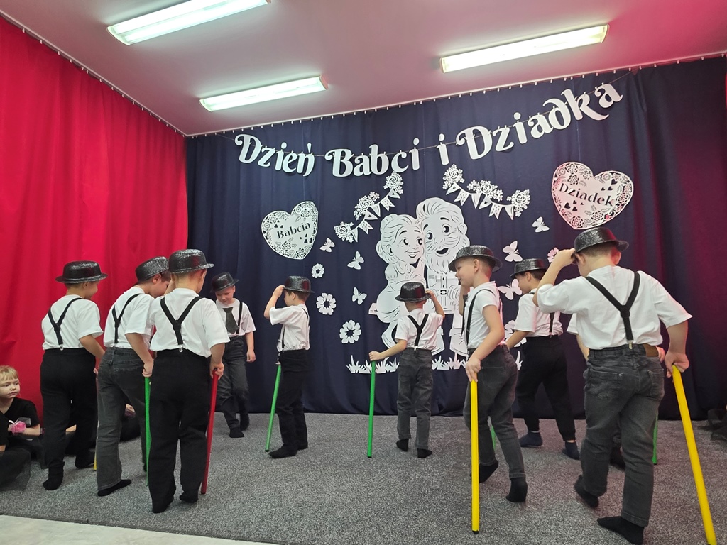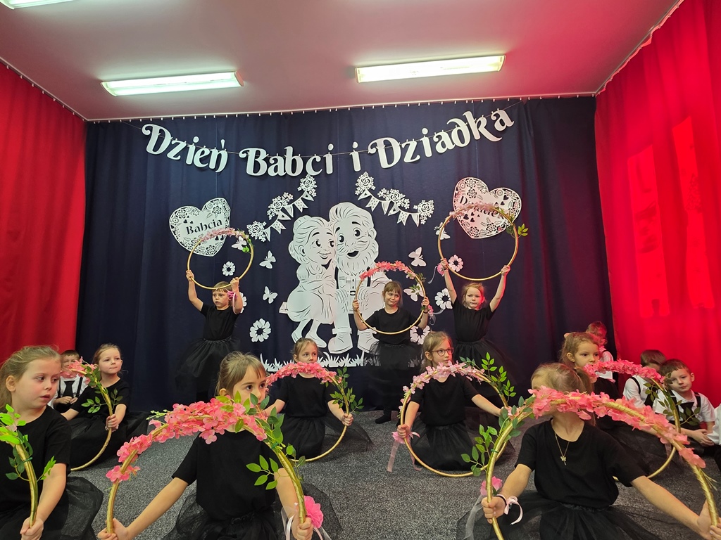 Wnuki z ogromnym zaangażowaniem zaprezentowały pięknie przygotowany program artystyczny. Nie zabrakło wzruszających wierszy, radosnych piosenek oraz oryginalnych układów tanecznych z wykorzystaniem różnorodnych rekwizytów. Każdy występ był wyrazem wdzięczności, miłości i szacunku wobec Babć i Dziadków.