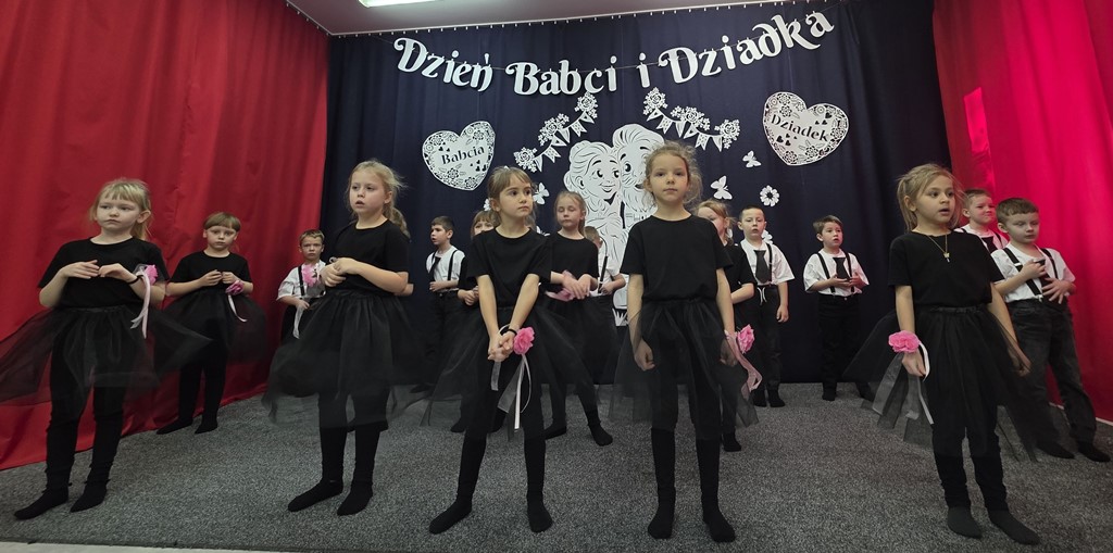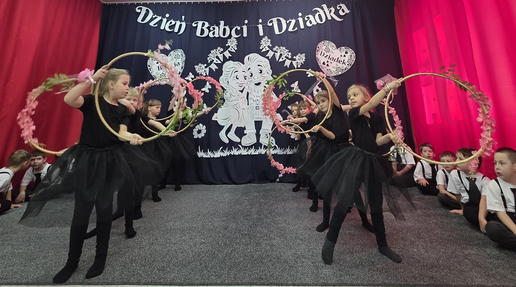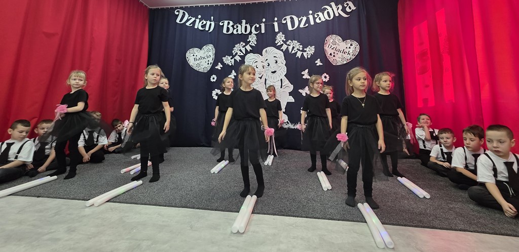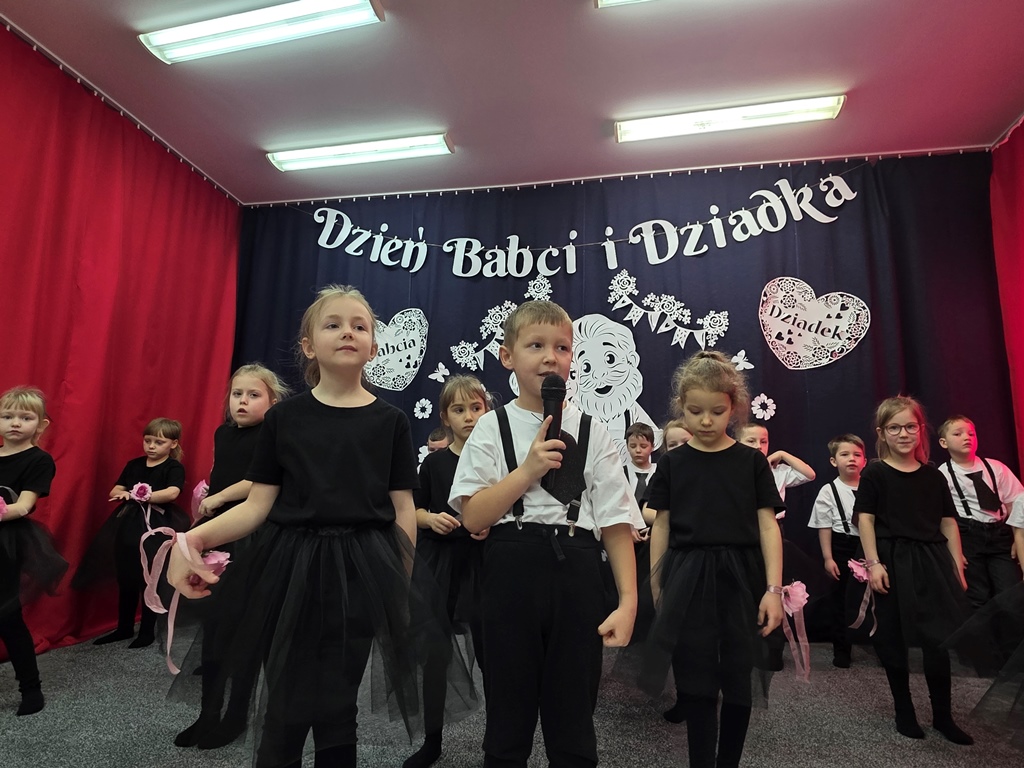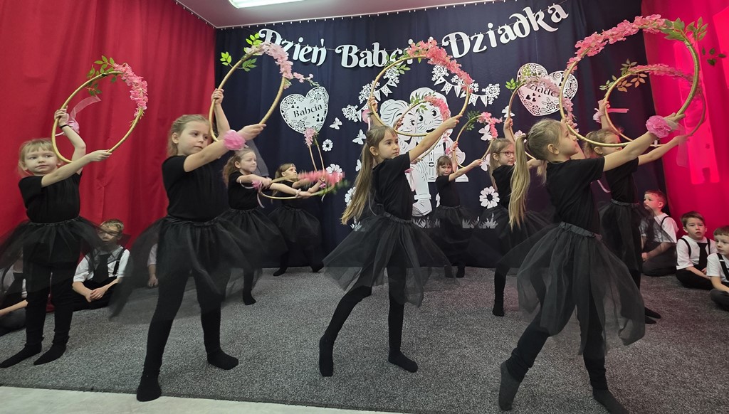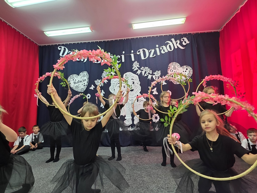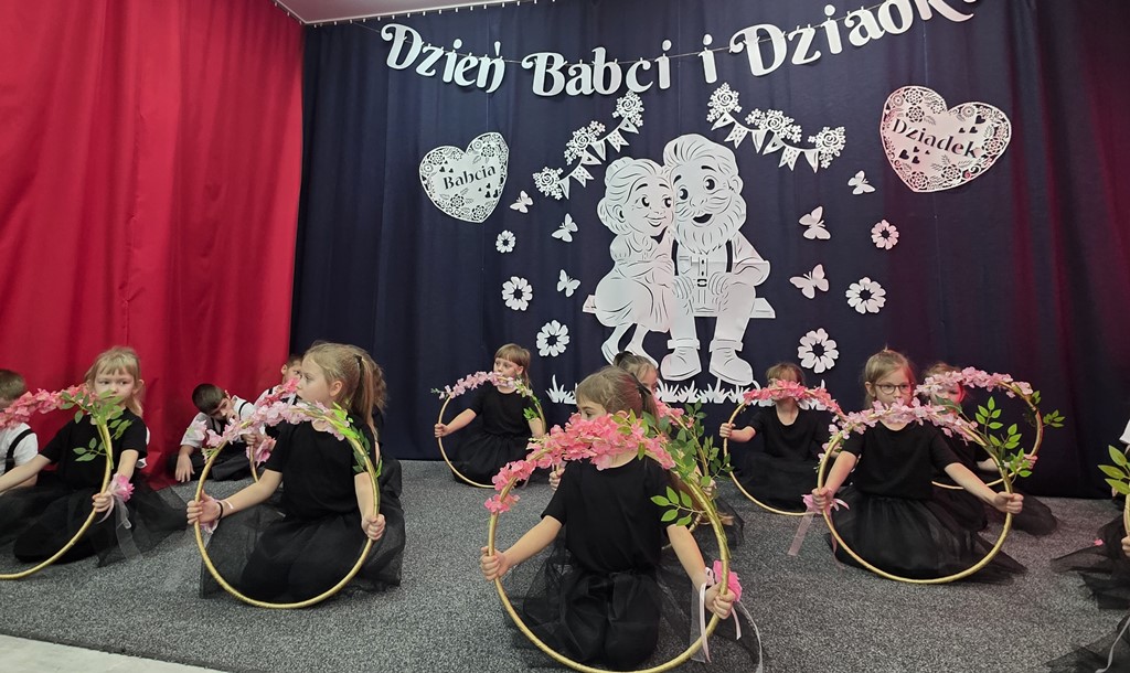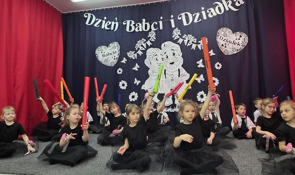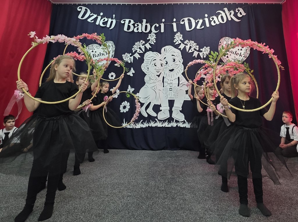 Wnuki z ogromnym zaangażowaniem zaprezentowały pięknie przygotowany program artystyczny. Nie zabrakło wzruszających wierszy, radosnych piosenek oraz oryginalnych układów tanecznych z wykorzystaniem różnorodnych rekwizytów. Każdy występ był wyrazem wdzięczności, miłości i szacunku wobec Babć i Dziadków.