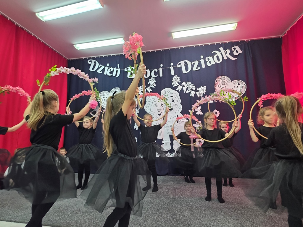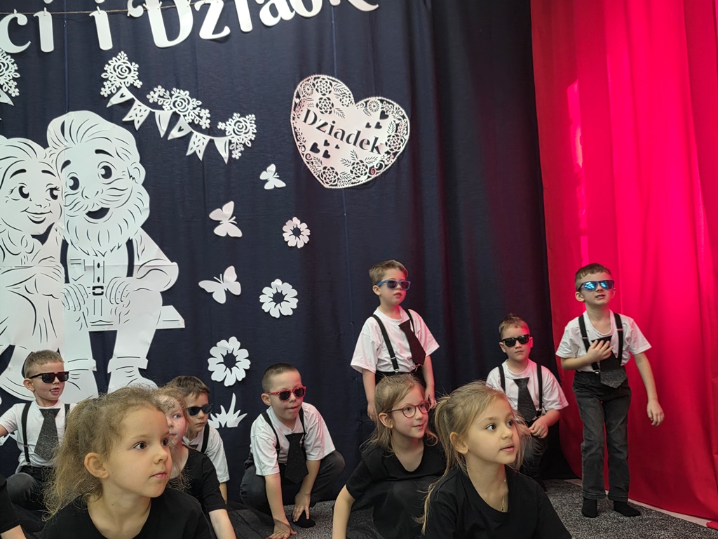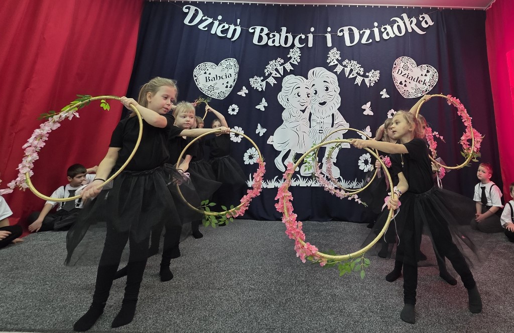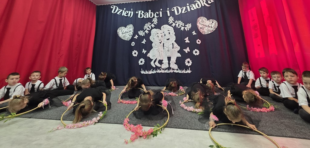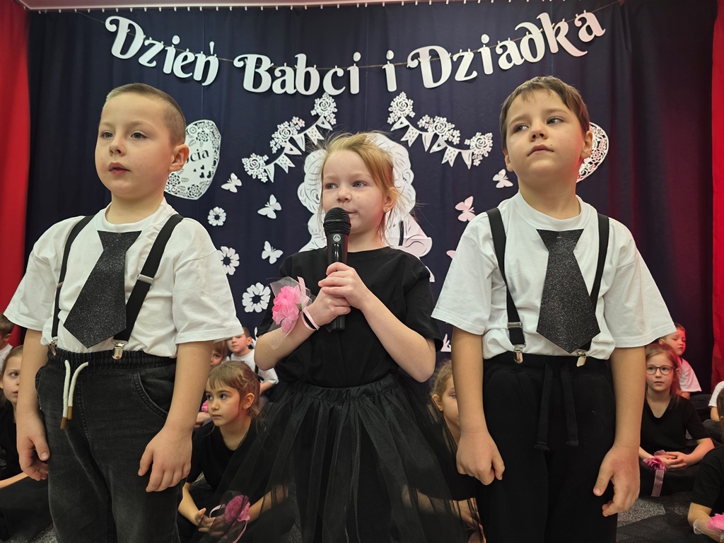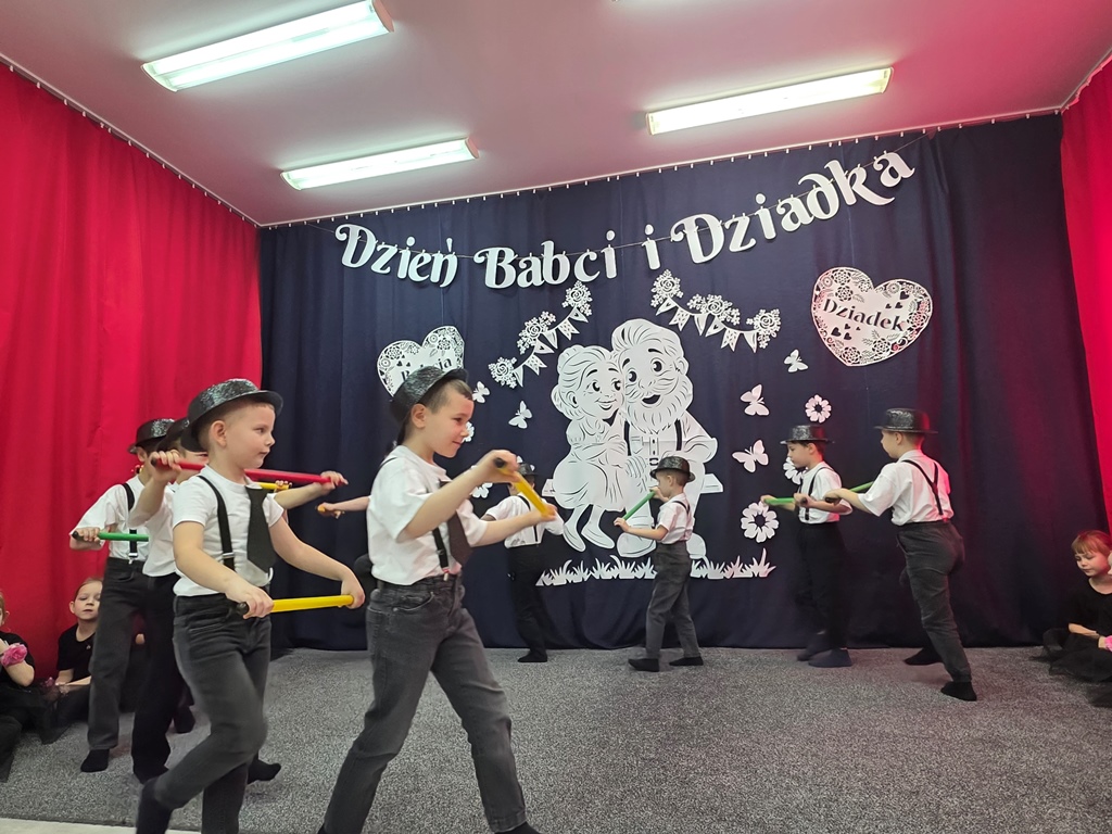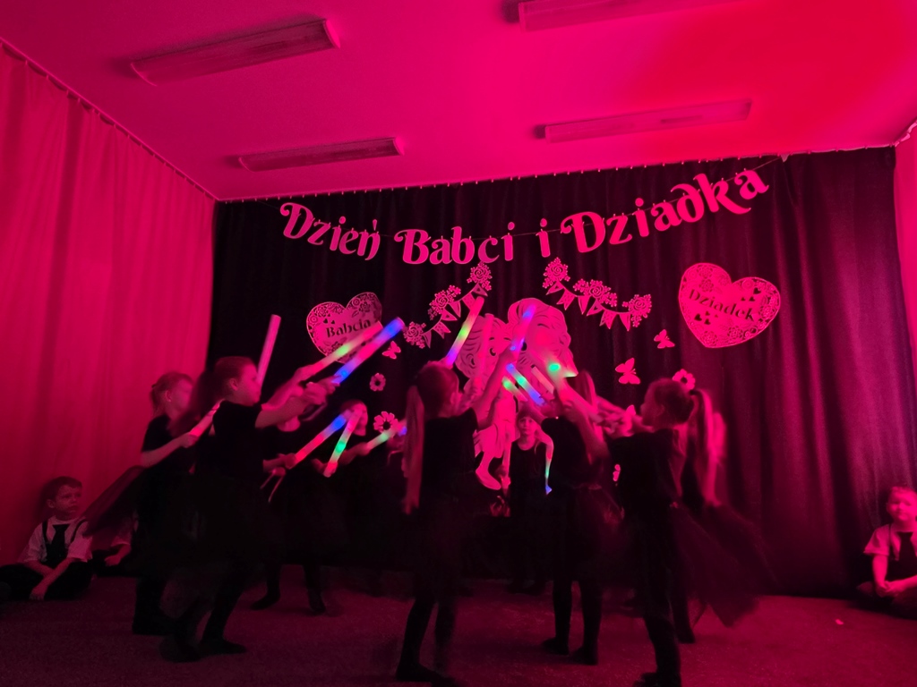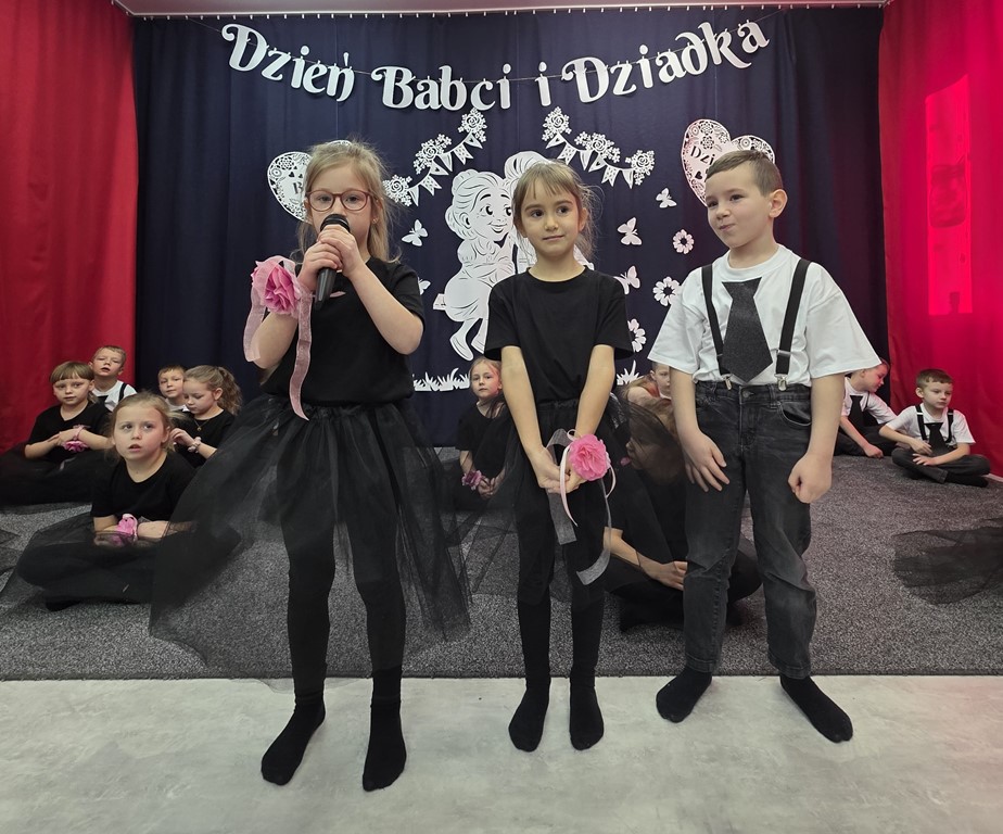 Wnuki z ogromnym zaangażowaniem zaprezentowały pięknie przygotowany program artystyczny. Nie zabrakło wzruszających wierszy, radosnych piosenek oraz oryginalnych układów tanecznych z wykorzystaniem różnorodnych rekwizytów. Każdy występ był wyrazem wdzięczności, miłości i szacunku wobec Babć i Dziadków.