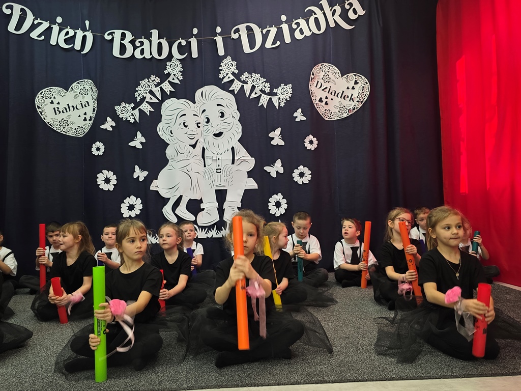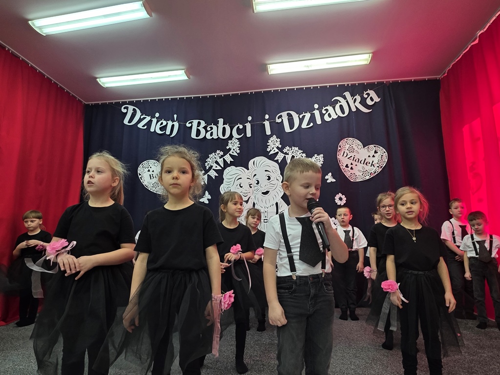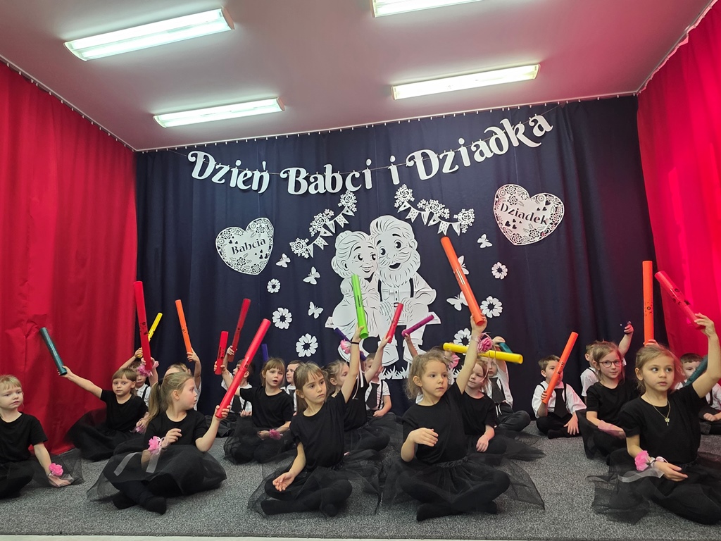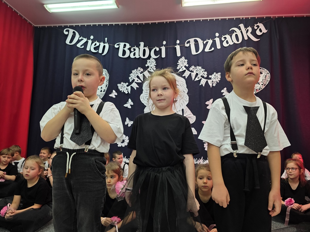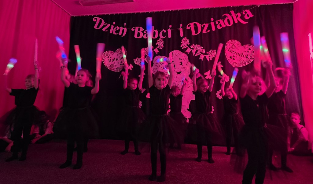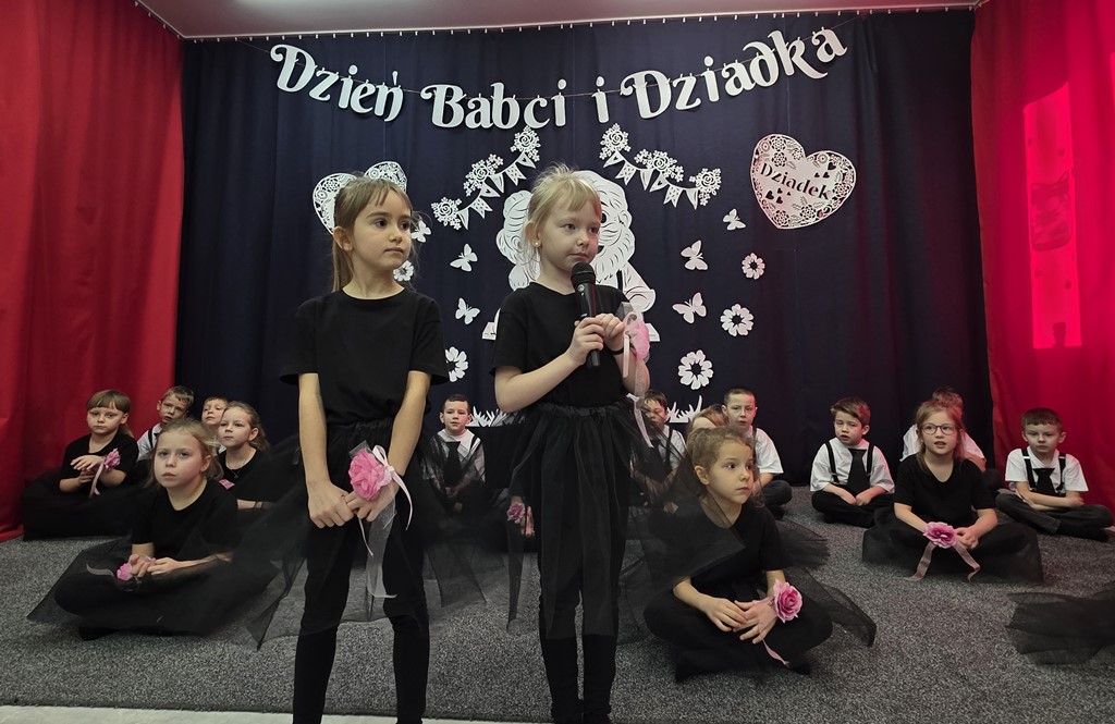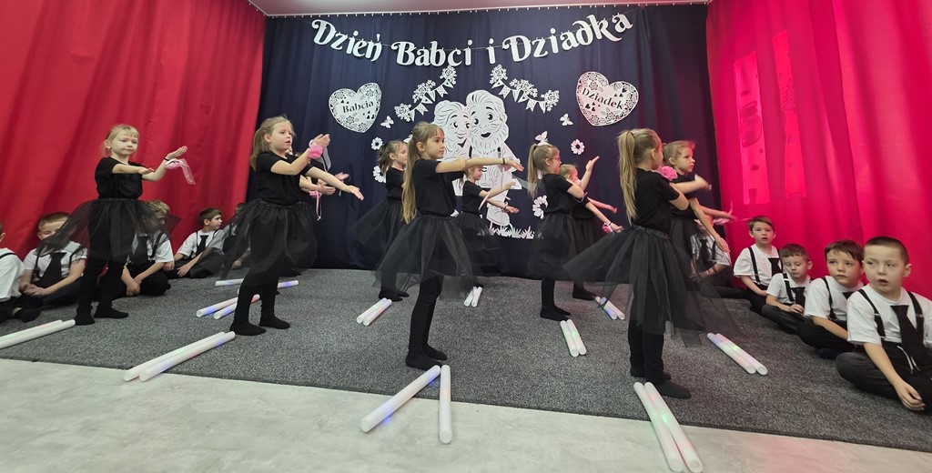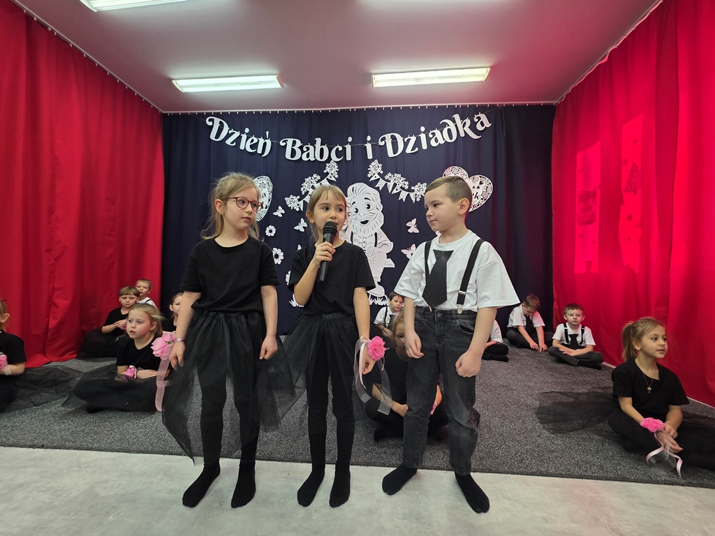 Wnuki z ogromnym zaangażowaniem zaprezentowały pięknie przygotowany program artystyczny. Nie zabrakło wzruszających wierszy, radosnych piosenek oraz oryginalnych układów tanecznych z wykorzystaniem różnorodnych rekwizytów. Każdy występ był wyrazem wdzięczności, miłości i szacunku wobec Babć i Dziadków.
