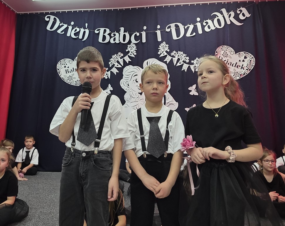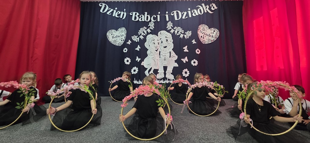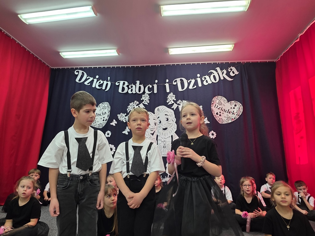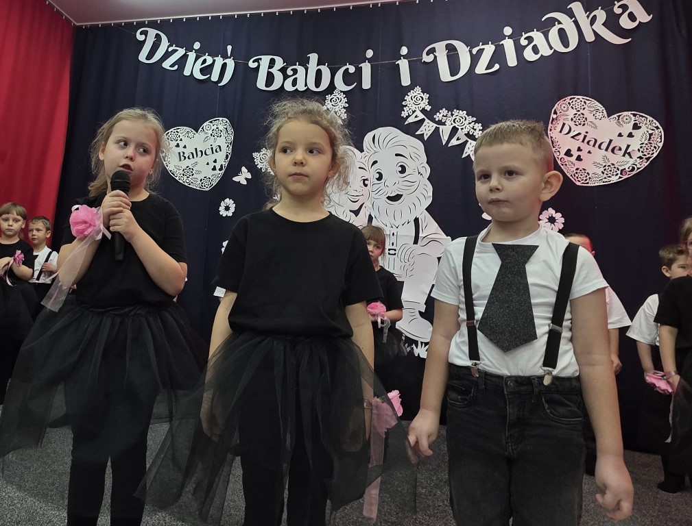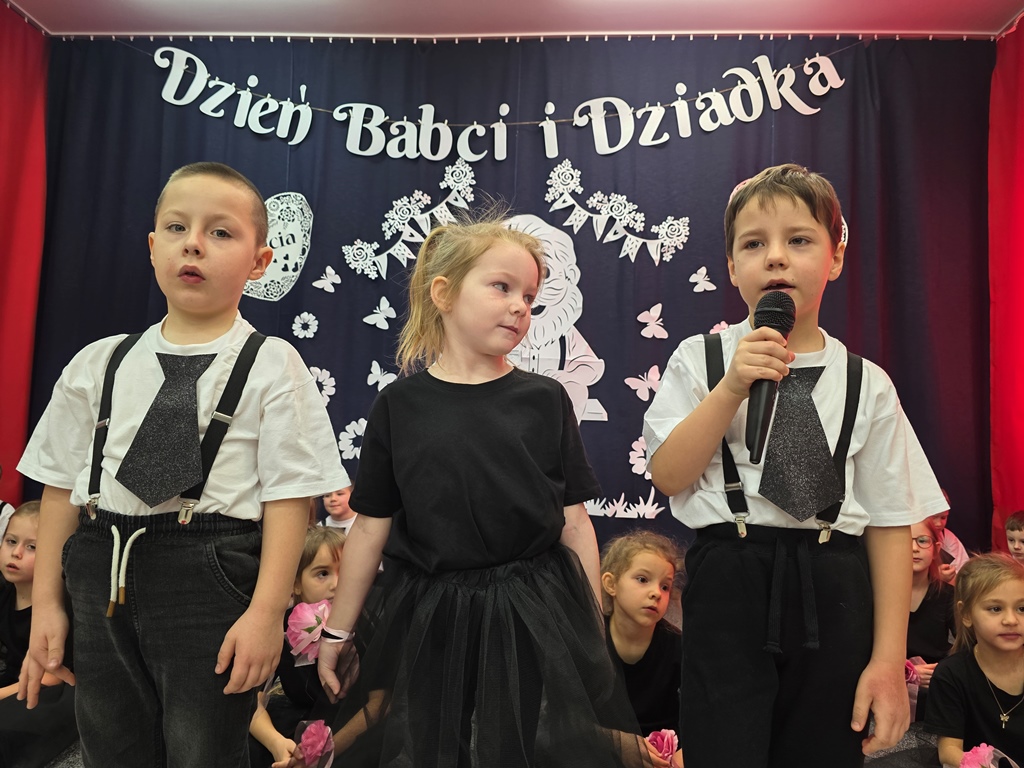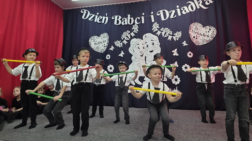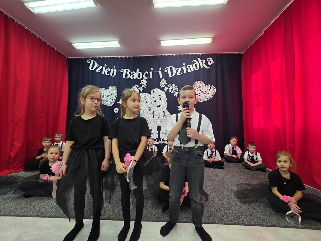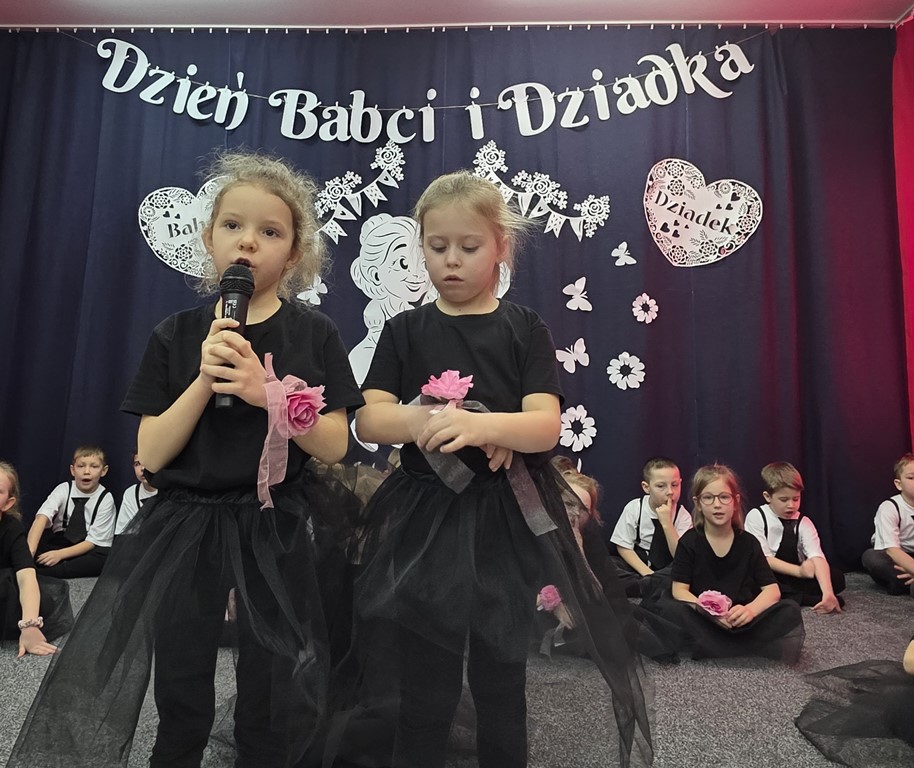 Wnuki z ogromnym zaangażowaniem zaprezentowały pięknie przygotowany program artystyczny. Nie zabrakło wzruszających wierszy, radosnych piosenek oraz oryginalnych układów tanecznych z wykorzystaniem różnorodnych rekwizytów. Każdy występ był wyrazem wdzięczności, miłości i szacunku wobec Babć i Dziadków.