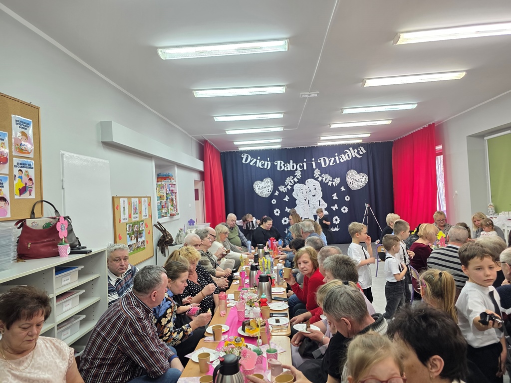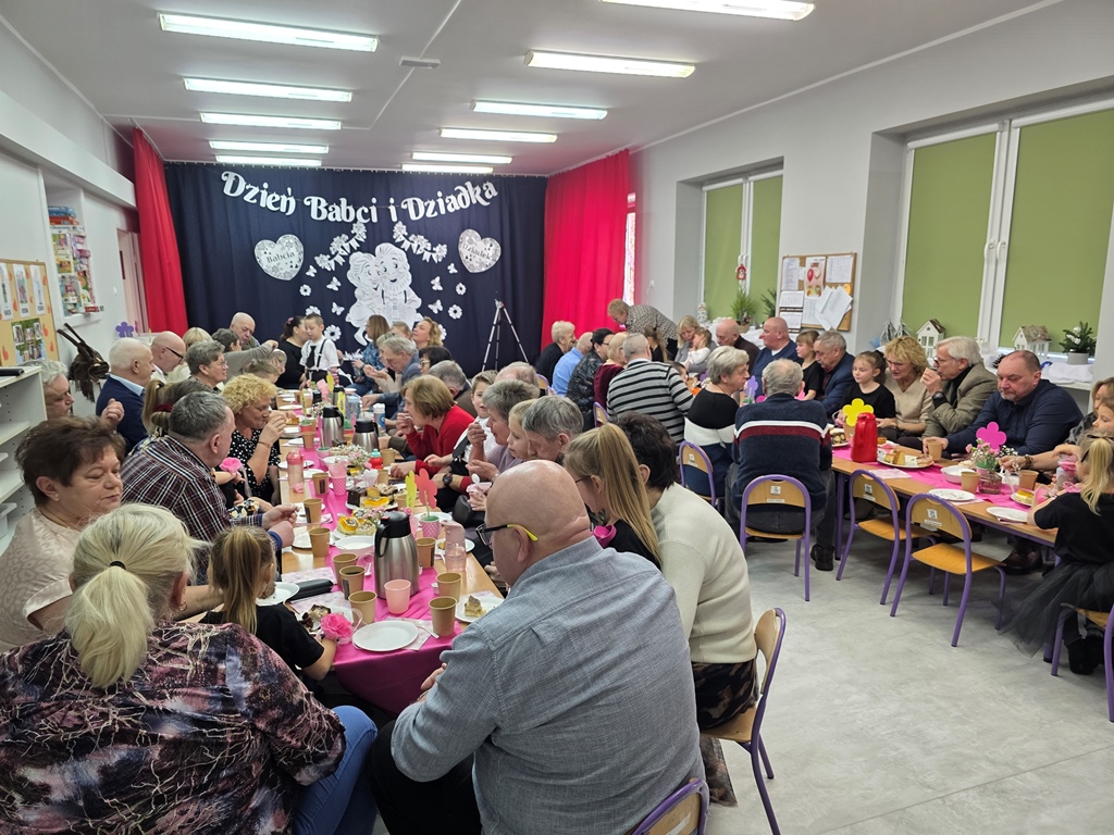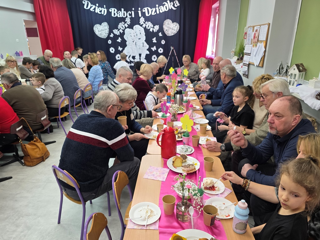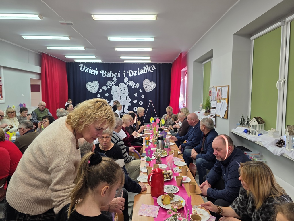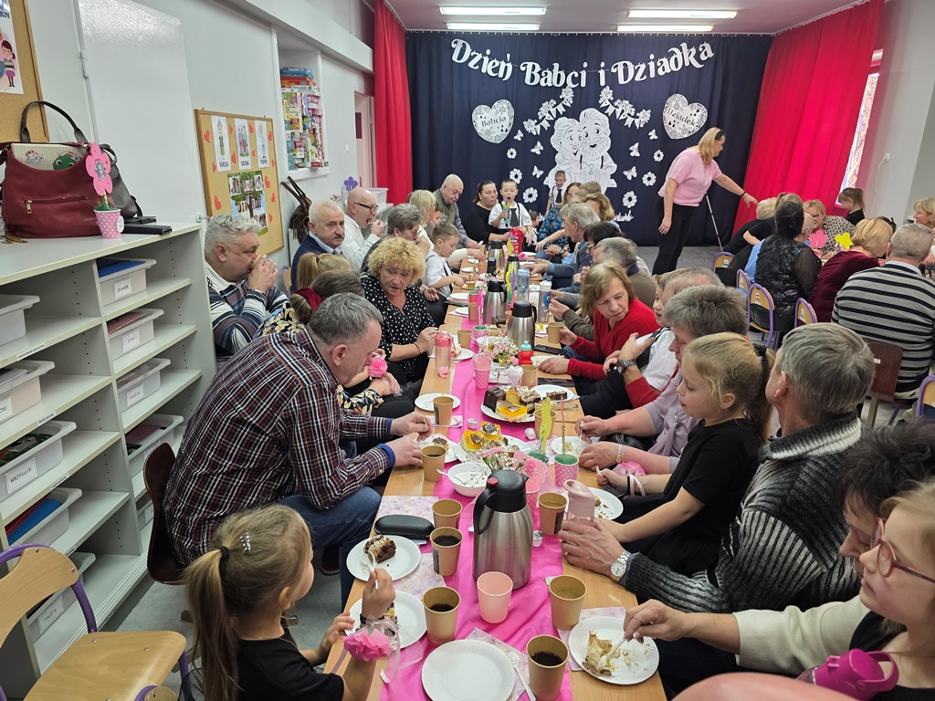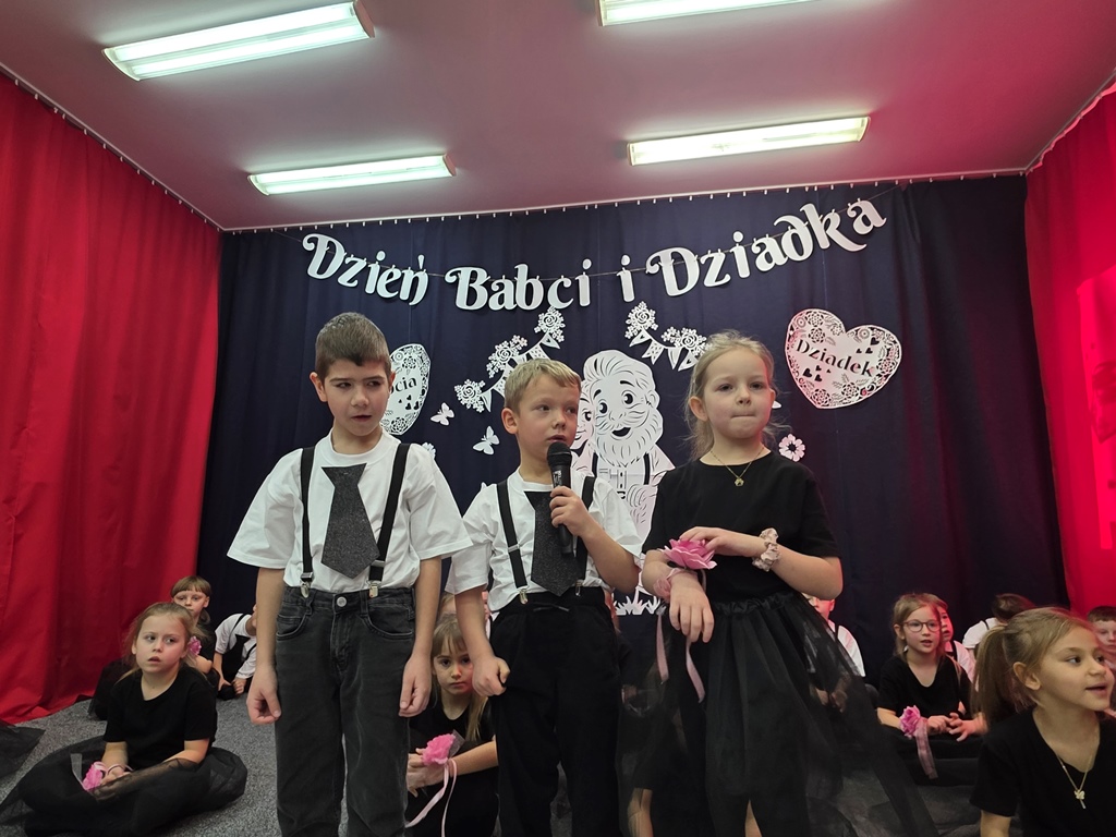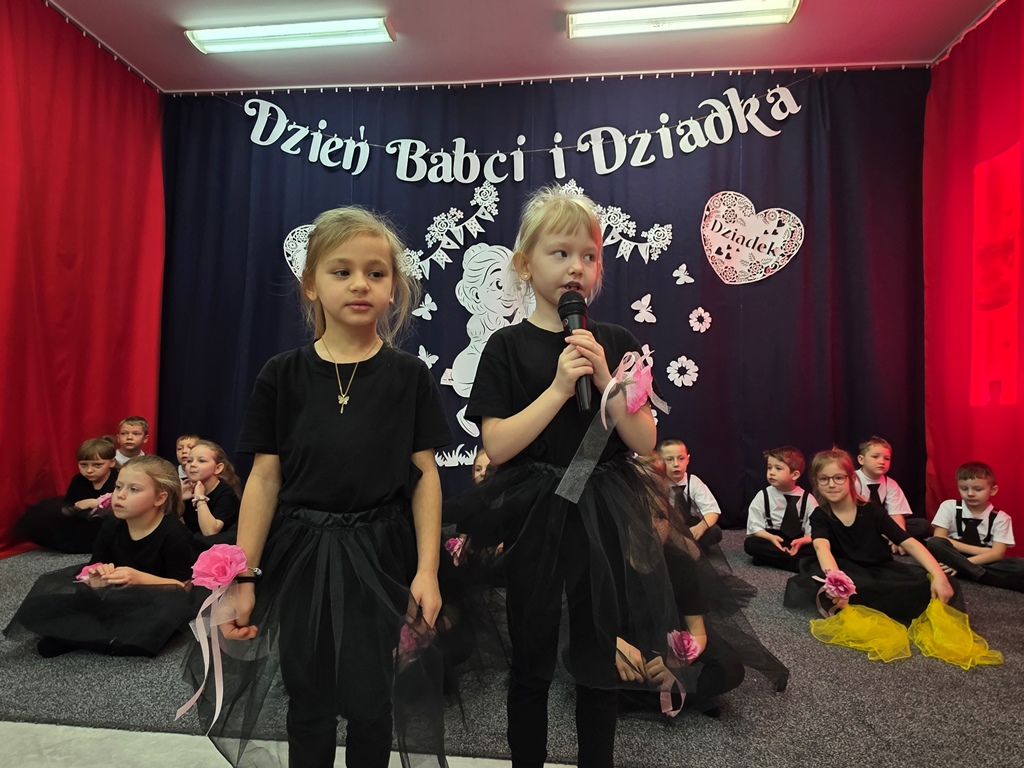 Wnuki z ogromnym zaangażowaniem zaprezentowały pięknie przygotowany program artystyczny. Nie zabrakło wzruszających wierszy, radosnych piosenek oraz oryginalnych układów tanecznych z wykorzystaniem różnorodnych rekwizytów. Każdy występ był wyrazem wdzięczności, miłości i szacunku wobec Babć i Dziadków.