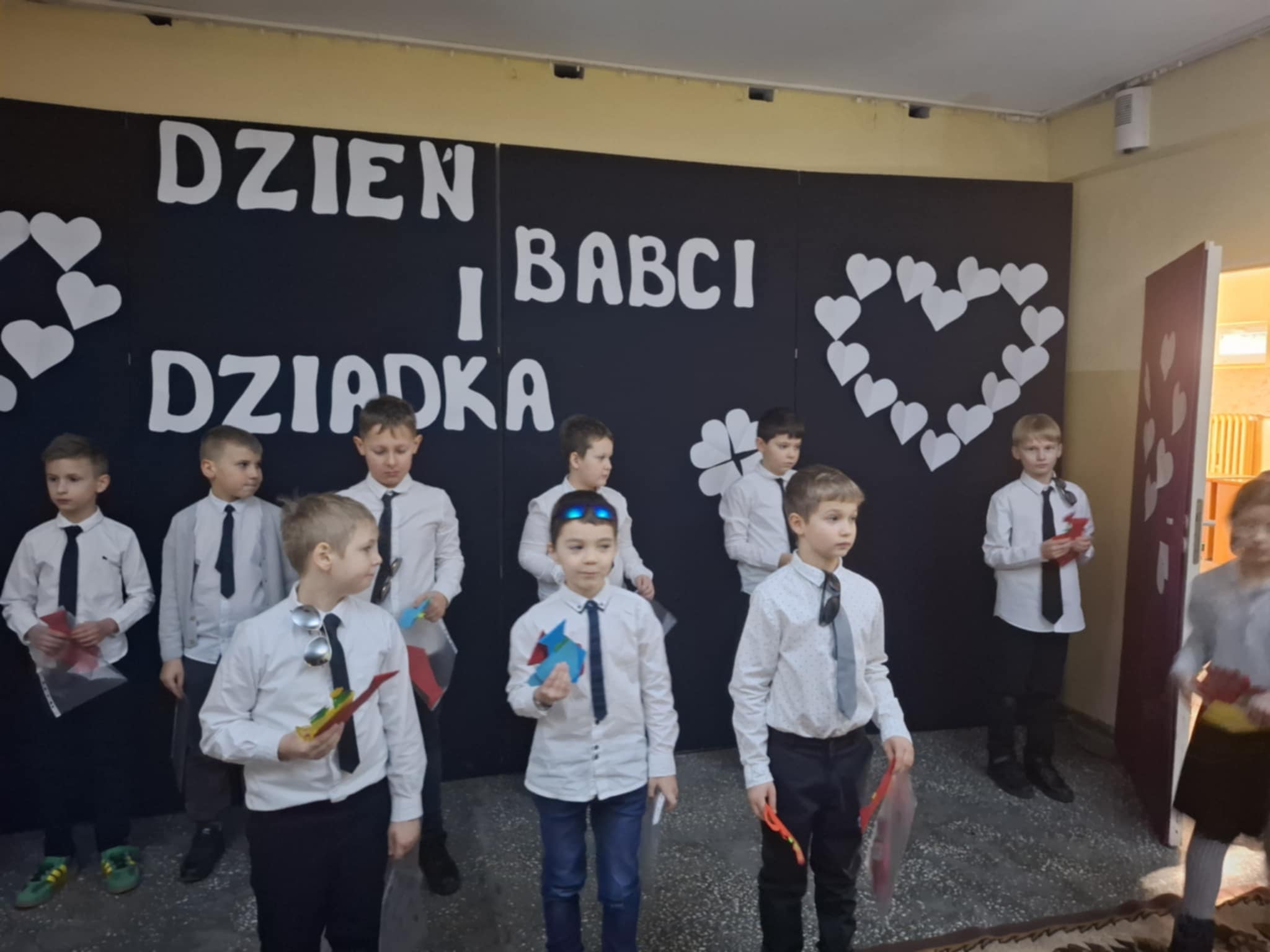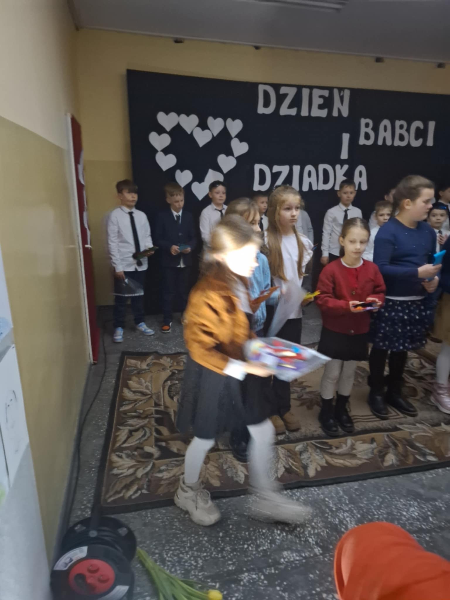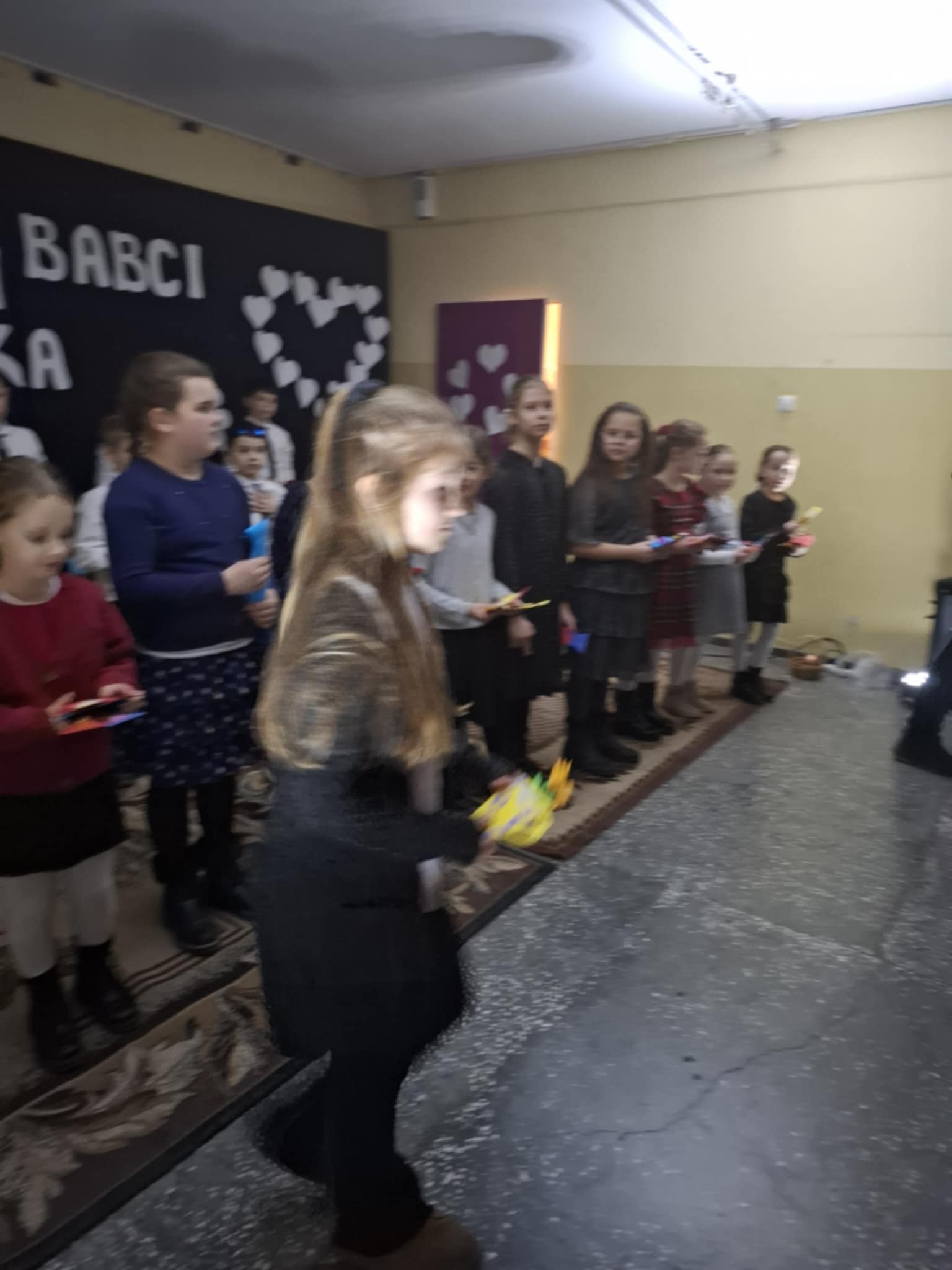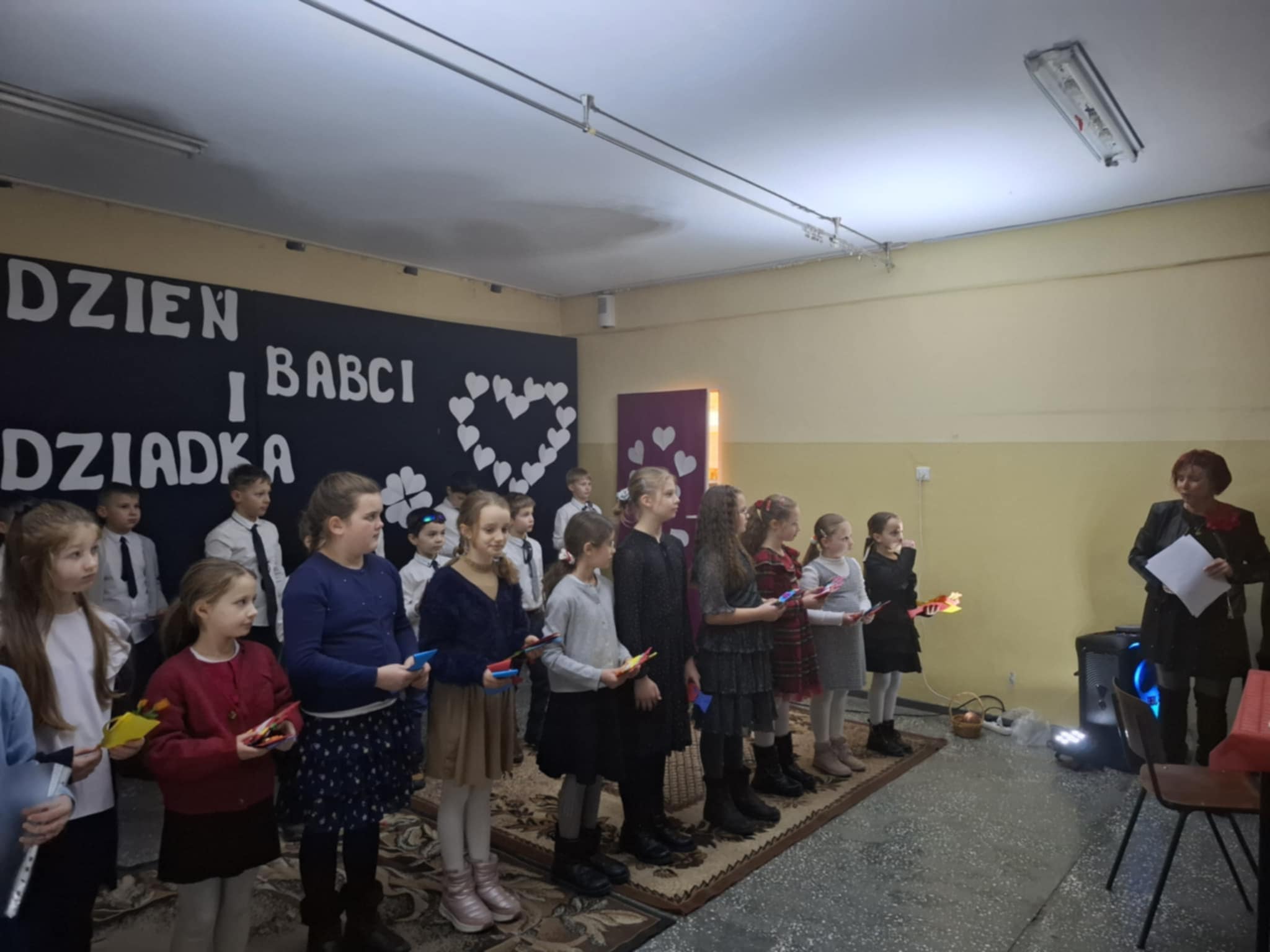 W czwartkowe przedpołudnie naszą szkołę tłumnie odwiedzili znamienici goście. To babcie i dziadkowie 3- klasistów przybyli na okolicznościowe spotkanie. W pięknie przygotowanej sali uczniowie zaprezentowali program artystyczny pod hasłem " O babci i dziadku słów kilka ". Goście obejrzeli krótkie pokazy taneczne w wykonaniu swoich wnuczek i wnuków. Były wzruszające scenki oraz wierszyki z życia babć i dziadków.Pojawiły się też wesołe piosenki. Mali artyści z przejęciem odgrywali swoje role, a czcigodni goście ze wzruszeniem odbierali czułe słowa kierowane pod ich adresem. Na koniec dziadkowie zostali udekorowani laurkami wykonanymi przez dzieci. Nie zabrakło okolicznościowych konkursów oraz słodkiego poczęstunku. Atmosfera była gorąca. To był wyjątkowy dzień. Szczególne podziękowania kieruję w stronę osób zaangażowanych w przygotowanie spotkania.