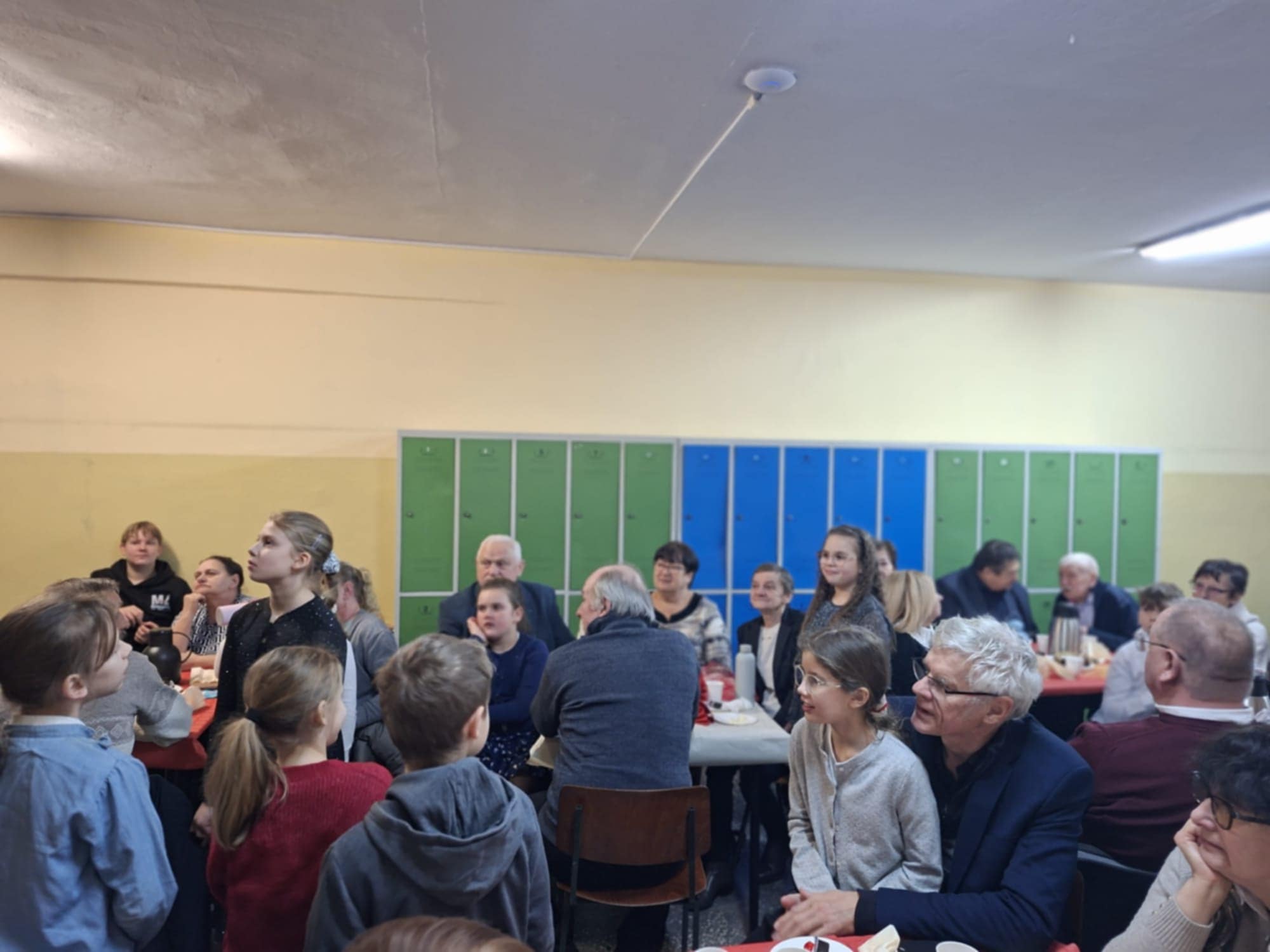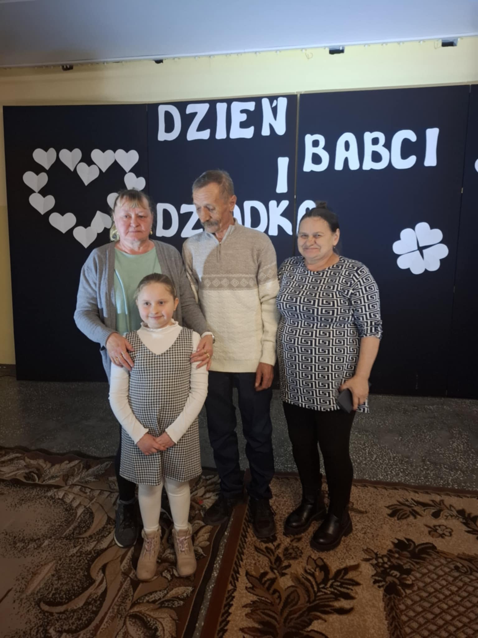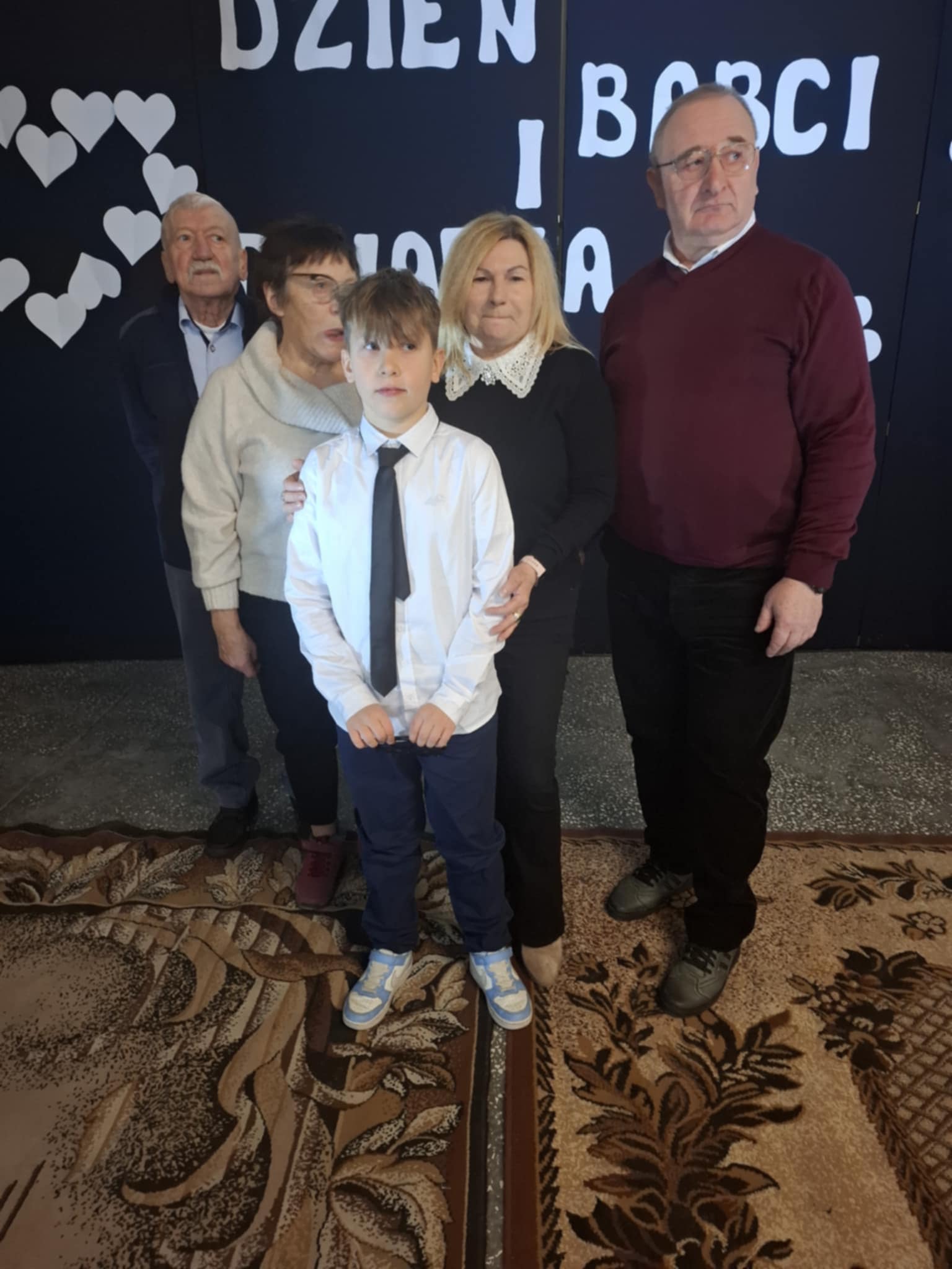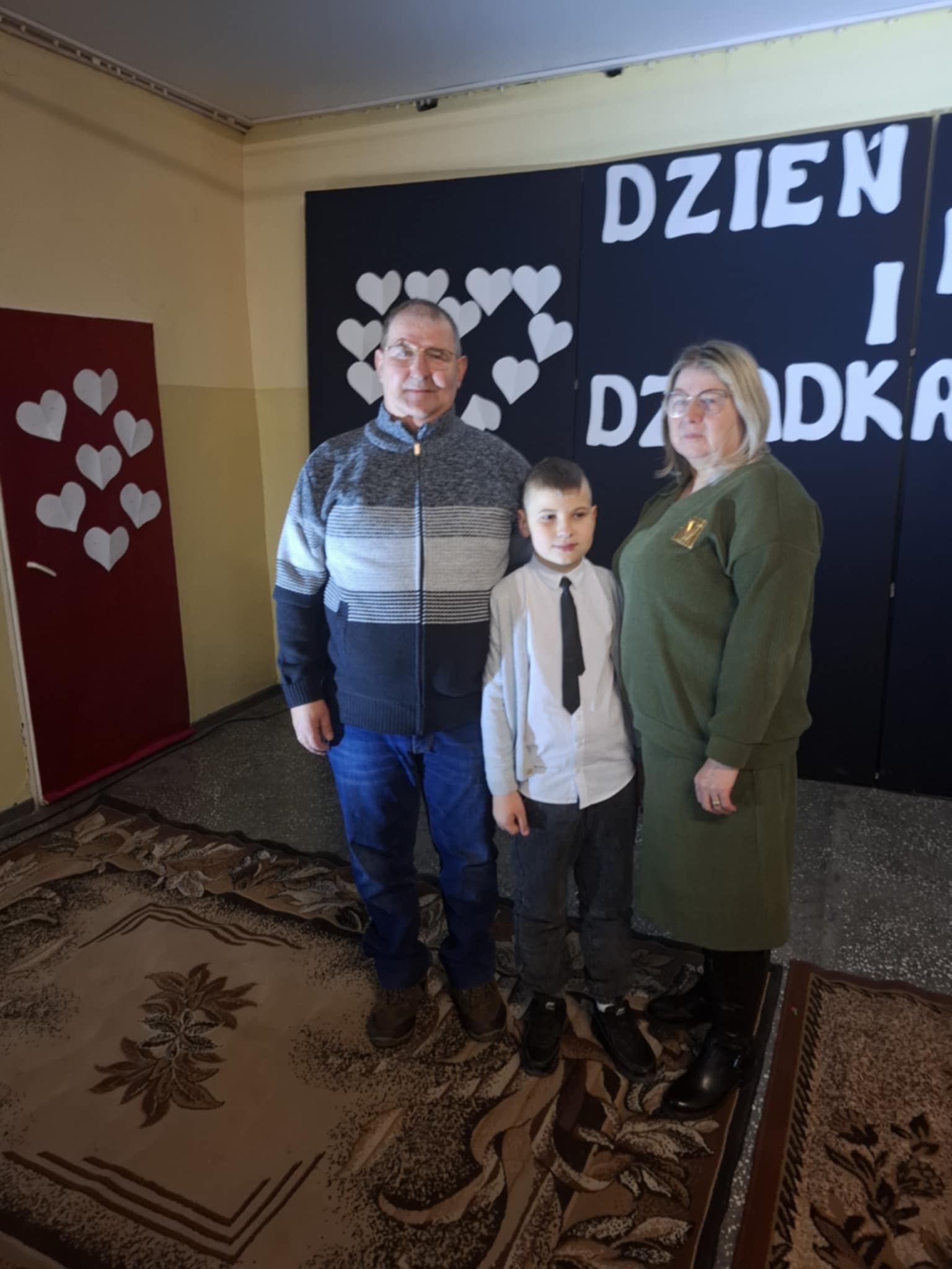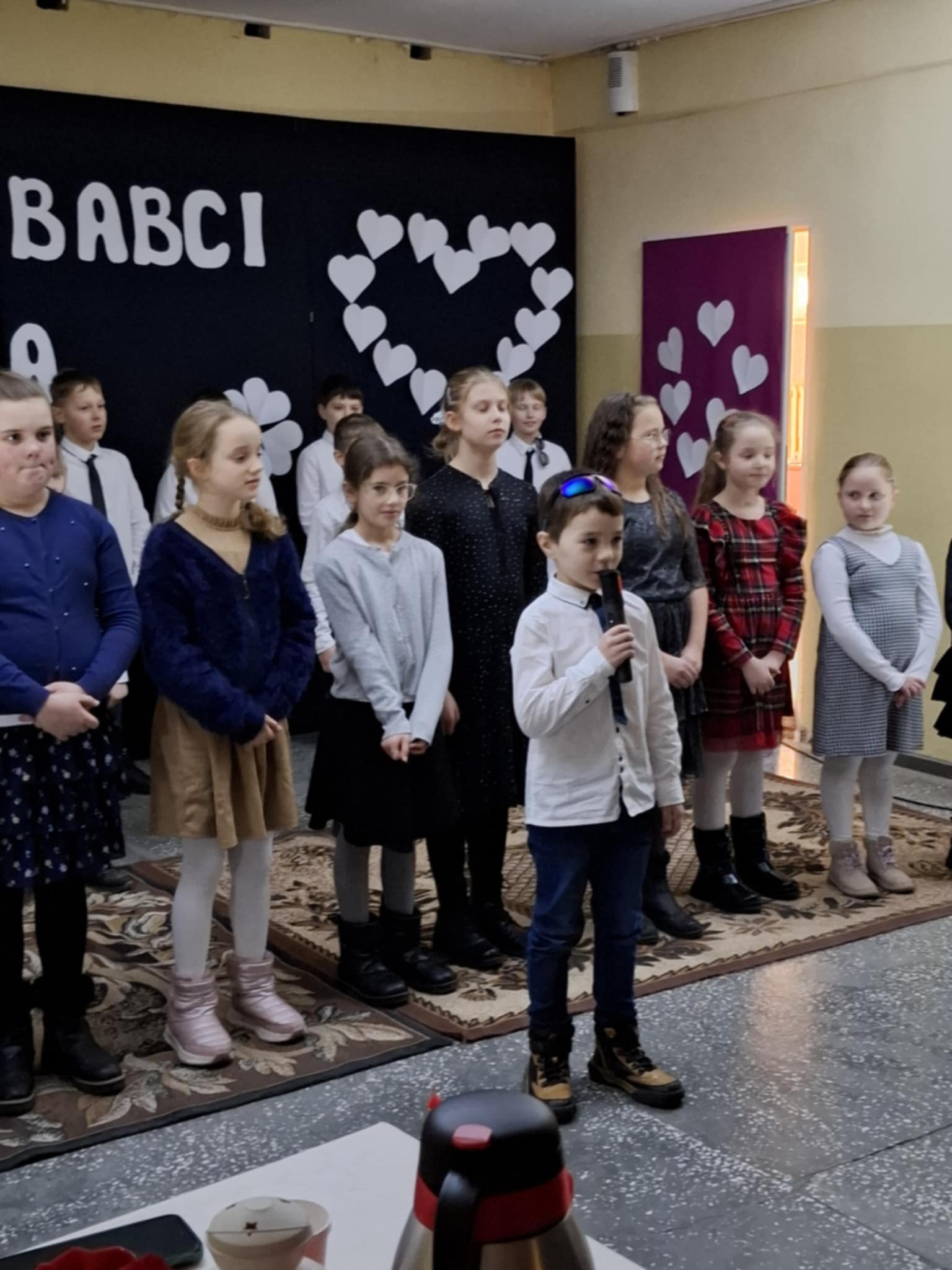 W czwartkowe przedpołudnie naszą szkołę tłumnie odwiedzili znamienici goście. To babcie i dziadkowie 3- klasistów przybyli na okolicznościowe spotkanie. W pięknie przygotowanej sali uczniowie zaprezentowali program artystyczny pod hasłem " O babci i dziadku słów kilka ". Goście obejrzeli krótkie pokazy taneczne w wykonaniu swoich wnuczek i wnuków. Były wzruszające scenki oraz wierszyki z życia babć i dziadków.Pojawiły się też wesołe piosenki. Mali artyści z przejęciem odgrywali swoje role, a czcigodni goście ze wzruszeniem odbierali czułe słowa kierowane pod ich adresem. Na koniec dziadkowie zostali udekorowani laurkami wykonanymi przez dzieci. Nie zabrakło okolicznościowych konkursów oraz słodkiego poczęstunku. Atmosfera była gorąca. To był wyjątkowy dzień. Szczególne podziękowania kieruję w stronę osób zaangażowanych w przygotowanie spotkania.