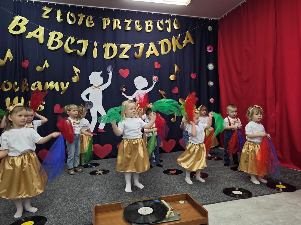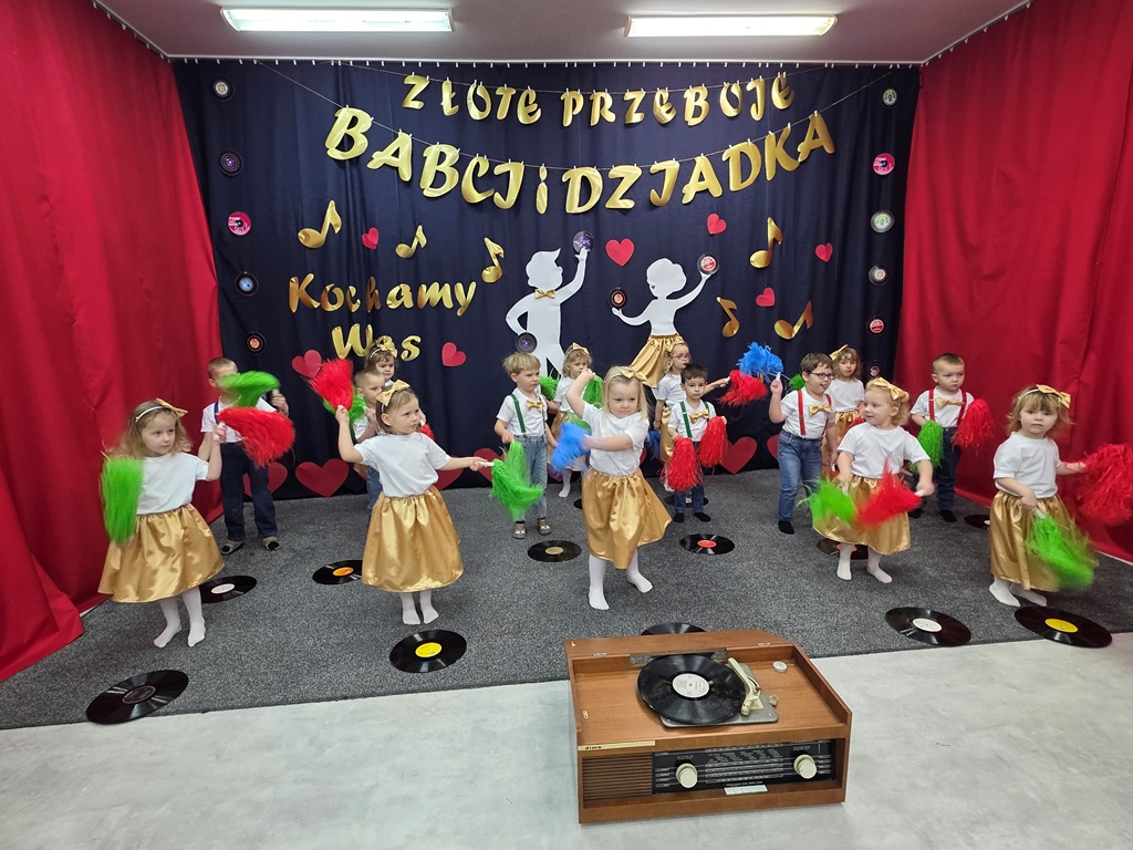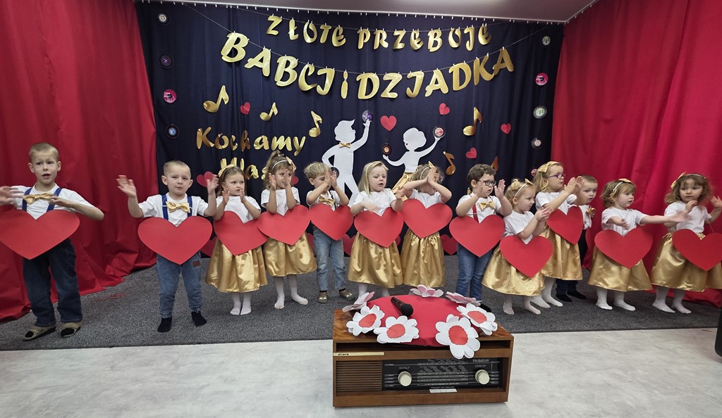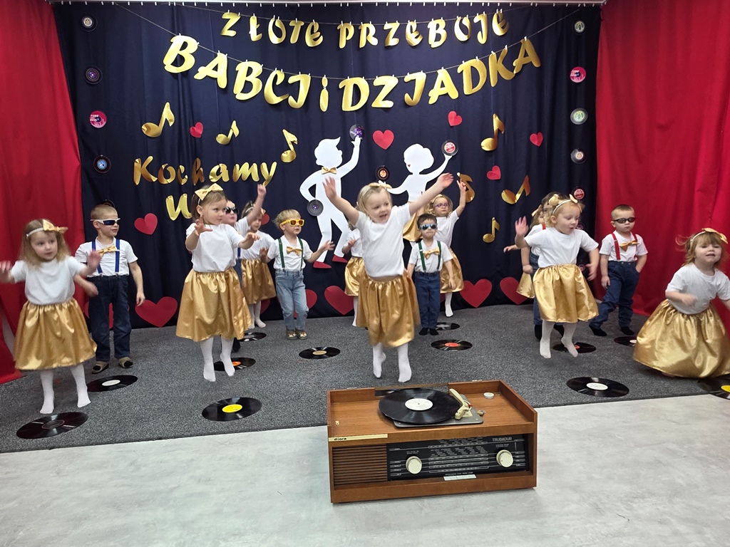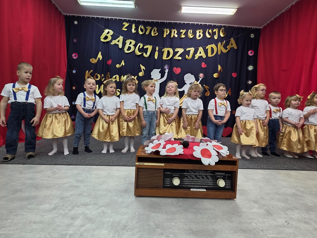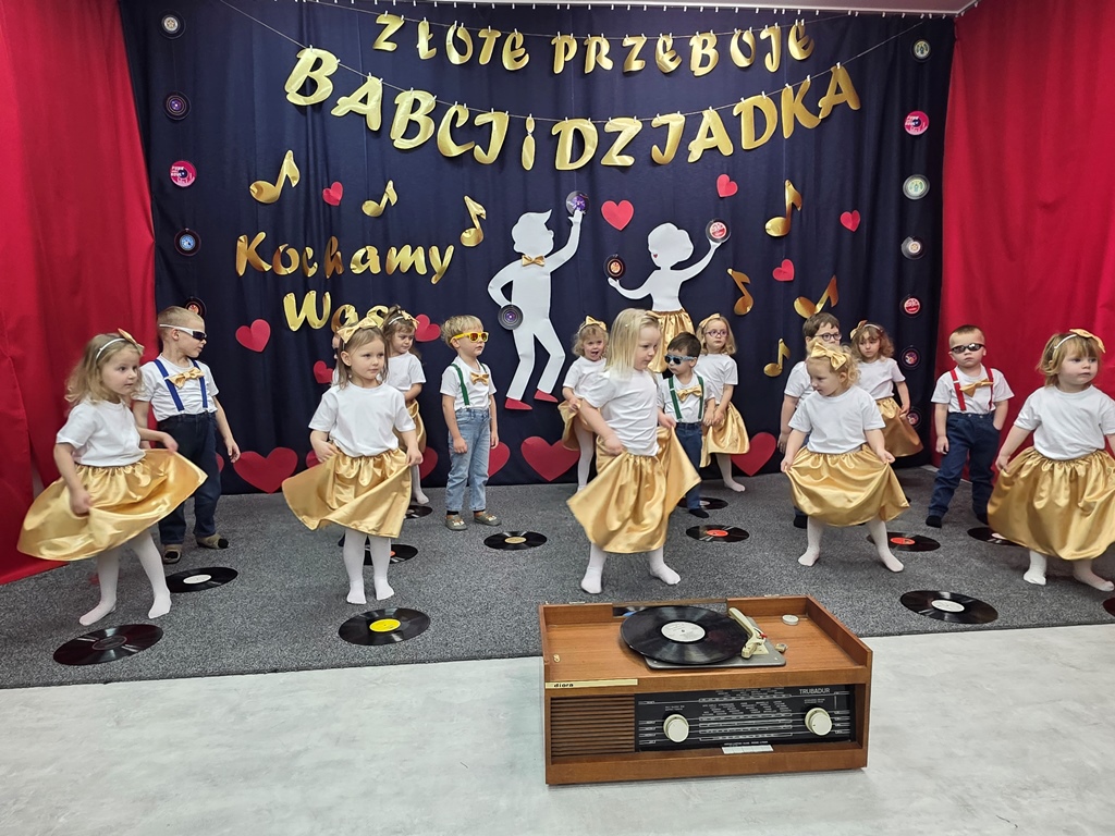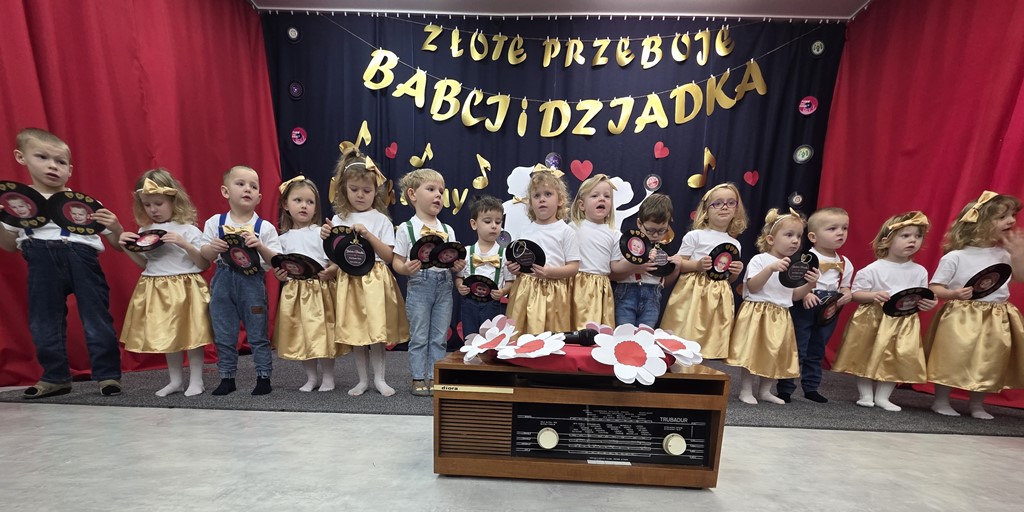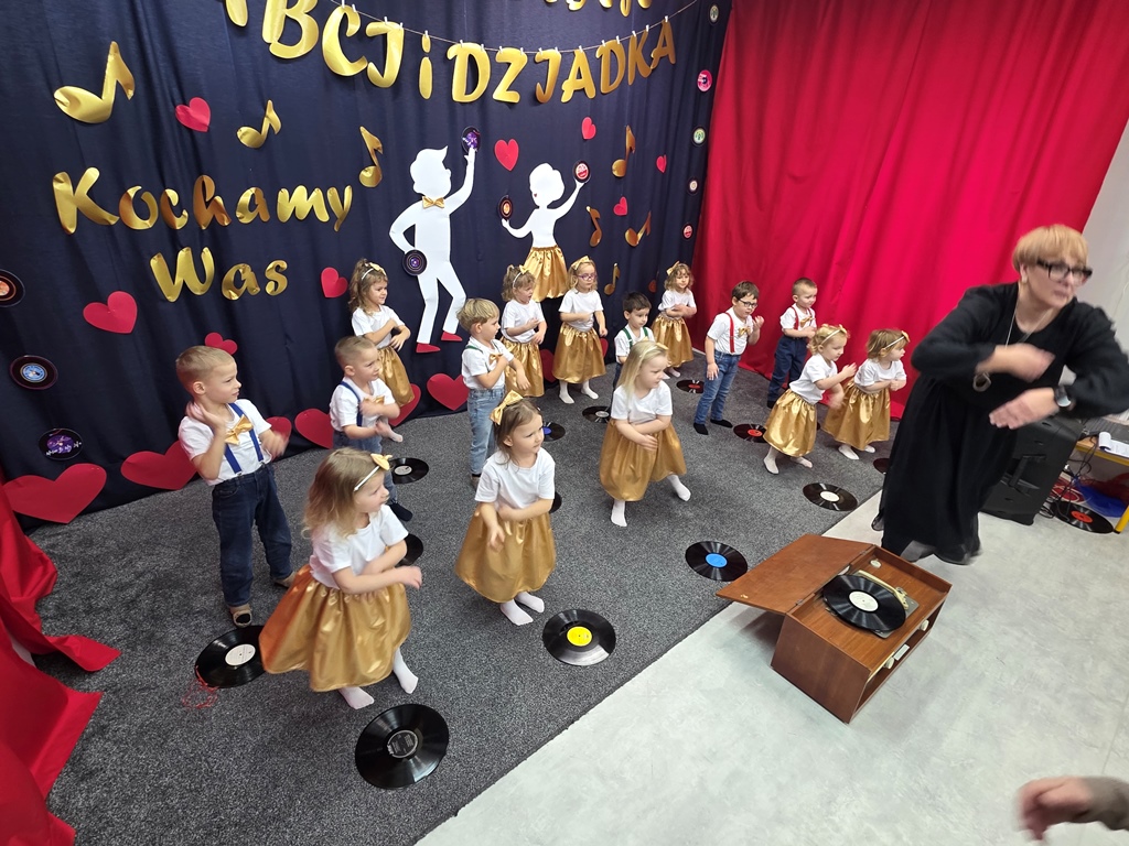 23 srtcznia dzieci z najmłodszej grupy – Sówki zaprezentowały swoim Babciom i Dziadkom wyjątkowy program artystyczny pod hasłem „Złote przeboje Babci i Dziadka”.