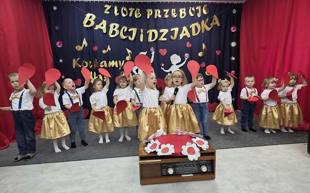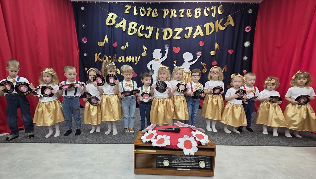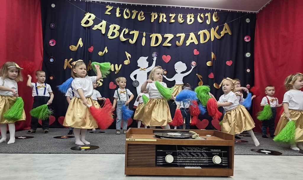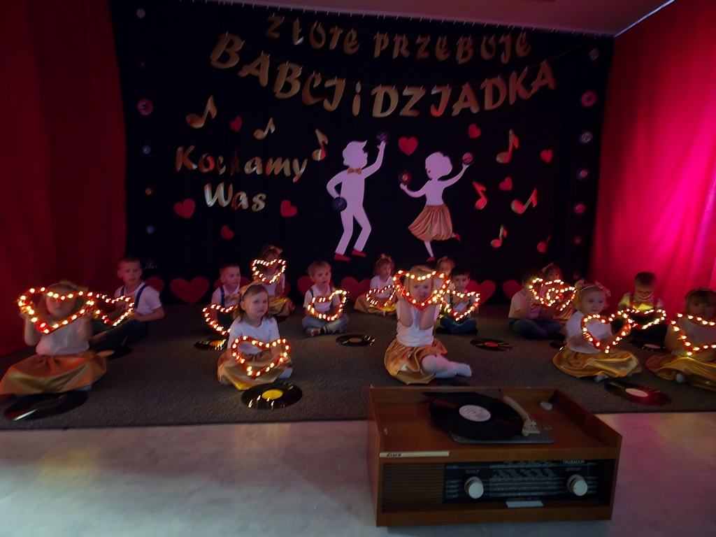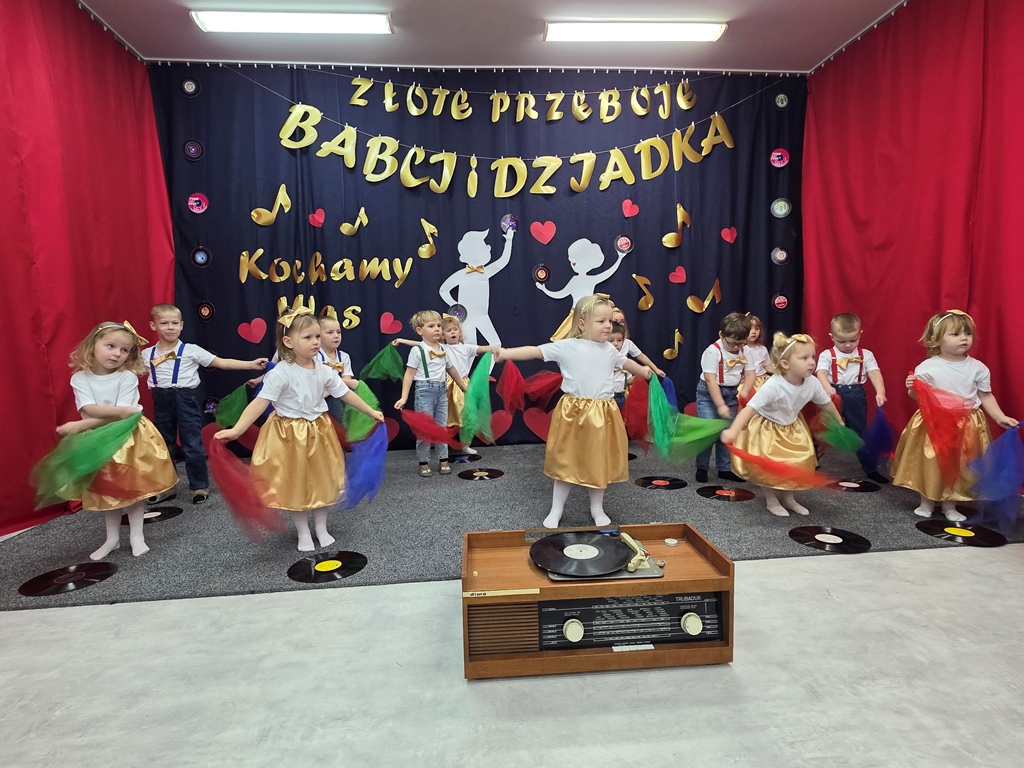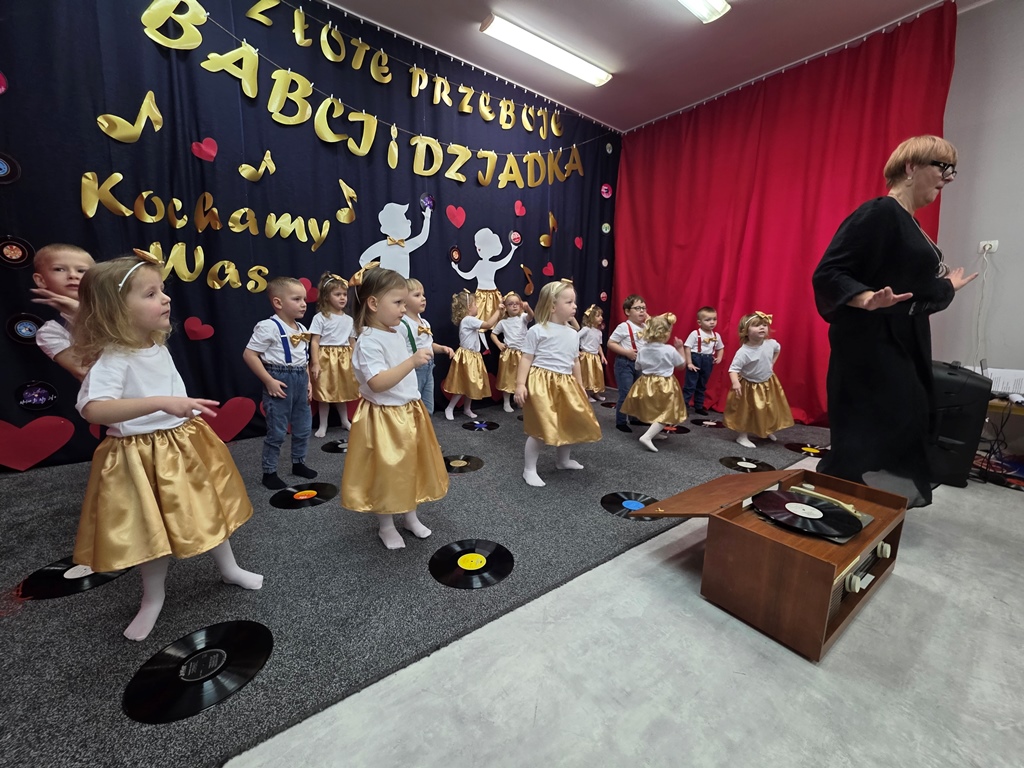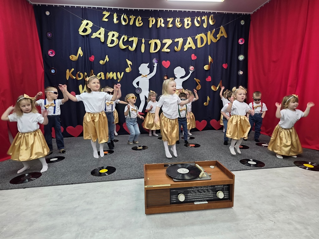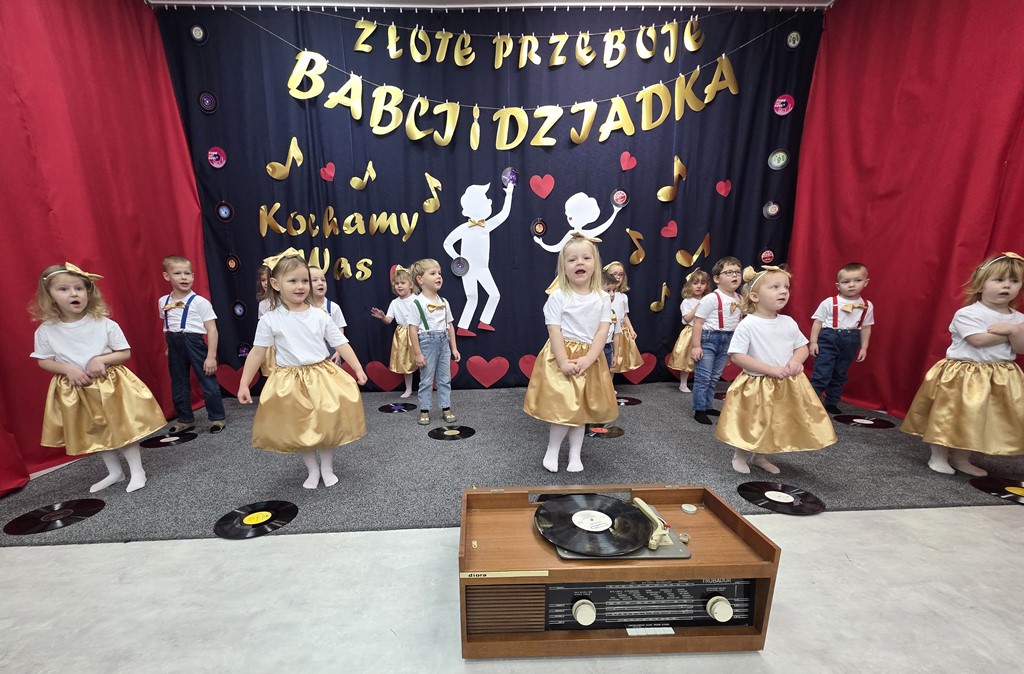 23 srtcznia dzieci z najmłodszej grupy – Sówki zaprezentowały swoim Babciom i Dziadkom wyjątkowy program artystyczny pod hasłem „Złote przeboje Babci i Dziadka”.
