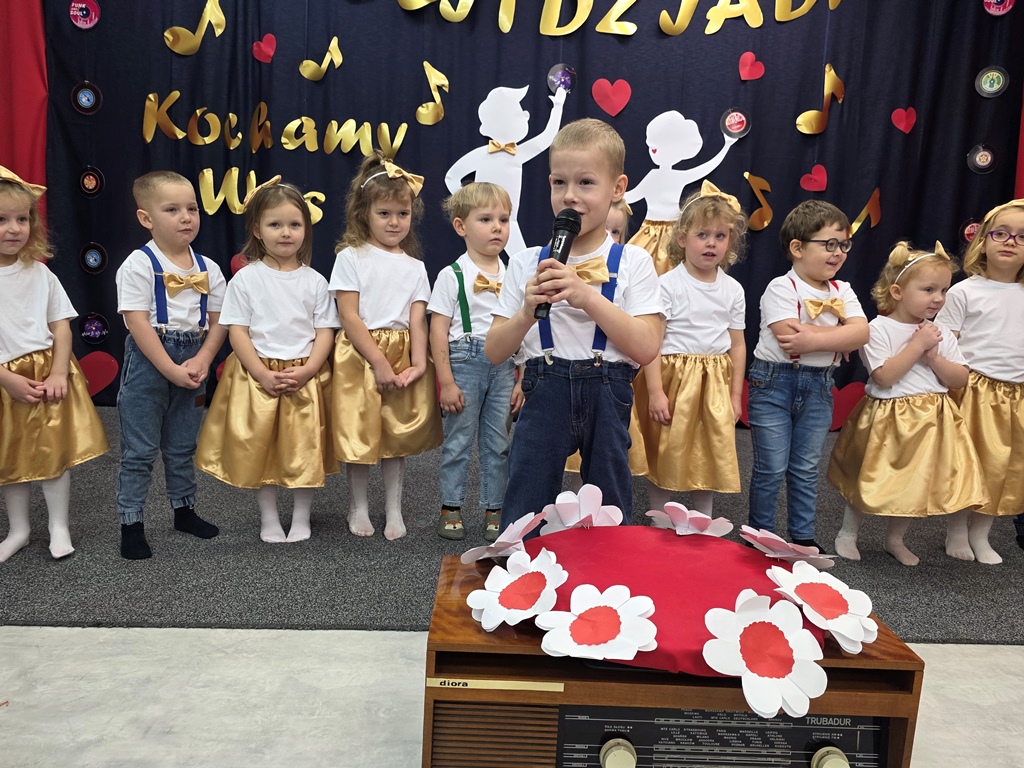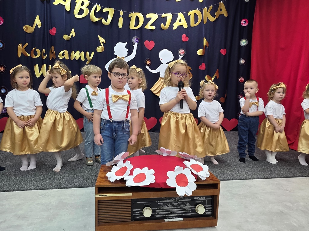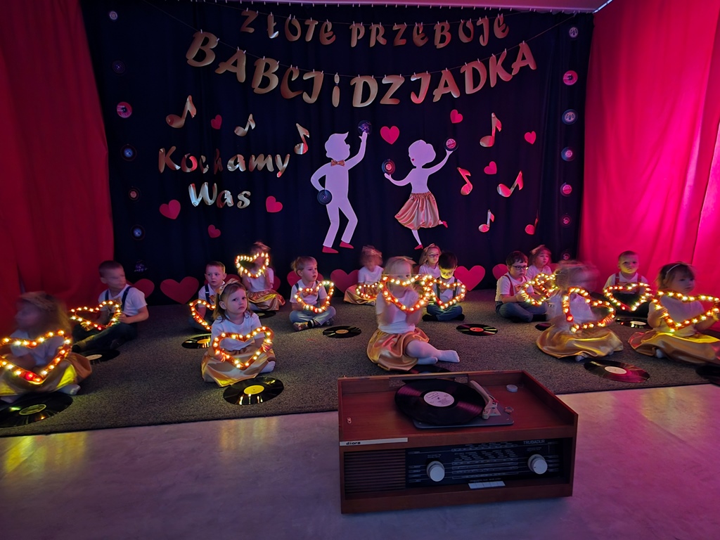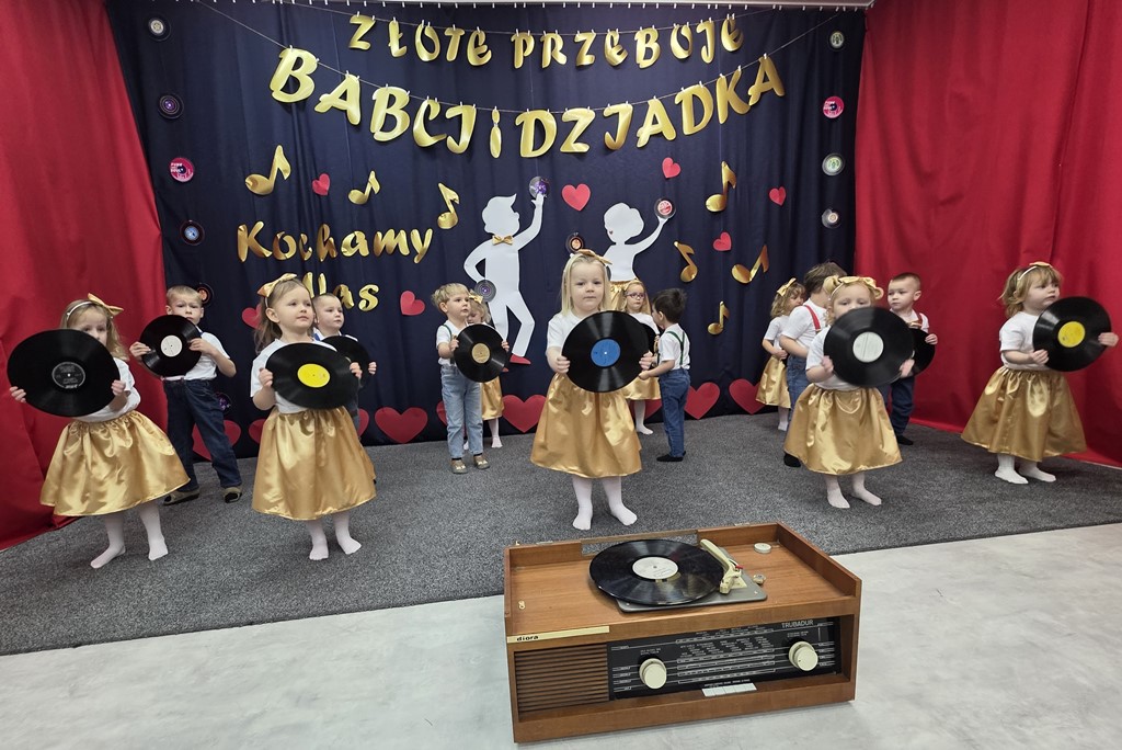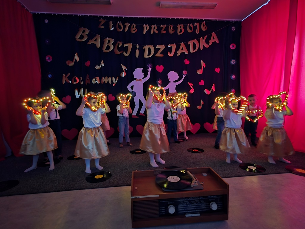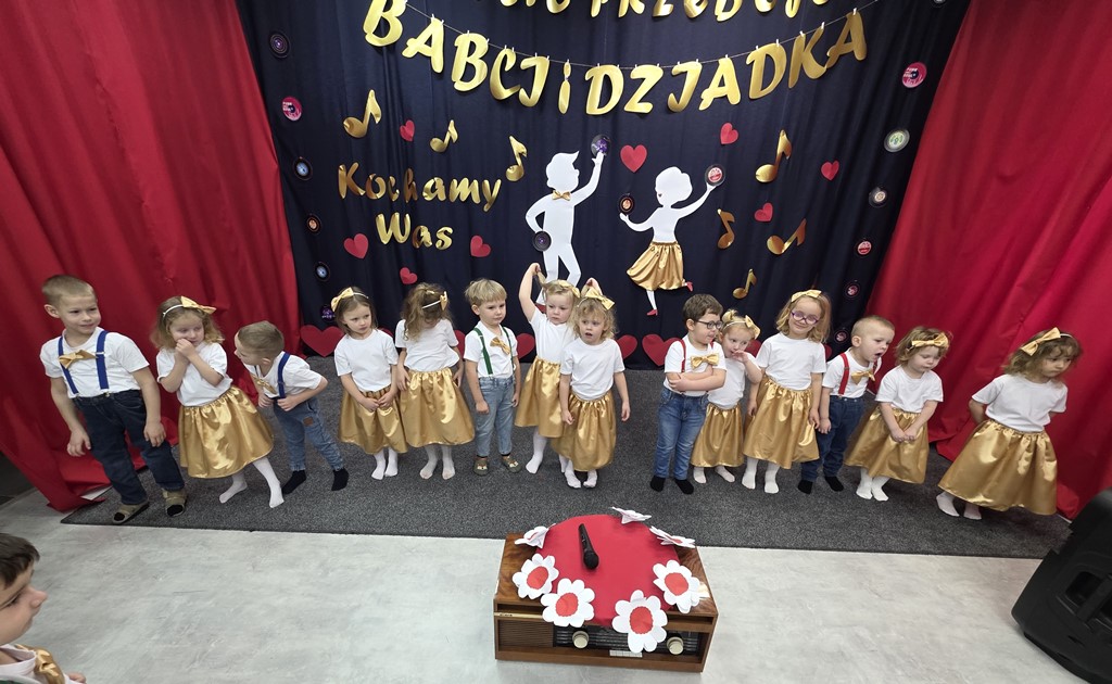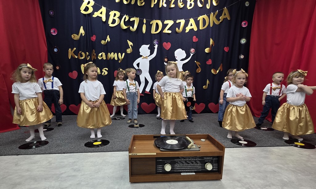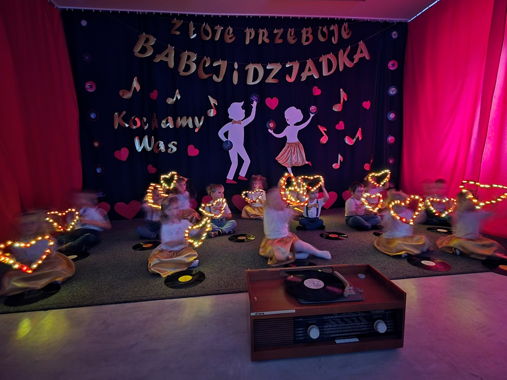 23 srtcznia dzieci z najmłodszej grupy – Sówki zaprezentowały swoim Babciom i Dziadkom wyjątkowy program artystyczny pod hasłem „Złote przeboje Babci i Dziadka”.