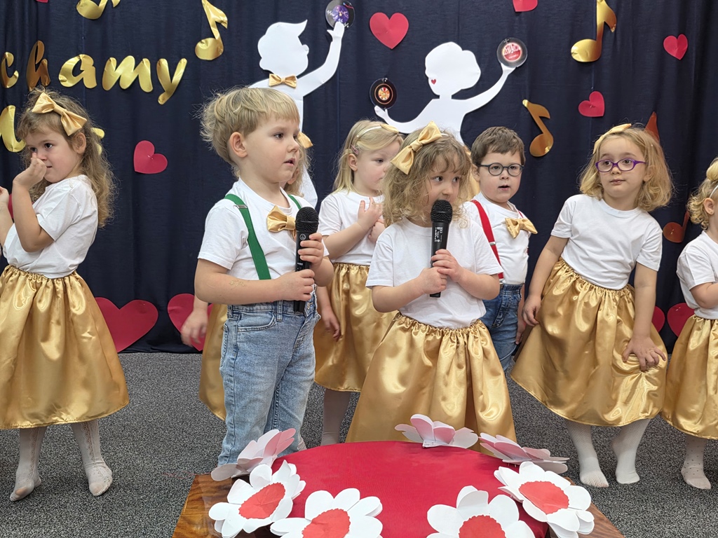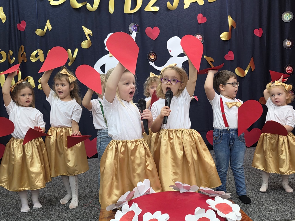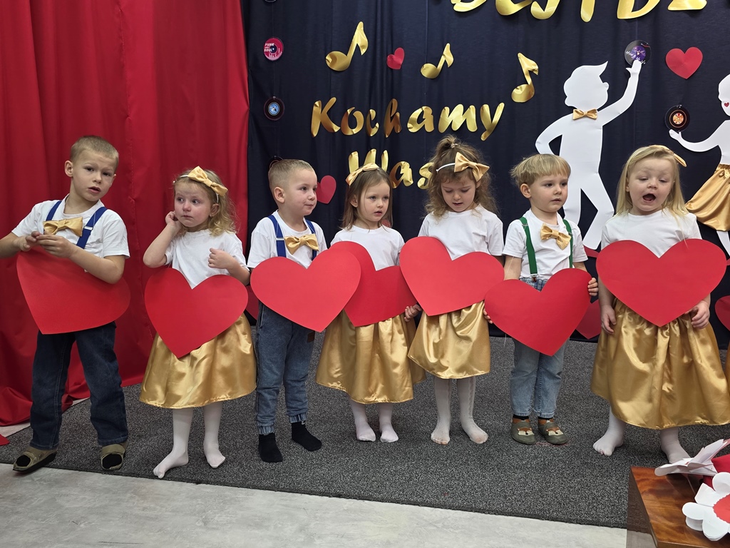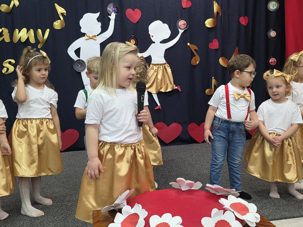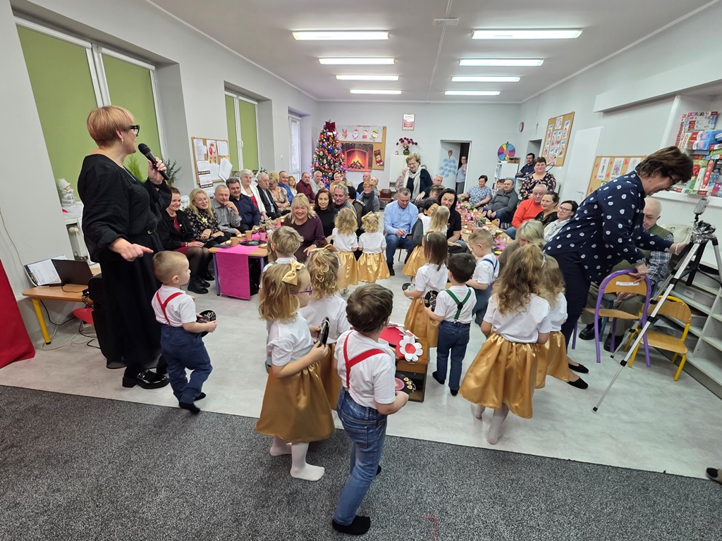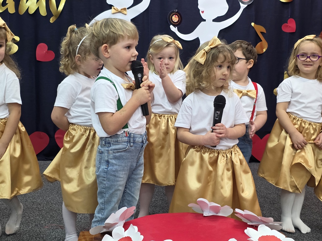 Przedszkolaki z entuzjazmem zaprezentowały program artystyczny, pełen emocjonalnych tańców, radosnych piosenek i krótkich wierszy, które wzruszyły i rozbawiły naszych gości.