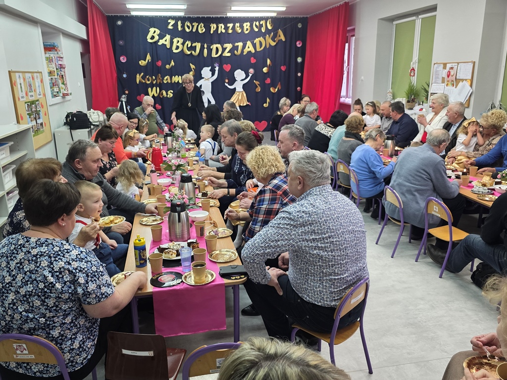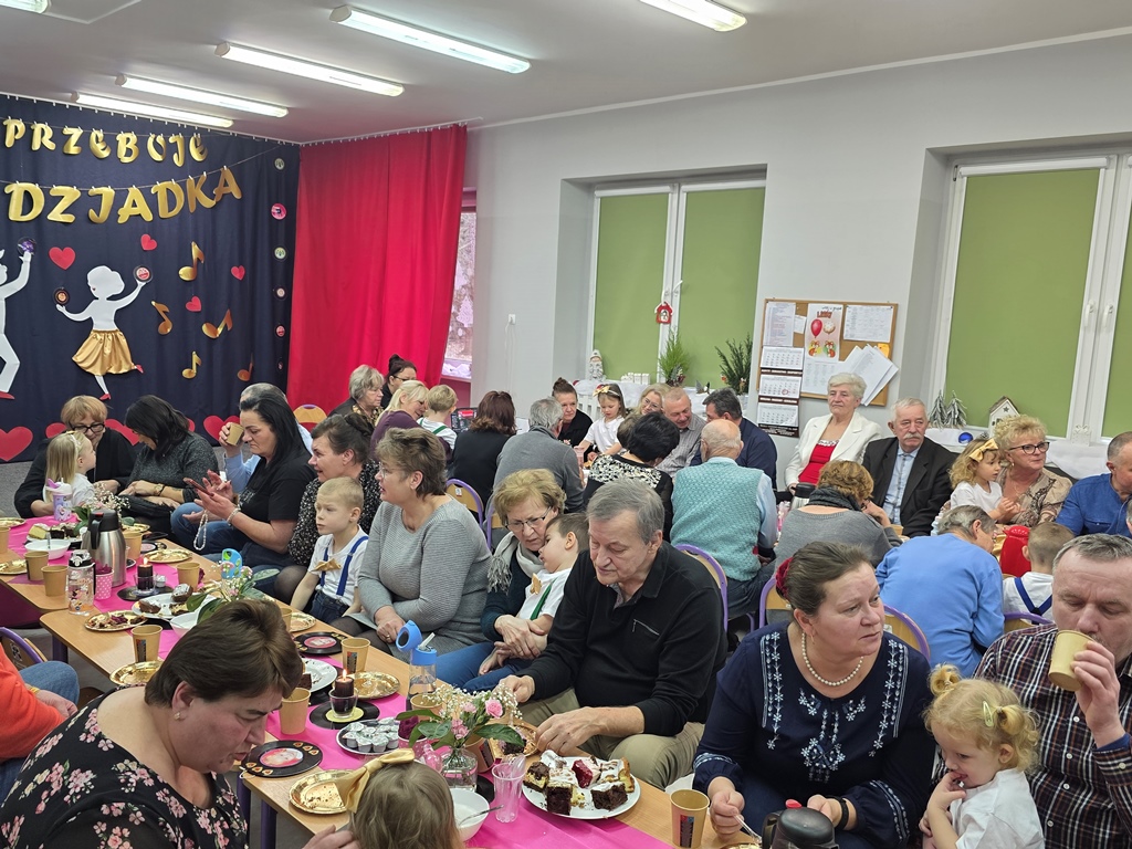 Dzieci złożyły serdeczne życzenia i wręczyły Babciom oraz Dziadkom własnoręcznie wykonane upominki.