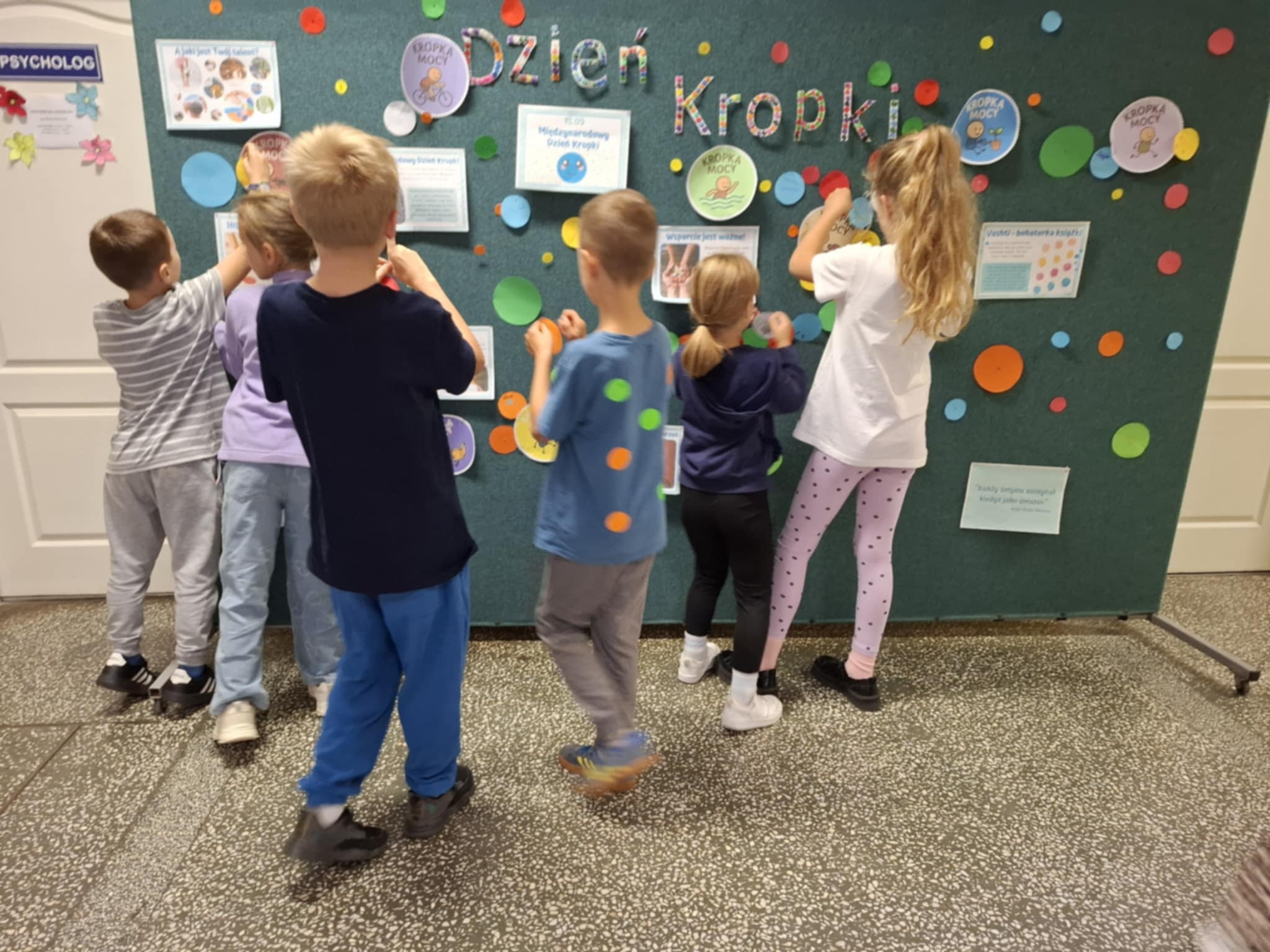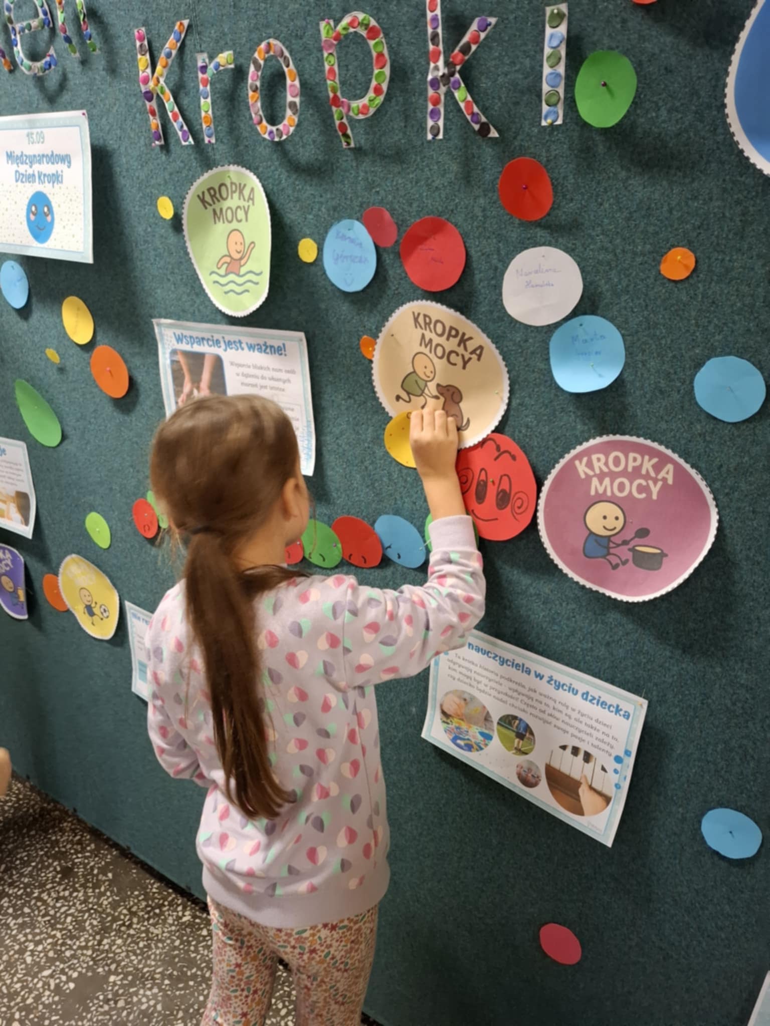 15 września to święto kreatywności i odkrywania swoich talentów. Śladem Vashti, 3- klasiści wykonali zbiorową pracę plastyczną, której motywem przewodnim była kropką. Efekt ich pracy stanowi dekorację sali nr 2. Korzystając z Kropek Mocy , opowiadali o swoich umiejętnościach i talentach. Bawili się w " Żywe kropki" , grali w klasy. Wszystkim towarzyszył pogodny nastrój. Każdy uczeń wychodził z klasy z przekonaniem , że wystarczy uwierzyć w siebie by odkryć swój talent.