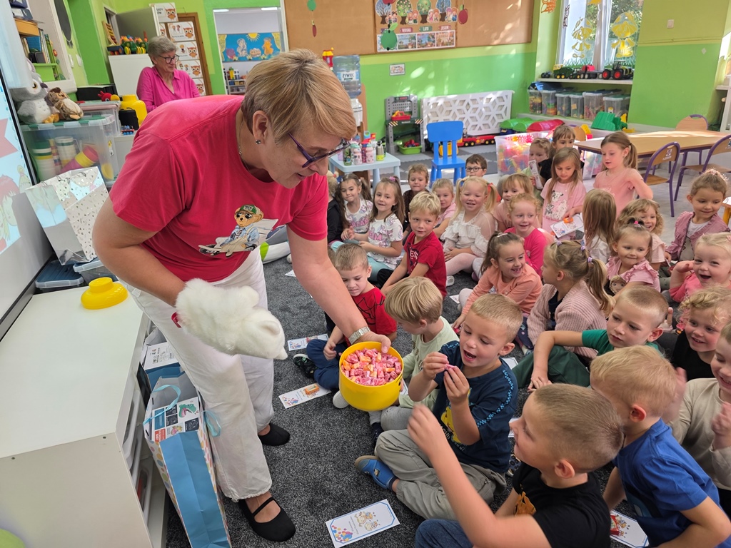 Potem były życzenia od pań, prezenty dla całej grupy oraz upominki dla każdego dziecka.