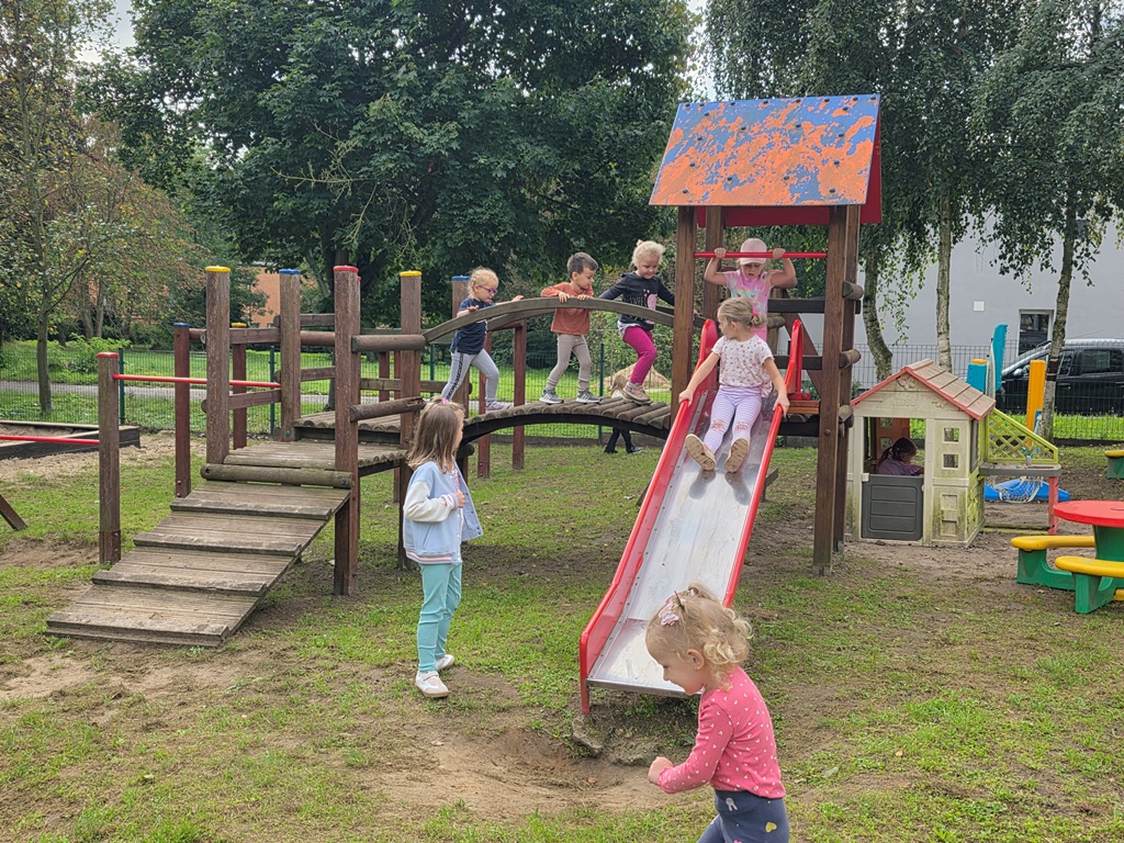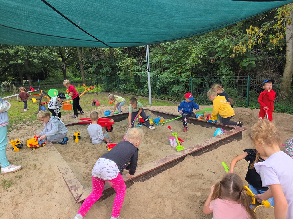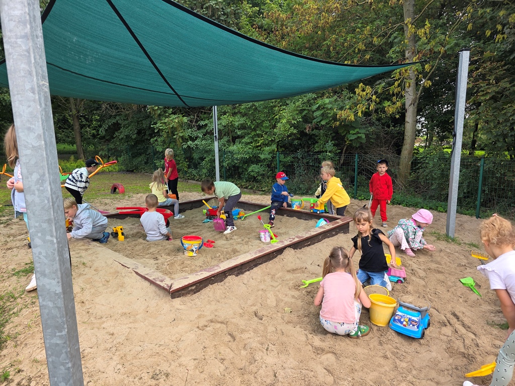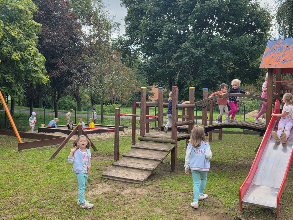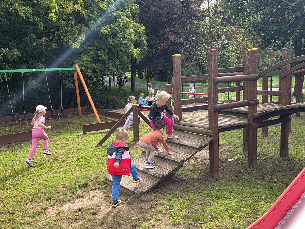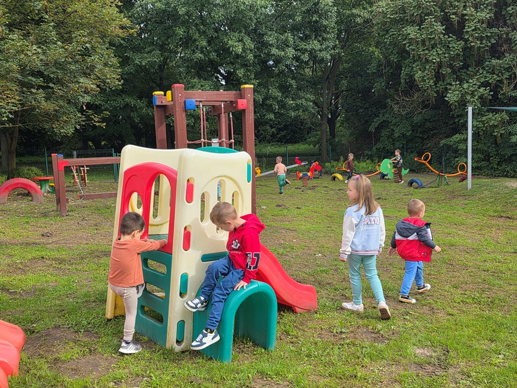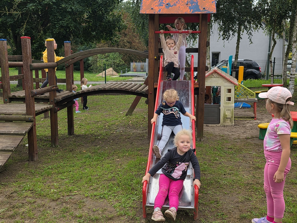 Po części w sali przedszkolnej dzieci zostały zaproszone na plac zabaw, gdzie czekała na nie słodka wata cukrowa oraz pyszny, gorący popcorn. Całości towarzyszyła dobra muzyka, a na twarzach przedszkolaków gościł radosny uśmiech.