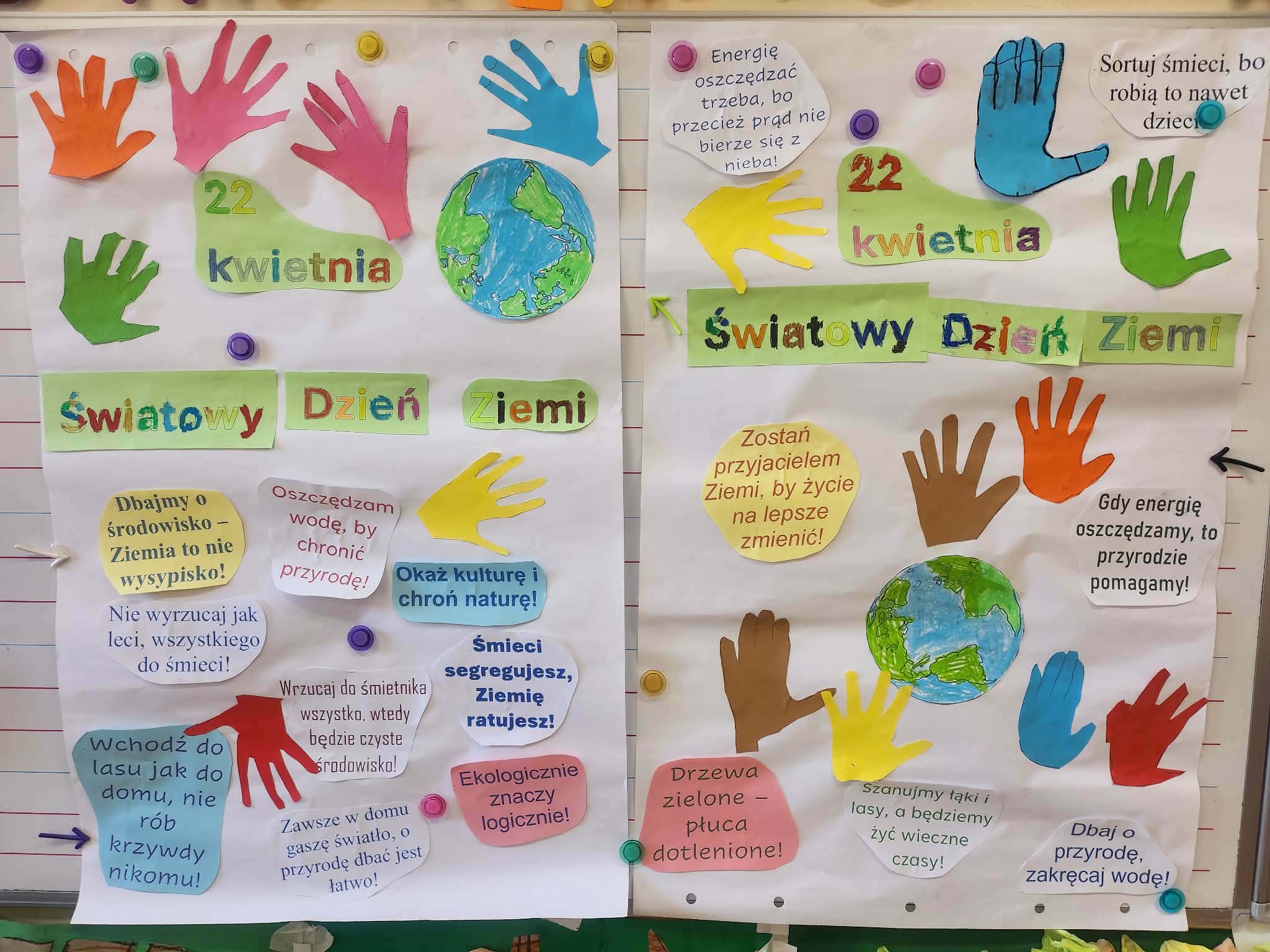 22 kwietnia to Światowy Dzień Ziemi. W tym dniu zwracamy szczególną uwagę na ekologię i szacunek do naszej planety. Uczniowie klas młodszych przygotowywali się do tego święta. Posprzątali nasze najbliższe otoczenie, udekorowali wejście do szkoły kwiatami, wzięli udział w ekologicznych zajęciach edukacyjnych. A wszystko w trosce o Matkę Ziemię..