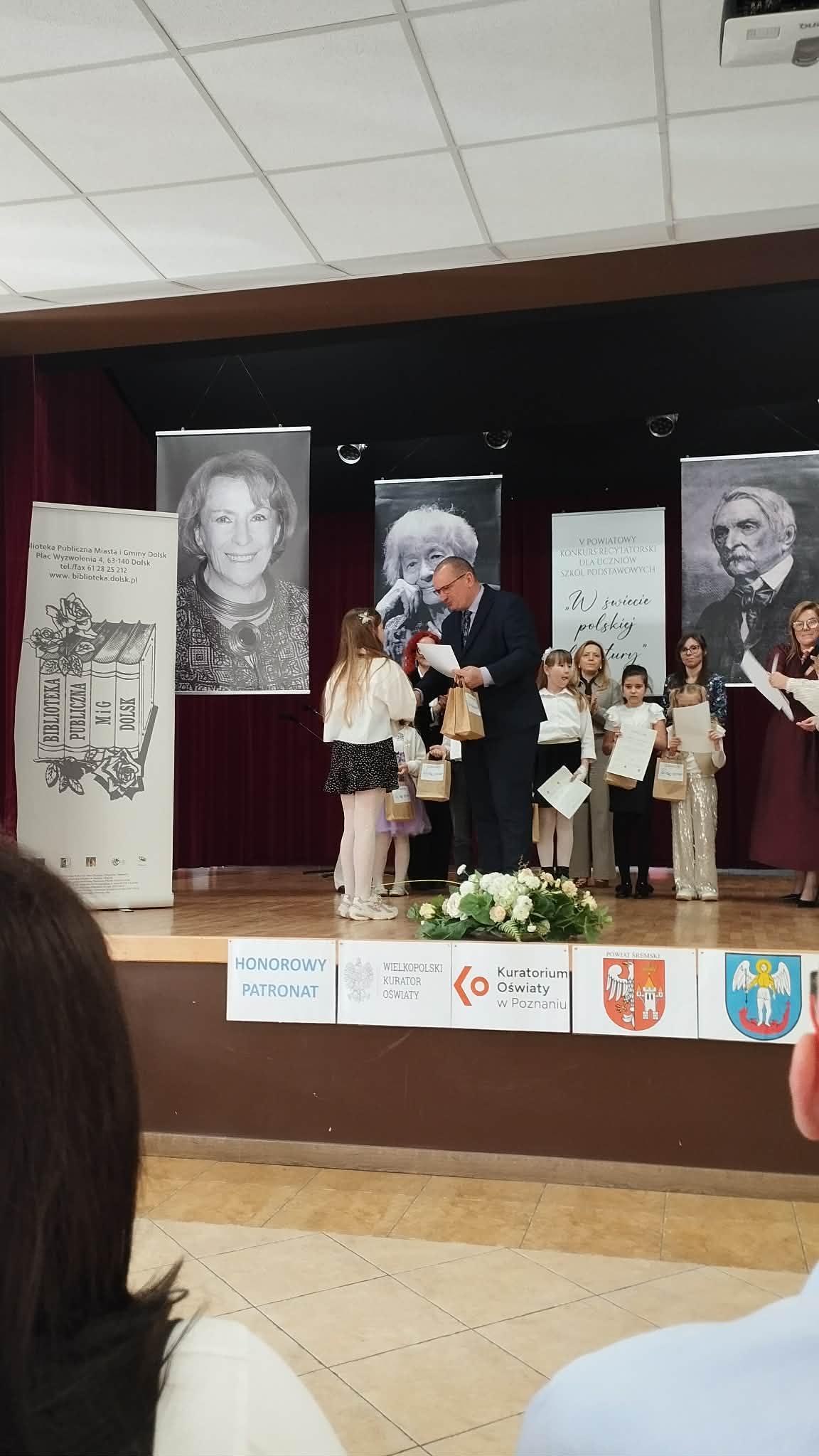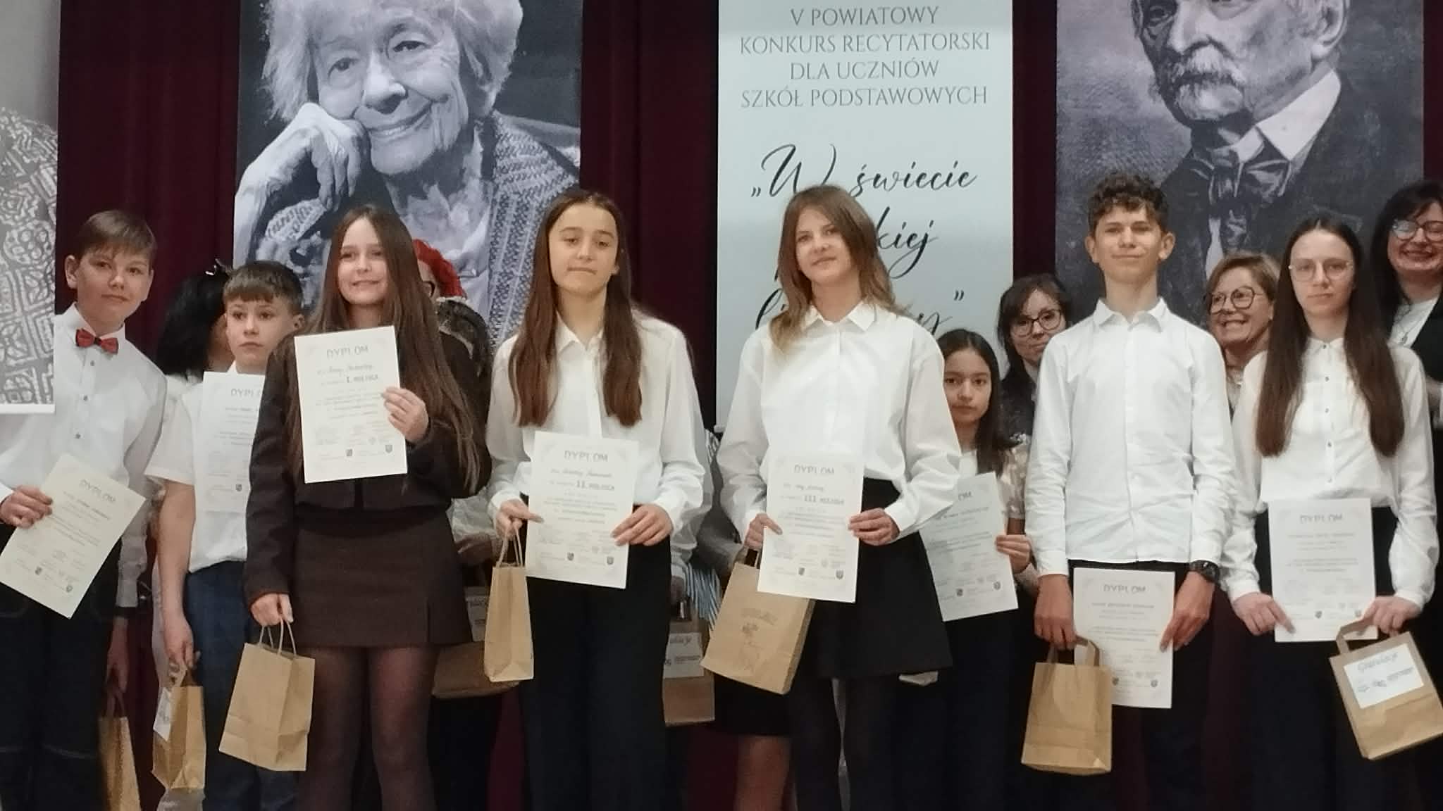 W piątek 27 marca odbył się w Dolsku finał Powiatowego Konkursu Recytatorskiego. Do zmagań stanęli najlepsi recytatorzy z całego powiatu. Wśród nich trzy nasze uczennice - Ola Konarkowska i Kalina Kubiak z kl. III oraz Marysia Florczak z kl. V. Poziom recytacji był bardzo wysoki i jury miało sporo trudności z wyłonieniem najlepszych. Ostatecznie okazało się, że Ola zdobyła III miejsce!!! Wielkie gratulacje! Dziękujemy rodzicom dziewczynek za transport i dobre słowo!