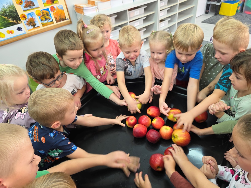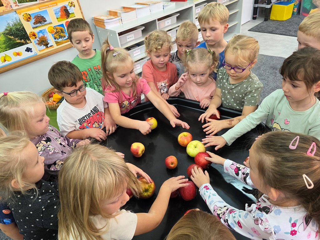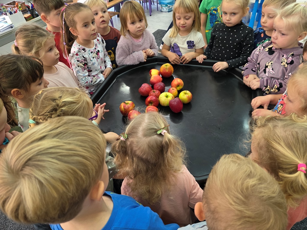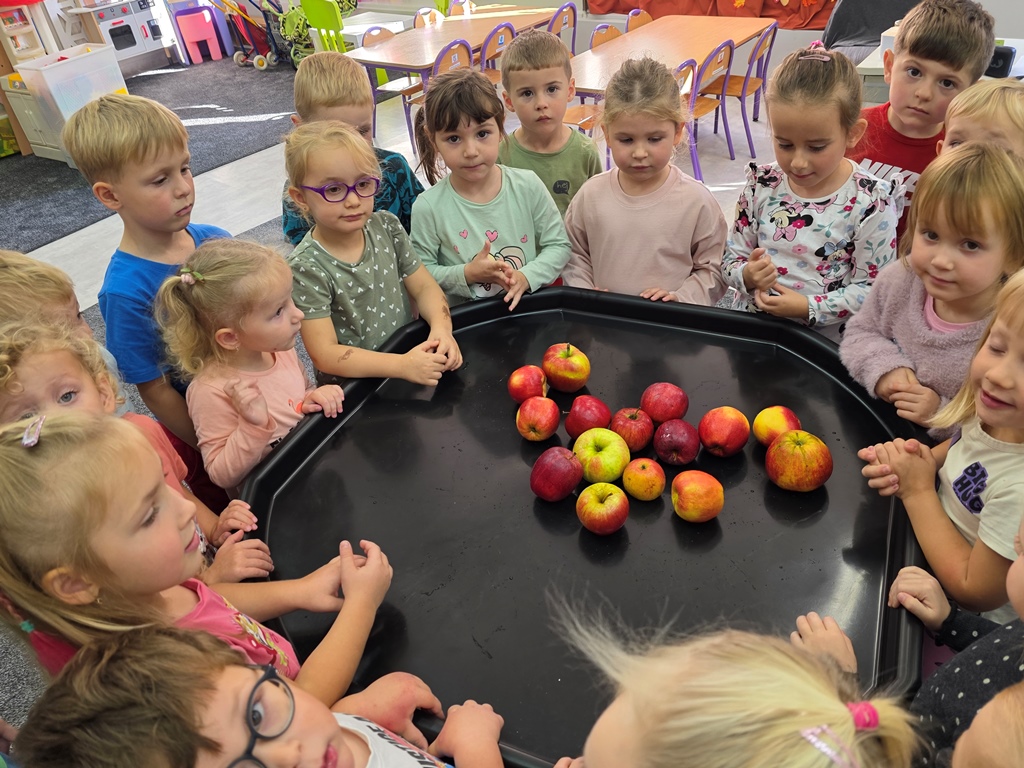W piątek maluszki – Sówki oraz średniaki – Liski zapoznały się z bardzo cennym darem jesieni – jabłkiem.