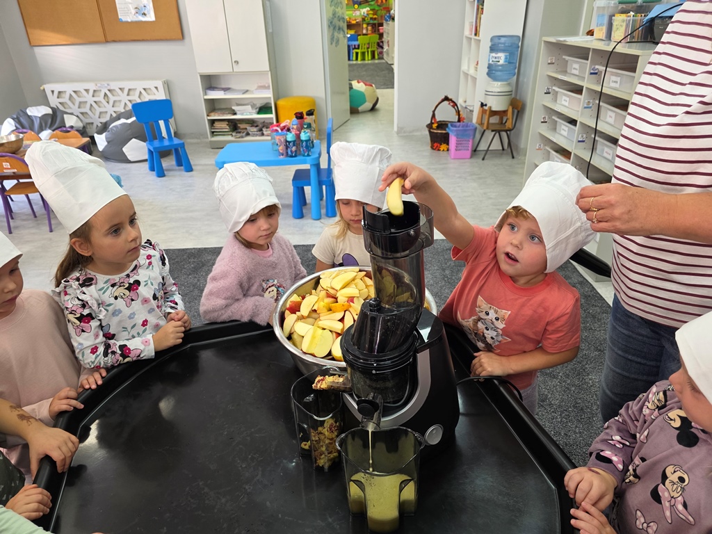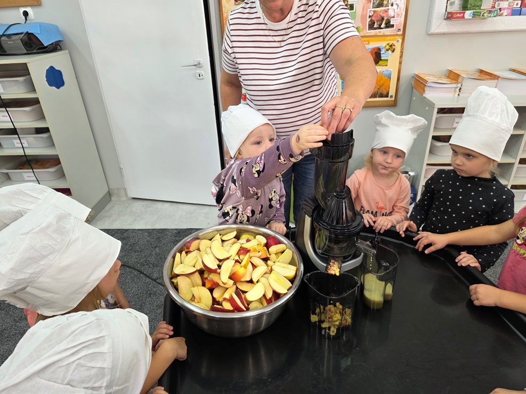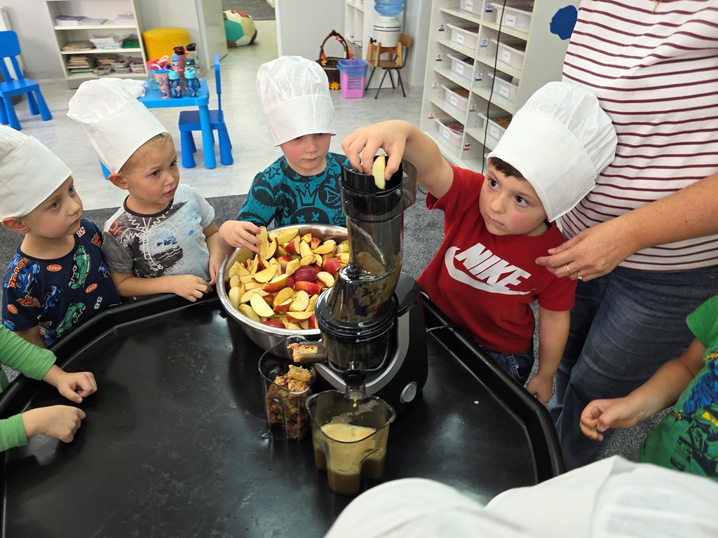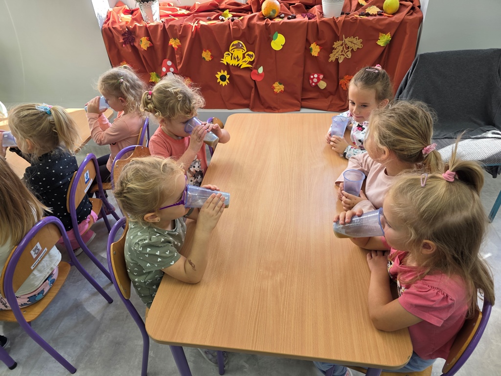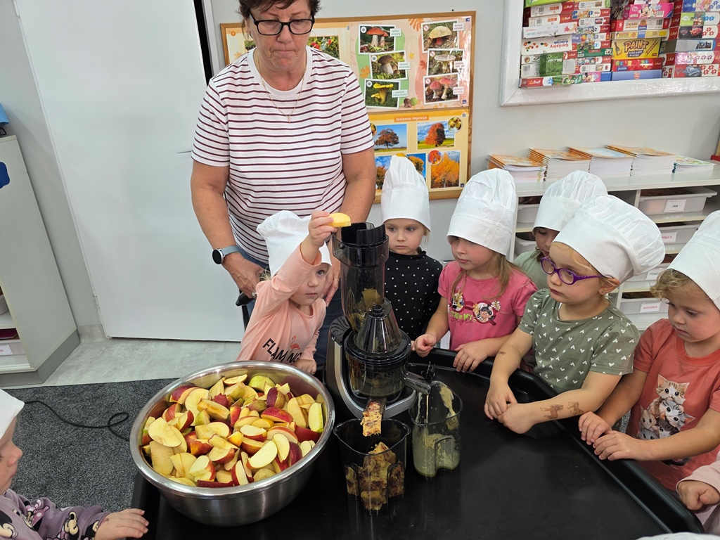 W piątek maluszki – Sówki oraz średniaki – Liski zapoznały się z bardzo cennym darem jesieni – jabłkiem.