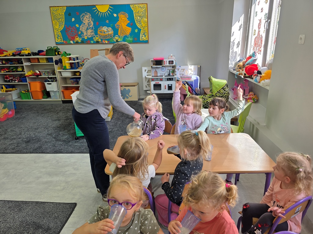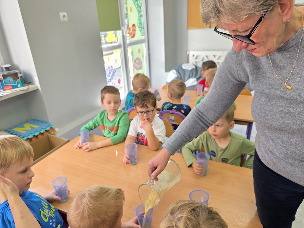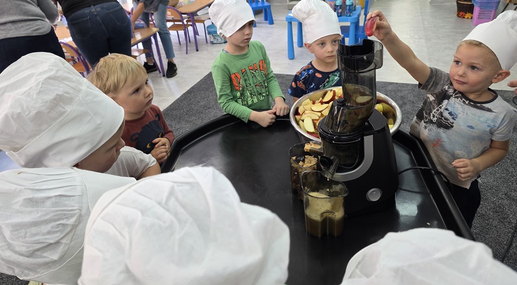 Dzieci odkrywały jego tajemnice: budowę i zawarte witaminy. Na zakończenie wspólnie przygotowały pyszny, świeżo wyciskany sok! ?