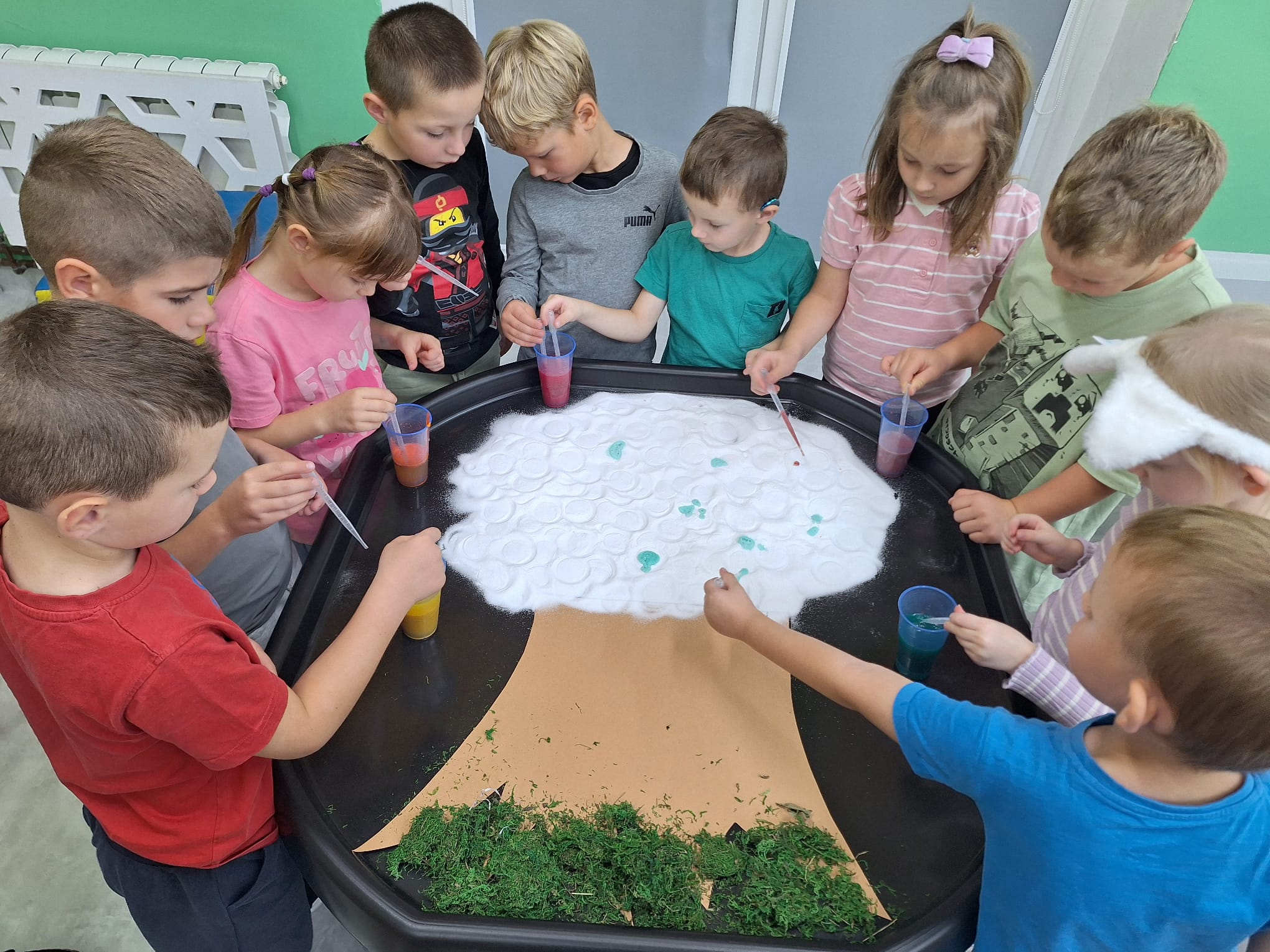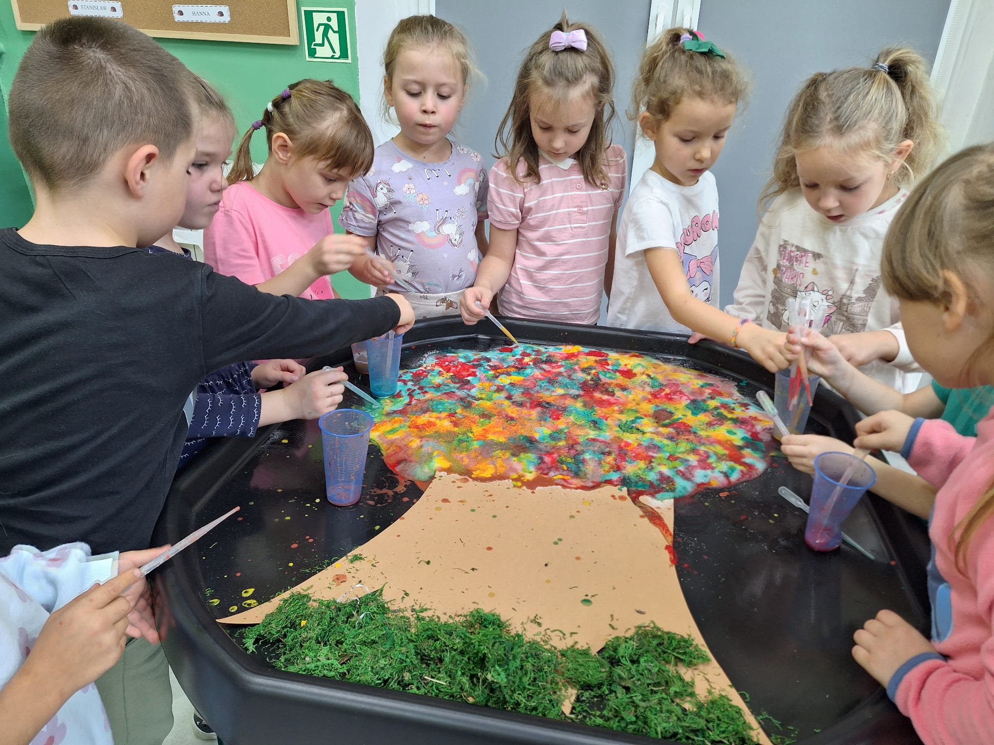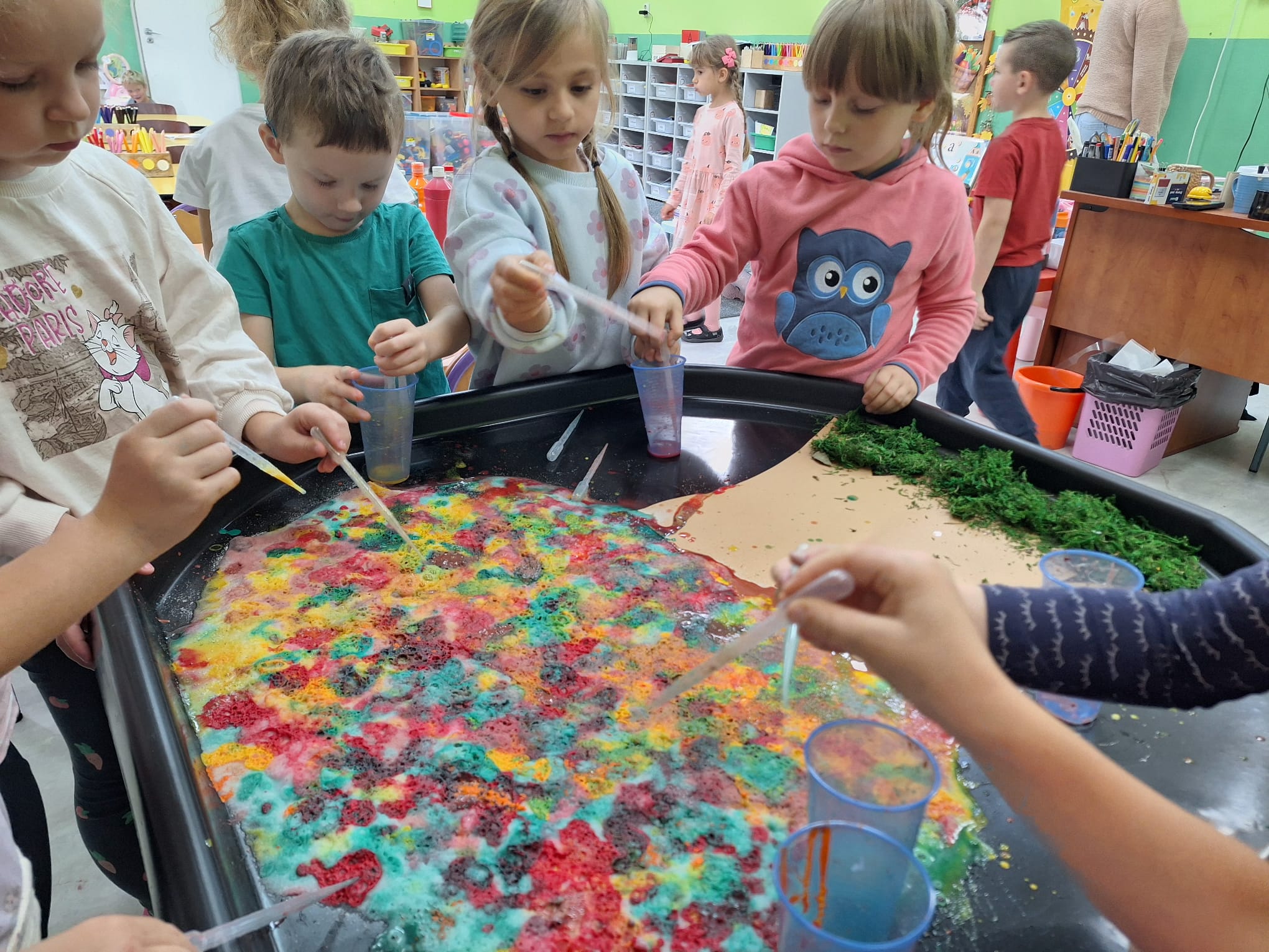 Wszystko odbyło się na naszym nowym stole aktywności sensorycznych — było kolorowo i bardzo twórczo! ?✨