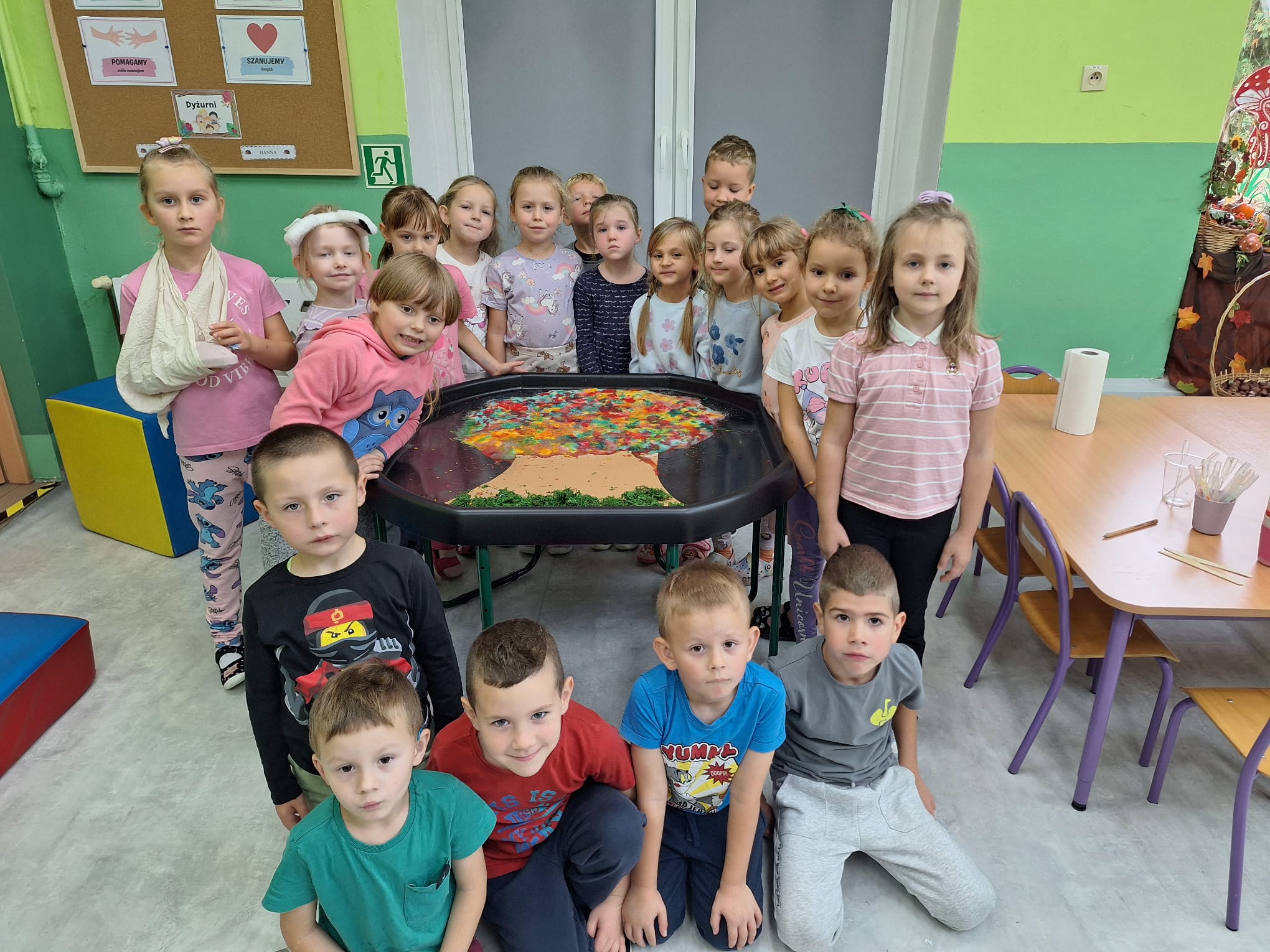 Dzisiaj nasze starszaki z grupy „Jeżyki” stworzyły sensoryczne jesienne drzewo! ?