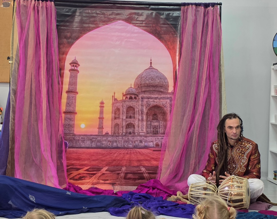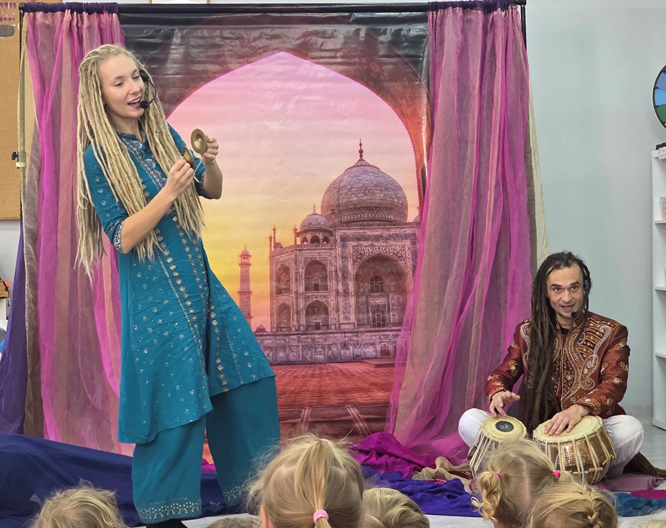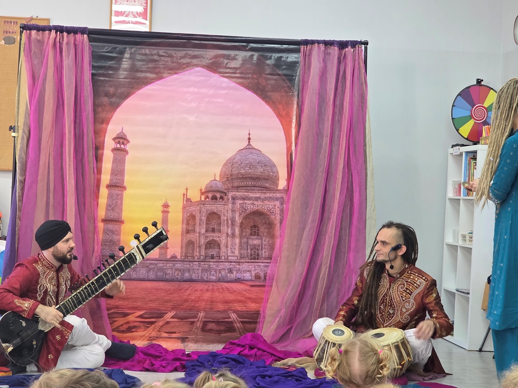 Tym razem wyruszyliśmy w muzyczną podróż do kraju tysiąca bóstw, aromatycznych przypraw i barwnych tkanin – do niezwykłych Indii! Dzieci poznały orientalne instrumenty, melodie oraz hinduskie tradycje.