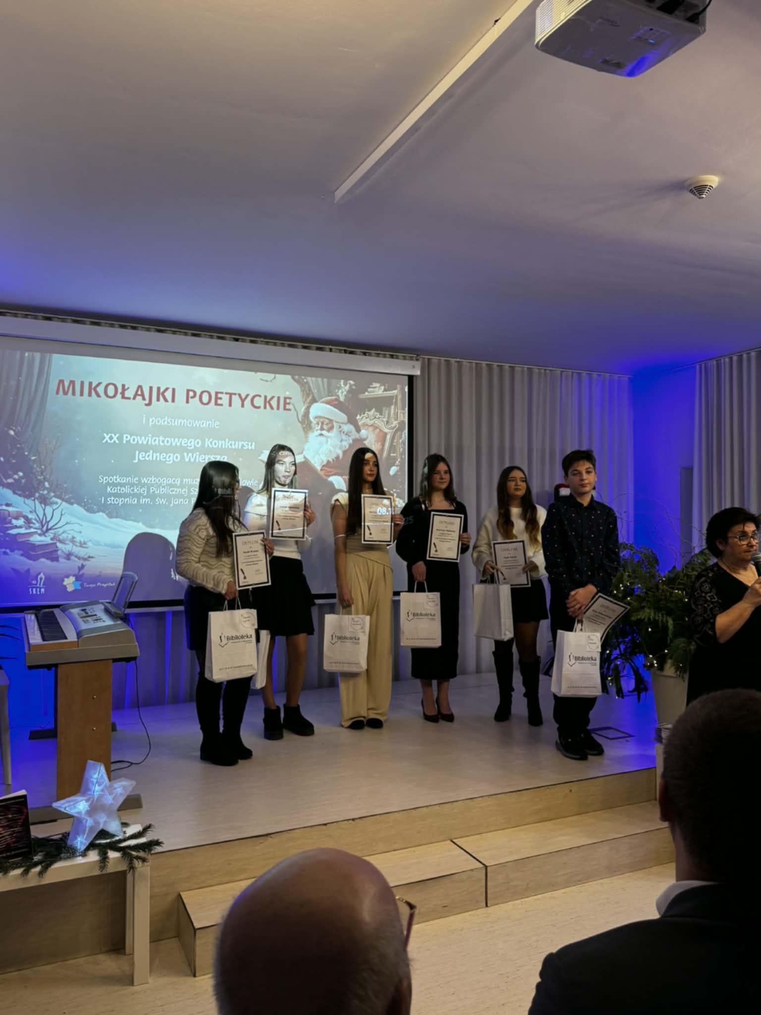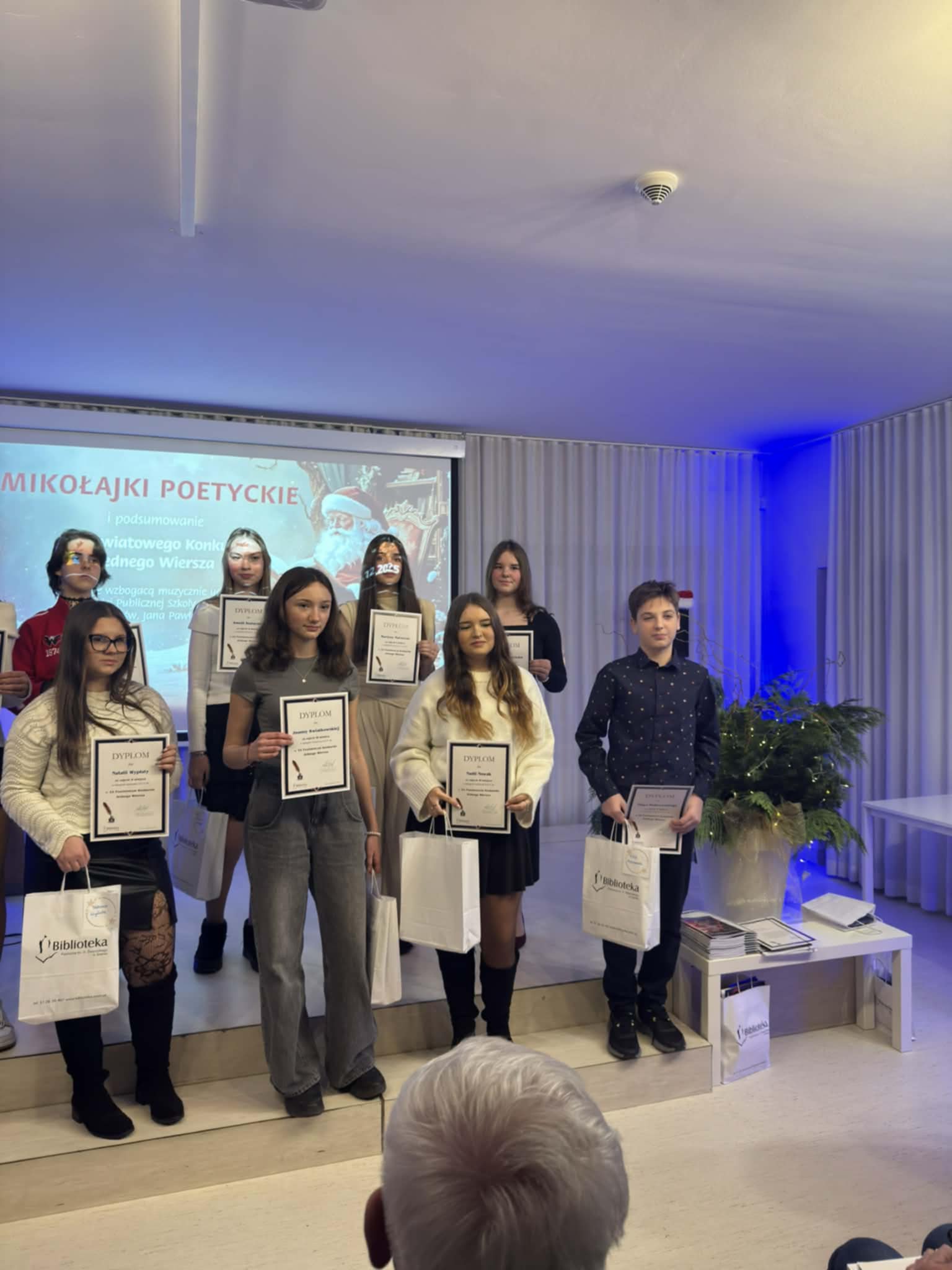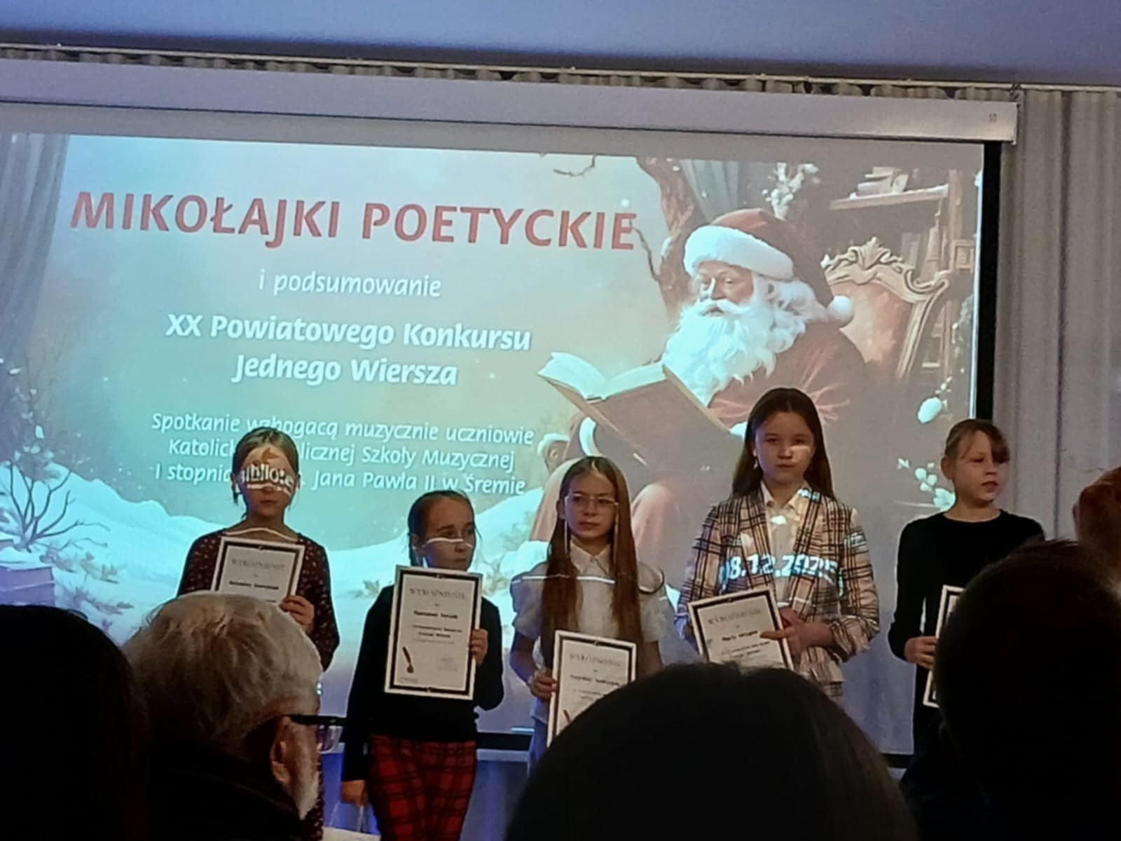 W poniedziałkowe popołudnie 8 grudnia w Bibliotece Publicznej w Śremie odbyło się wręczenie nagród w Powiatowym Konkursie Jednego Wiersza. Jest nam bardzo miło, ponieważ w gronie laureatów znalazły się aż 4 uczennice z naszej szkoły: