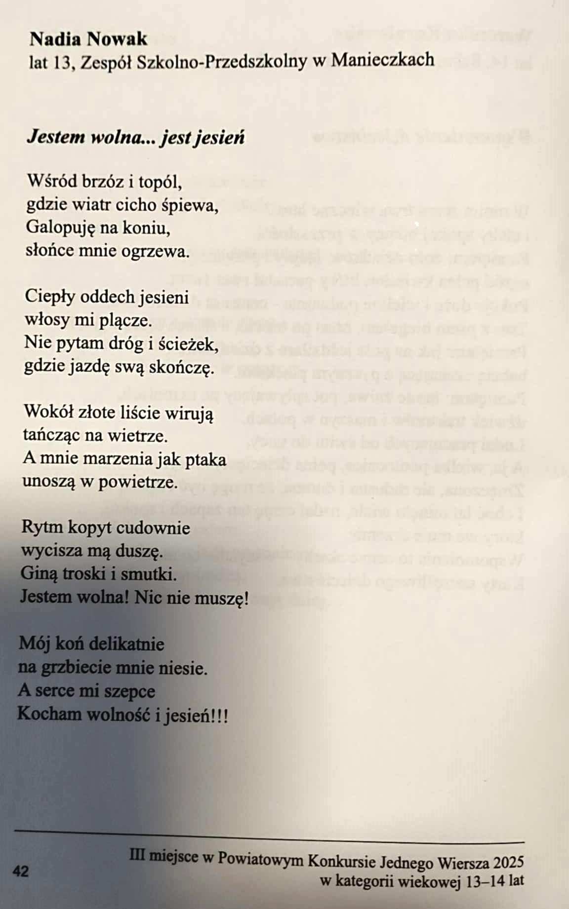 NADIA NOWAK z kl. VIII zdobyła III miejsce,