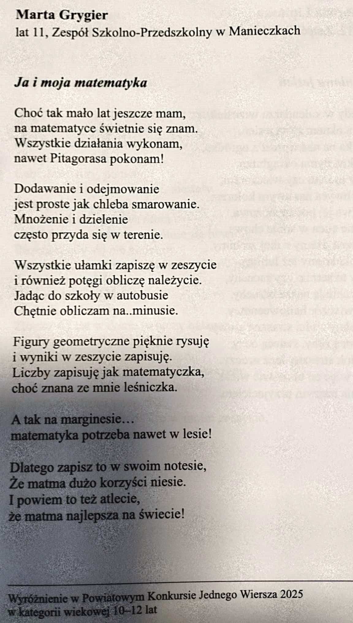 Pięknie dziewczynom gratulujemy i życzymy rozwoju poetyckiego talentu! Konkursowe utwory, które zostały wyróżnione, znalazły się w okolicznościowym tomiku "Nie poddawaj się, jeszcze raz..."