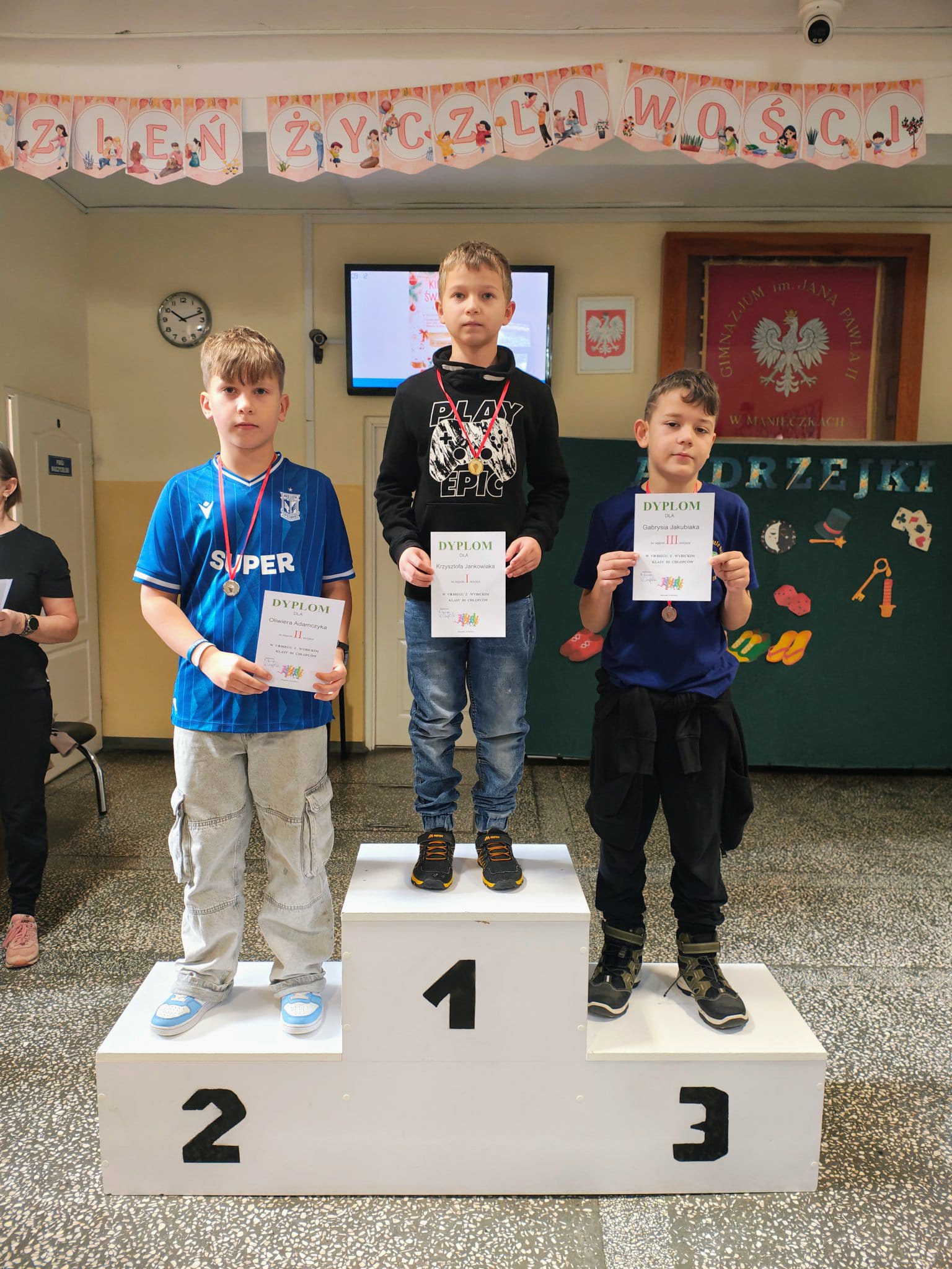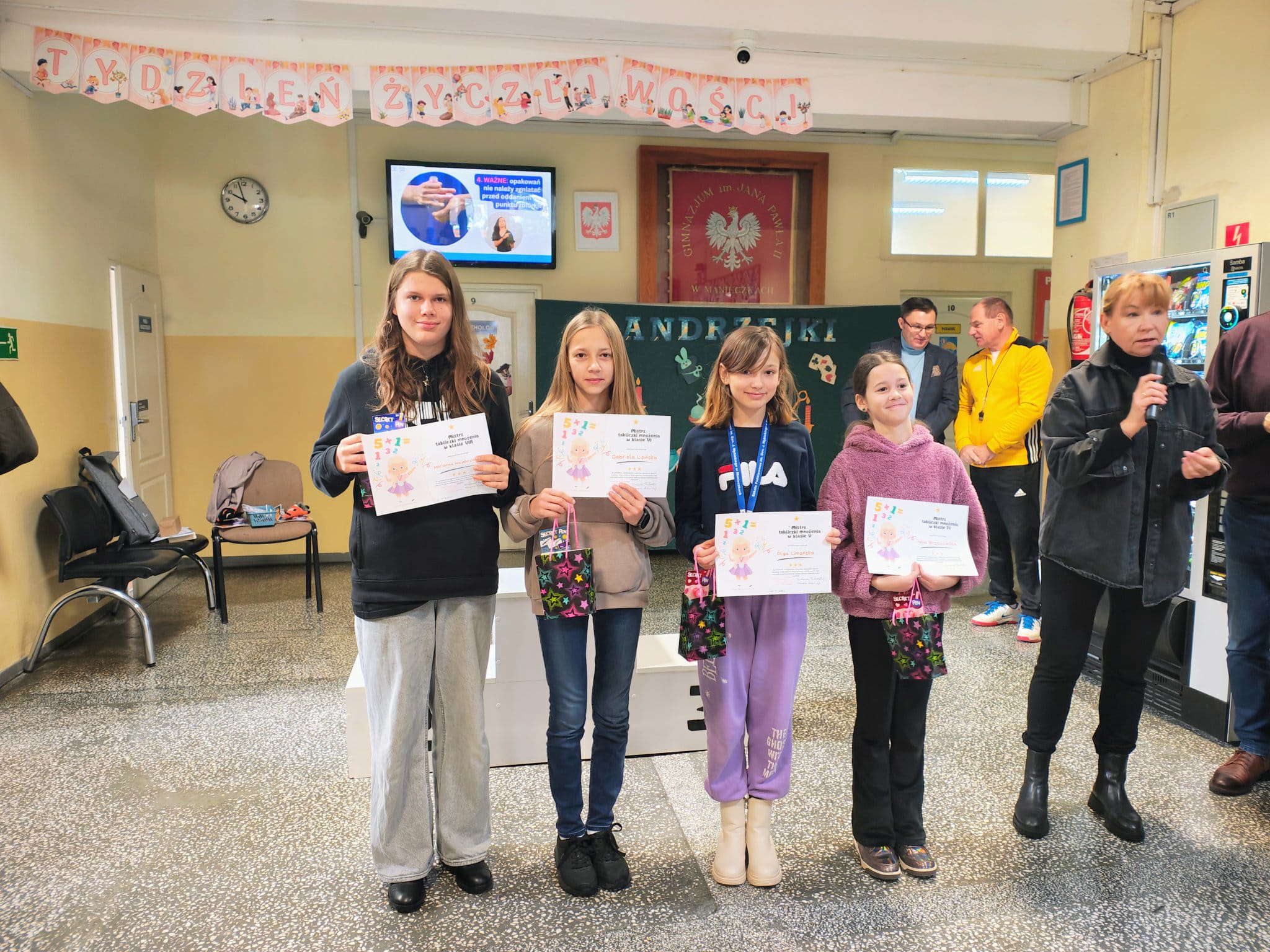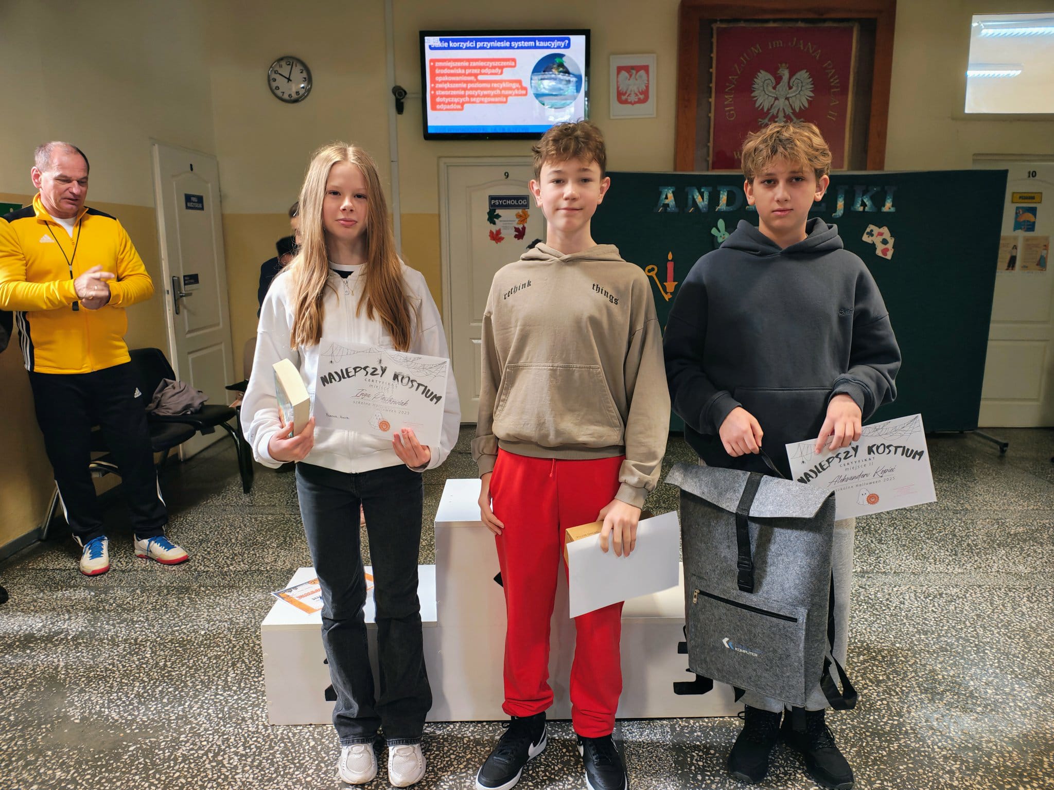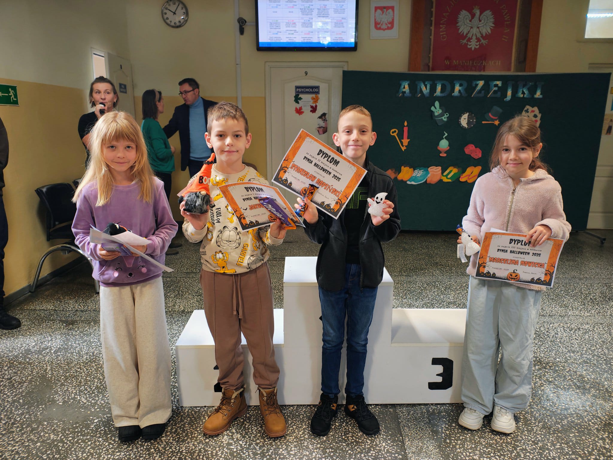 W czwartek 27 listopada odbył się krótki apel, podczas którego wręczyliśmy nagrody i dyplomy za konkursy matematyczne, halloweenowe oraz medale za Bieg z Wybickim. Wszystkim nagrodzonym GRATULUJEMY!!!