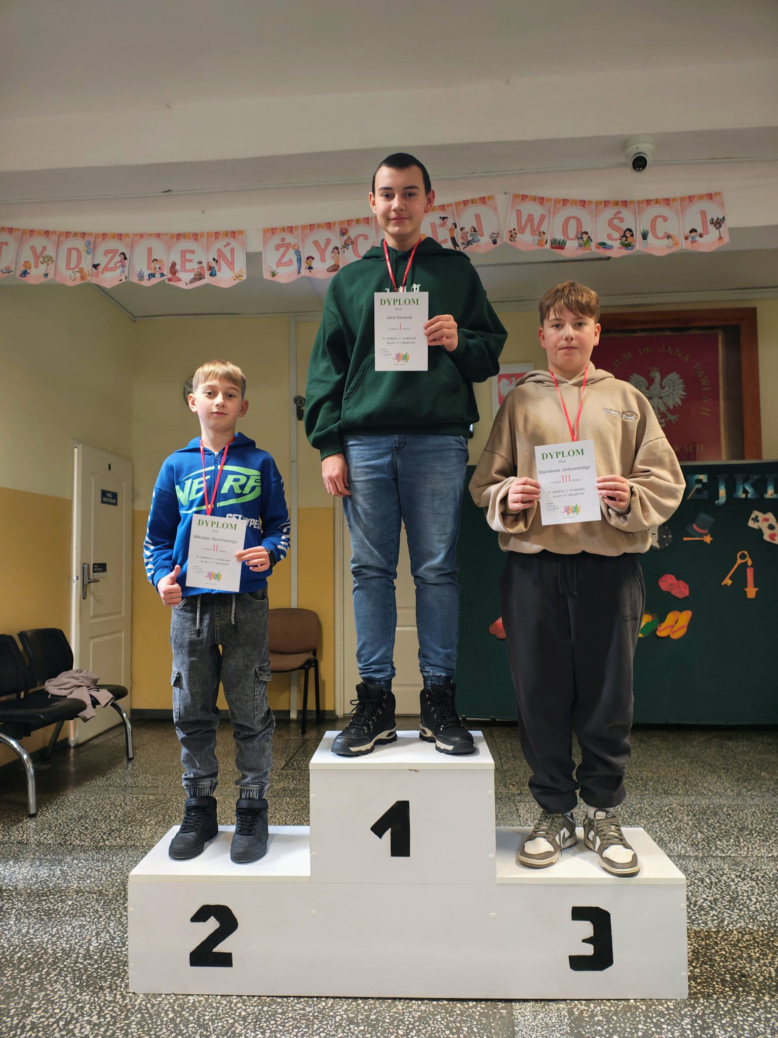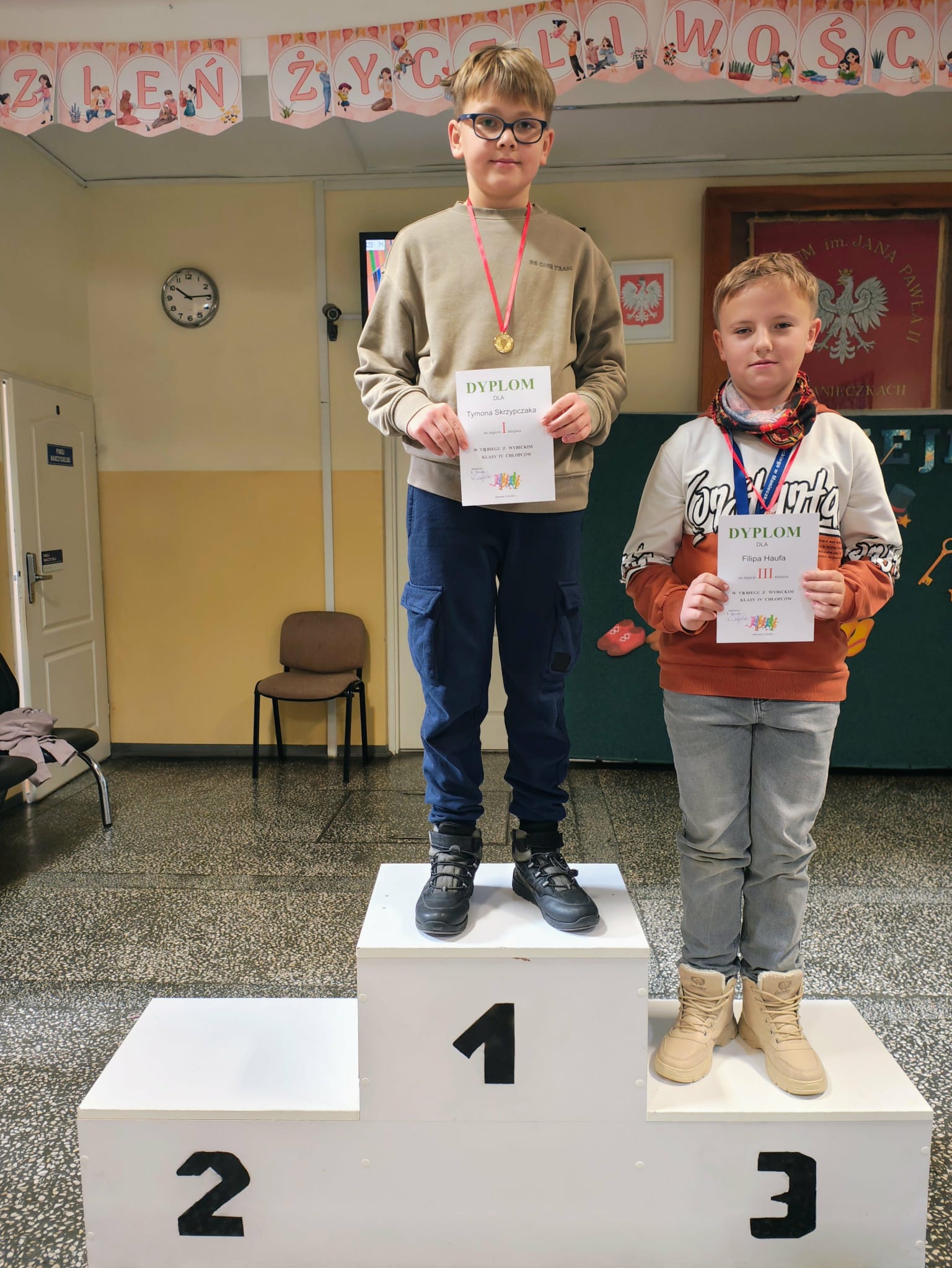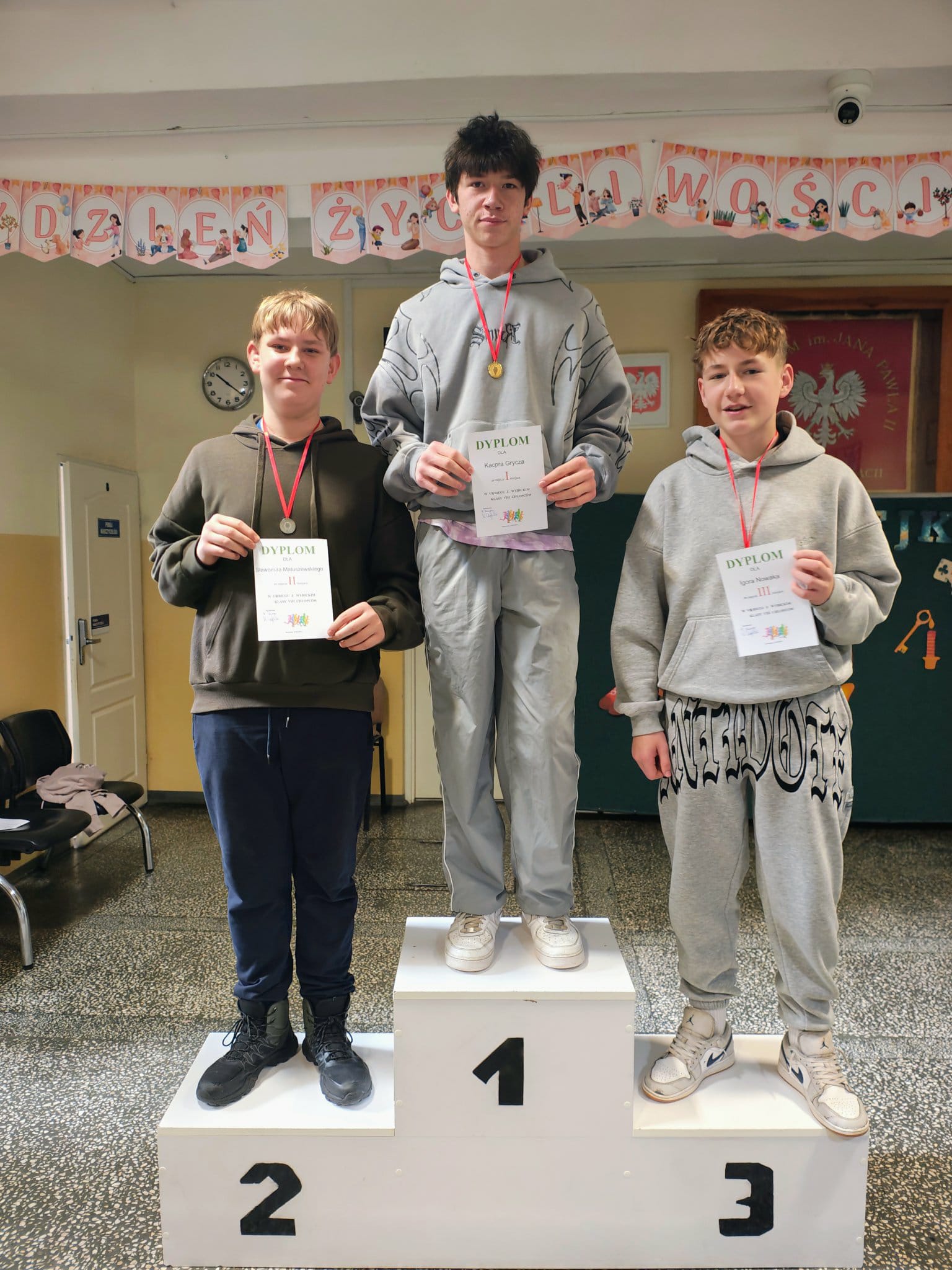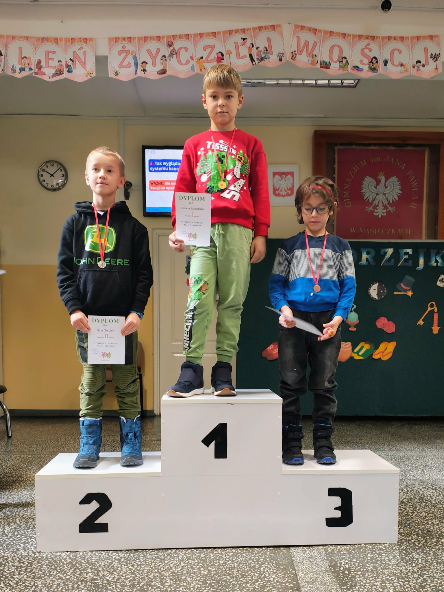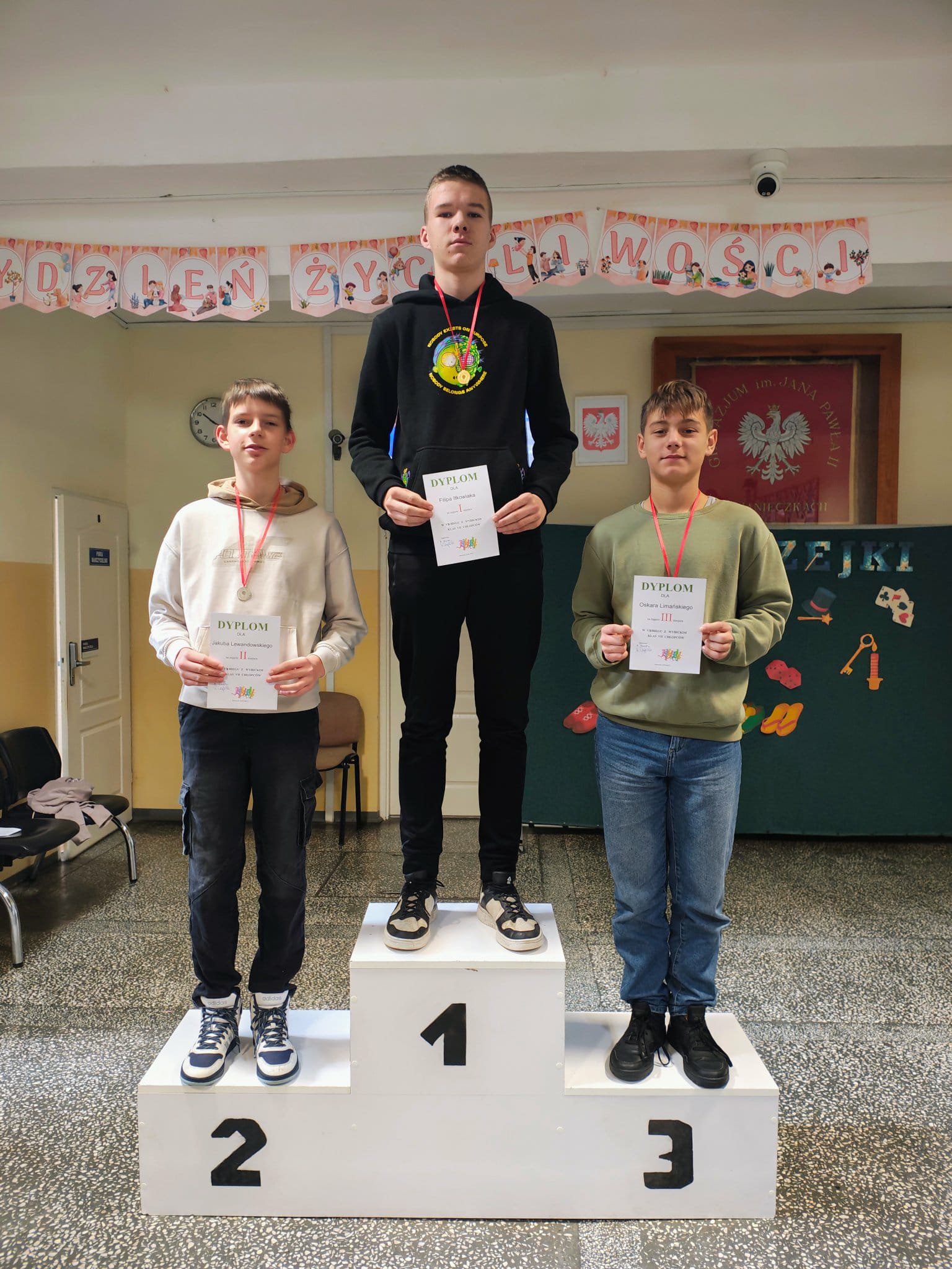W czwartek 27 listopada odbył się krótki apel, podczas którego wręczyliśmy nagrody i dyplomy za konkursy matematyczne, halloweenowe oraz medale za Bieg z Wybickim. Wszystkim nagrodzonym GRATULUJEMY!!!