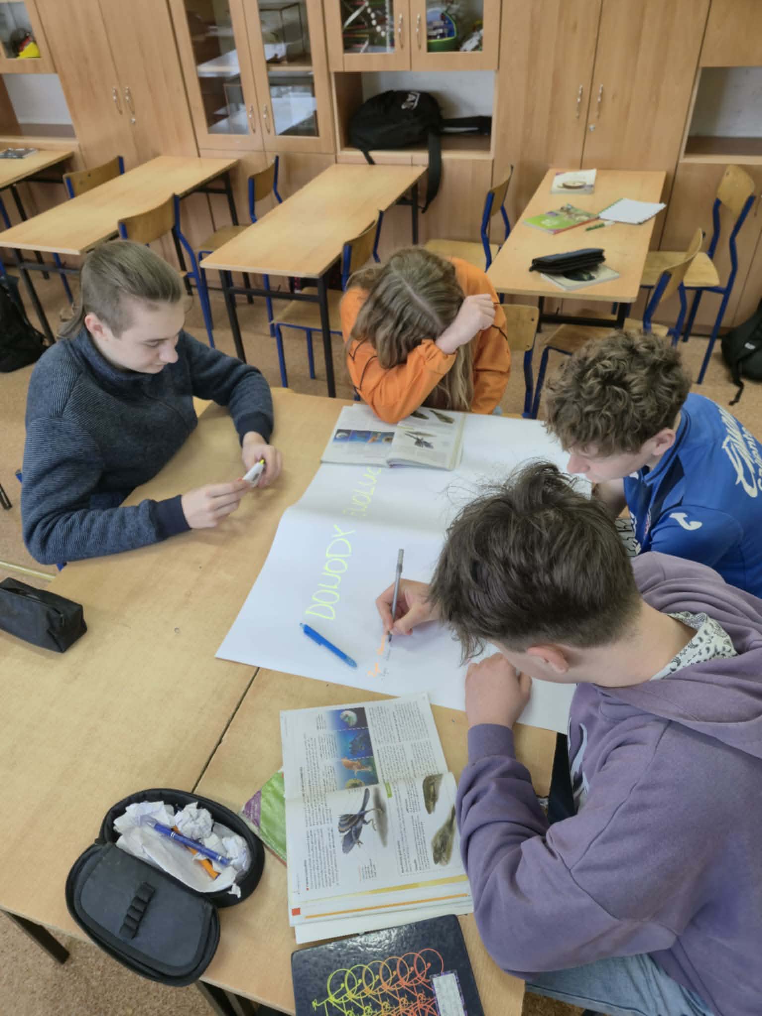 Powtórzenie wiadomości na lekcji biologii w klasie VIII "Ewolucja życia ". Uczniowie świetnie współpracowali ze sobą, stąd widoczne efekty.