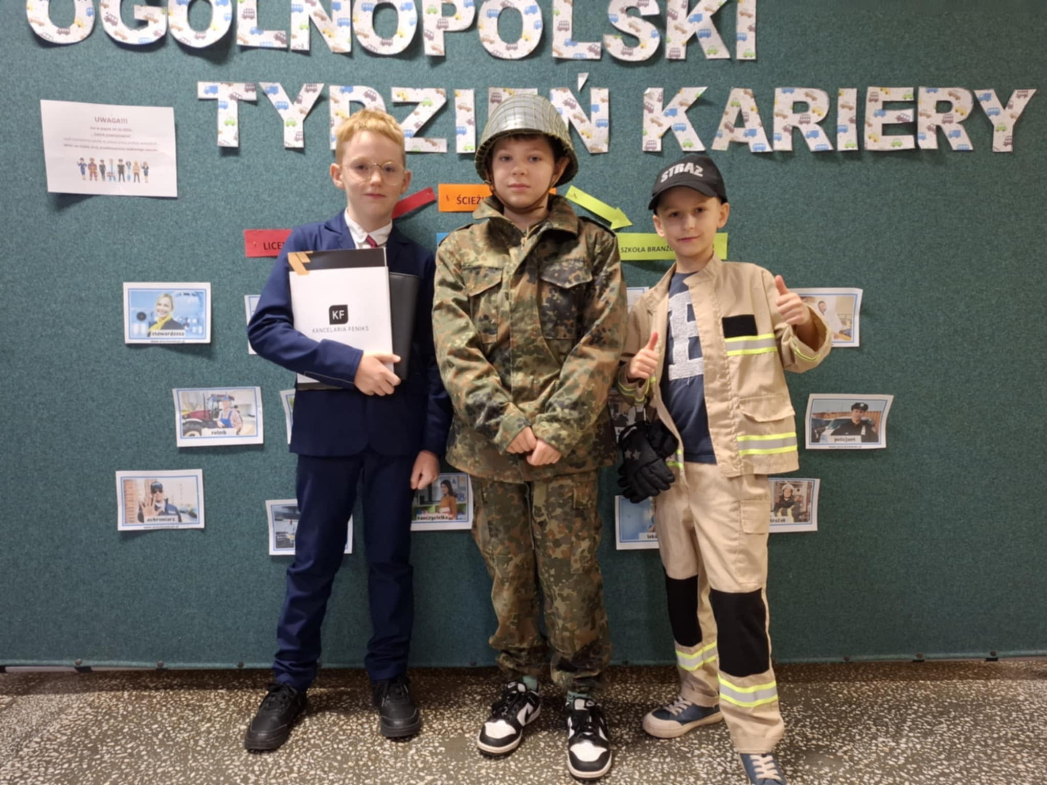 W dniach 20-26 października nasza szkoła włączyła się w inicjatywę Stowarzyszenia Doradców Szkolnych i Zawodowych RP tj Ogólnopolski Tydzień Kariery. W holu szkoły przygotowano gazetkę tematyczną. Uczniowie klas młodszych brali udział w konkursie plastycznym. Klasa 3 rysowala i opisywała te zawody, w których relacje są niezmiernie ważne.Odbyły się zajęcia tematyczne związane z poznawaniem różnych profesji oraz diagnozowaniem predyspozycji zawodowych. W ramach zajęć świetlicowych oraz w czasie przerwy, zainteresowani rozwiązywali zadania związane z przyszłą pracą. Nasza szkolna ekipa Tik-Toka nagrała filmik o marzeniach zawodowych naszych uczniów. Najstarsi tworzyli przepis na udanych wybór zawodowy skoncentrowany na sile relacji. Wszyscy chętni w Dniu Zawodowca przyszli w strojach charakterystycznych dla wybranych przez siebie zawodów.