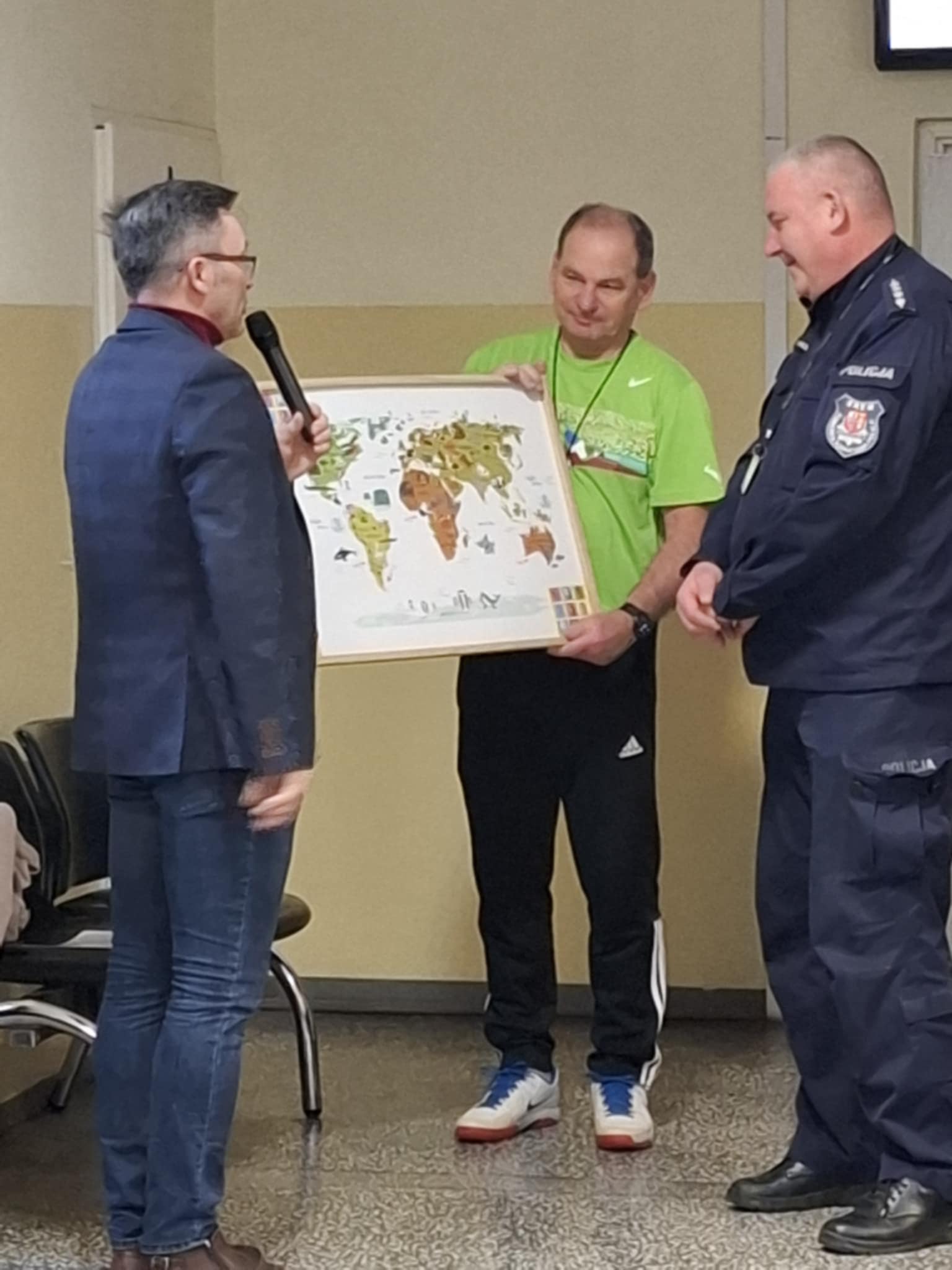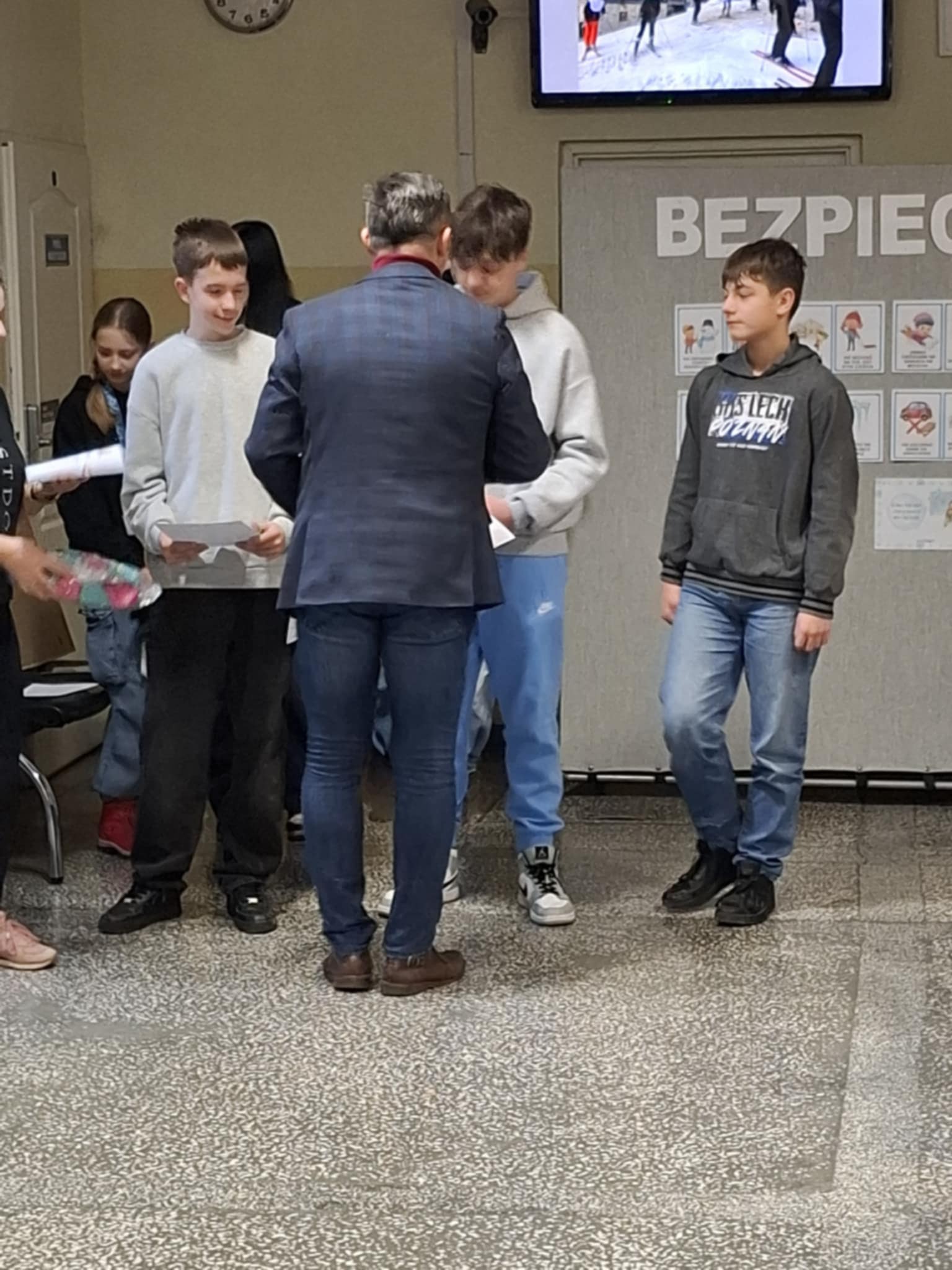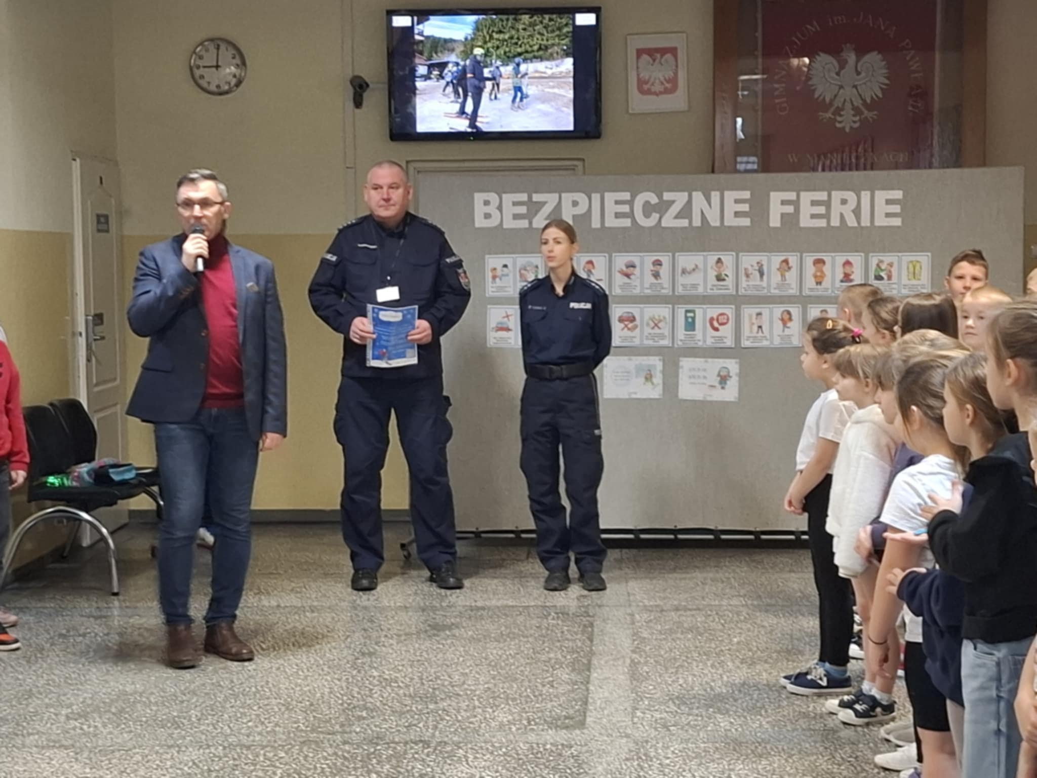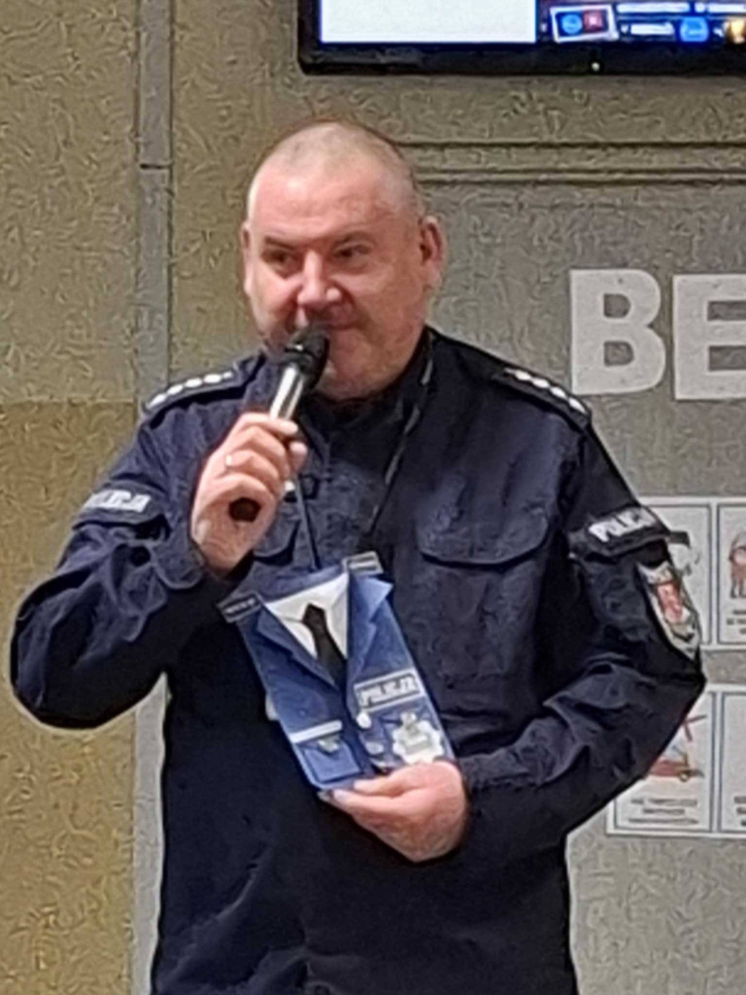 Pan Krzysztof, absolwent z Manieczek, pracował w Komendzie Powiatowej Policji w Śremie. Bardzo często odwiedzał naszą szkołę z różnymi pogadankami o charakterze prewencyjnym. Był tez podporą drużyny piłkarskiej w Turnieju o Puchar Komendanta KPP w Śremie. Mogliśmy liczyć nie tylko na Jego merytoryczne uwagi, ale też poczucie humoru czy dyscyplinę. Dziś podziękowaliśmy za wieloletnią współpracę, wręczyliśmy okolicznościowe laurki i wysłuchaliśmy...krótkiej prelekcji na temat bezpieczeństwa w czasie nadchodzących ferii. Panu Krzysztofowi towarzyszyła Pani Natalia Maćkowiak, która - taką mamy nadzieję - będzie teraz odwiedzać Manieczki z profilaktycznymi prelekcjami. A naszemu drogiemu Pyrkowi życzymy kreatywnej emerytury! I pięknie dziękujemy!