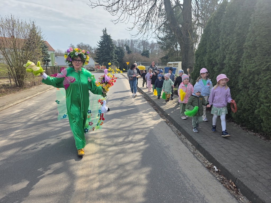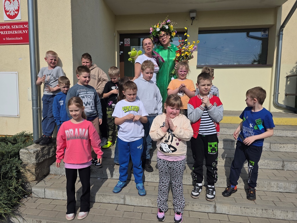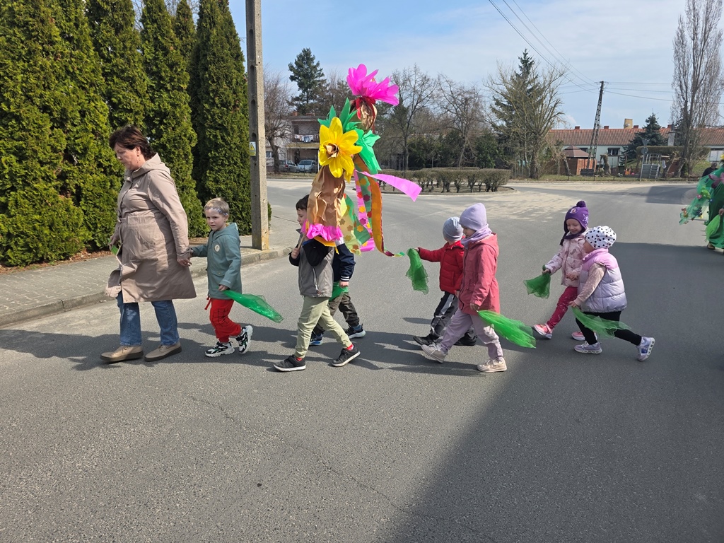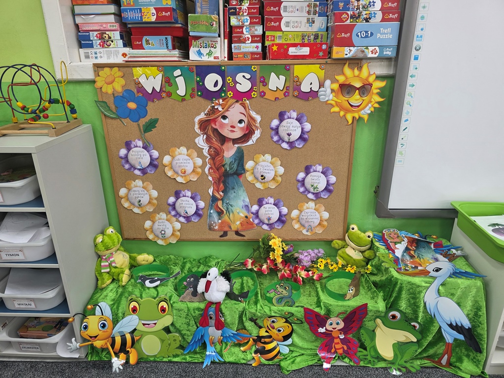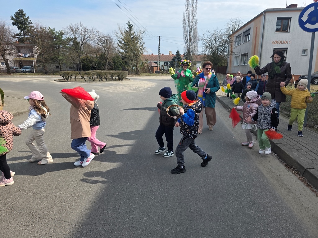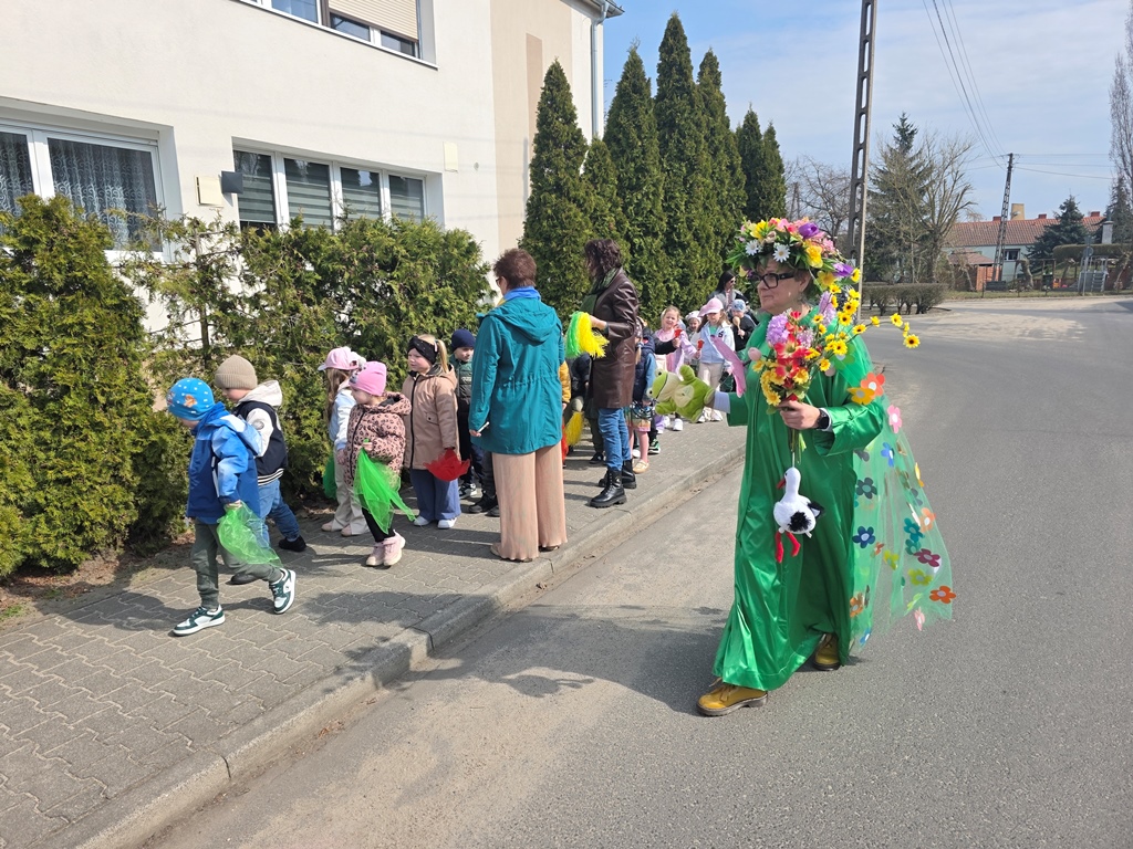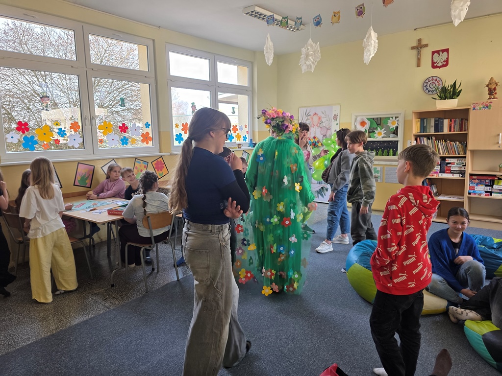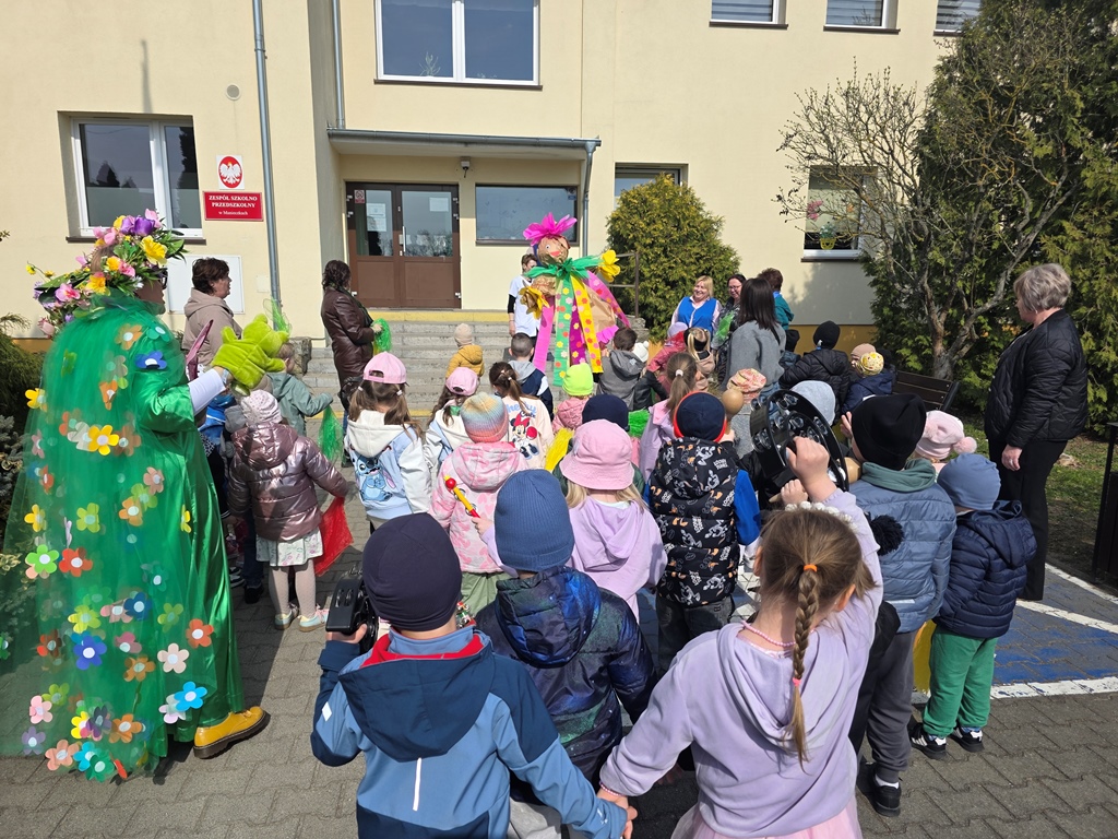 Odwiedziła nas Pani Wiosna, która zachwyciła wszystkich swoją piękną, zieloną, kwiecistą suknią oraz wiosennym uśmiechem Towarzyszyły jej Kwiatowe Wróżki, które wprowadziły dzieci w magiczny, wiosenny nastrój