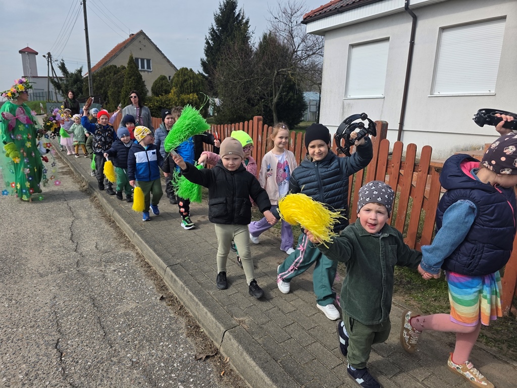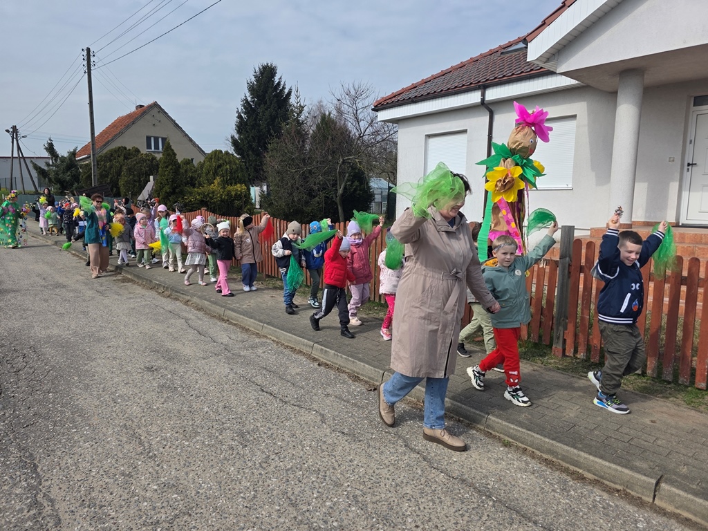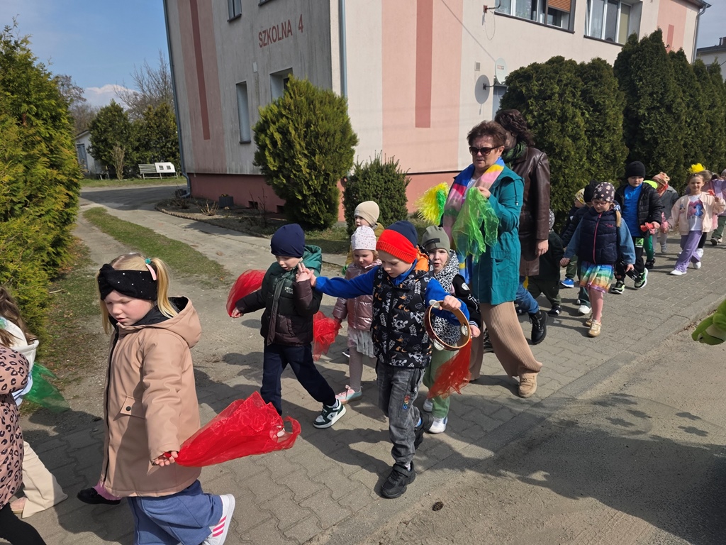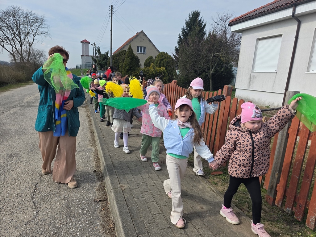 Na zakończenie wyruszyliśmy w radosny pochód po przedszkolu Dzieci z uśmiechem na twarzach śpiewały i skandowały: