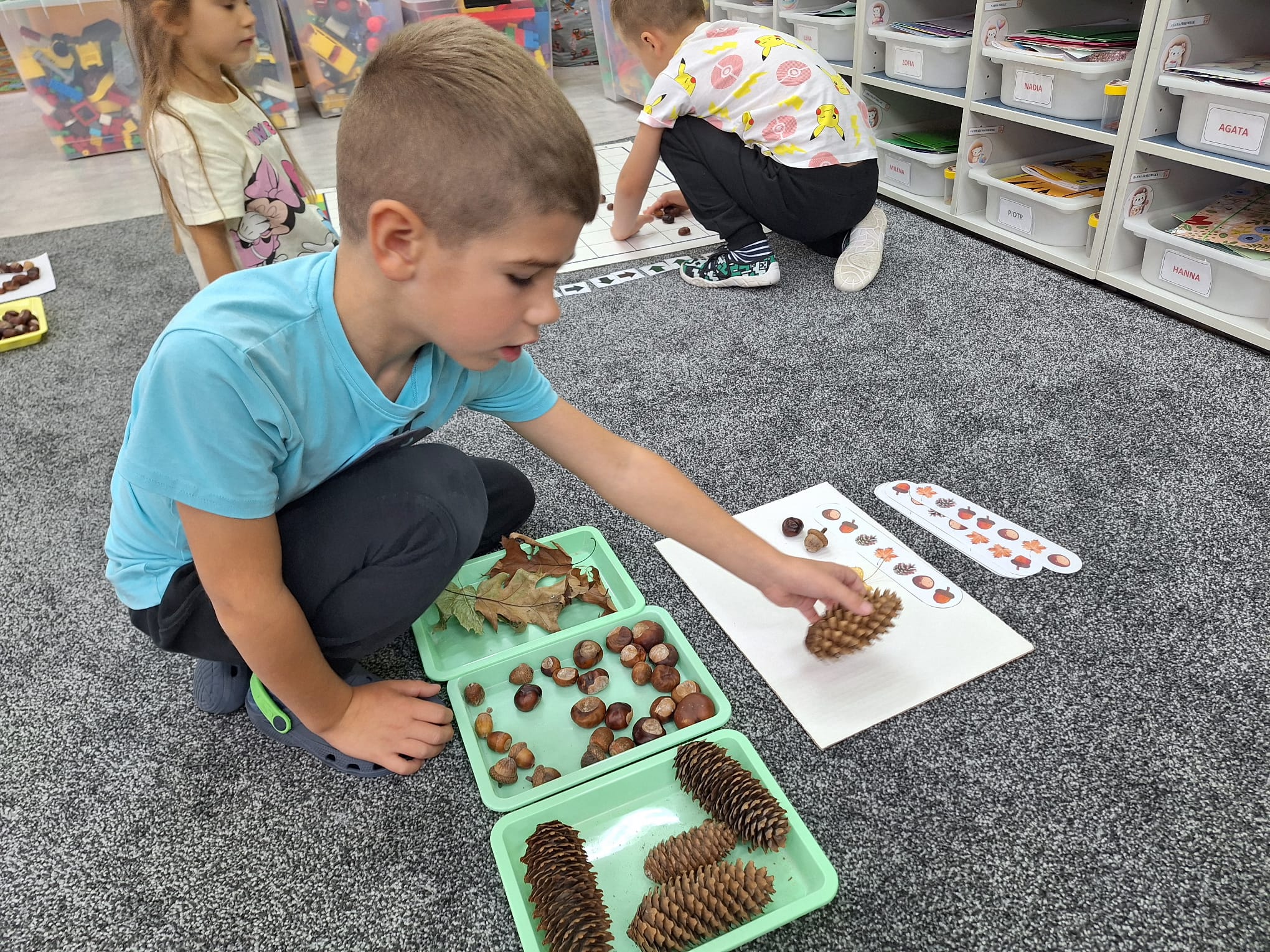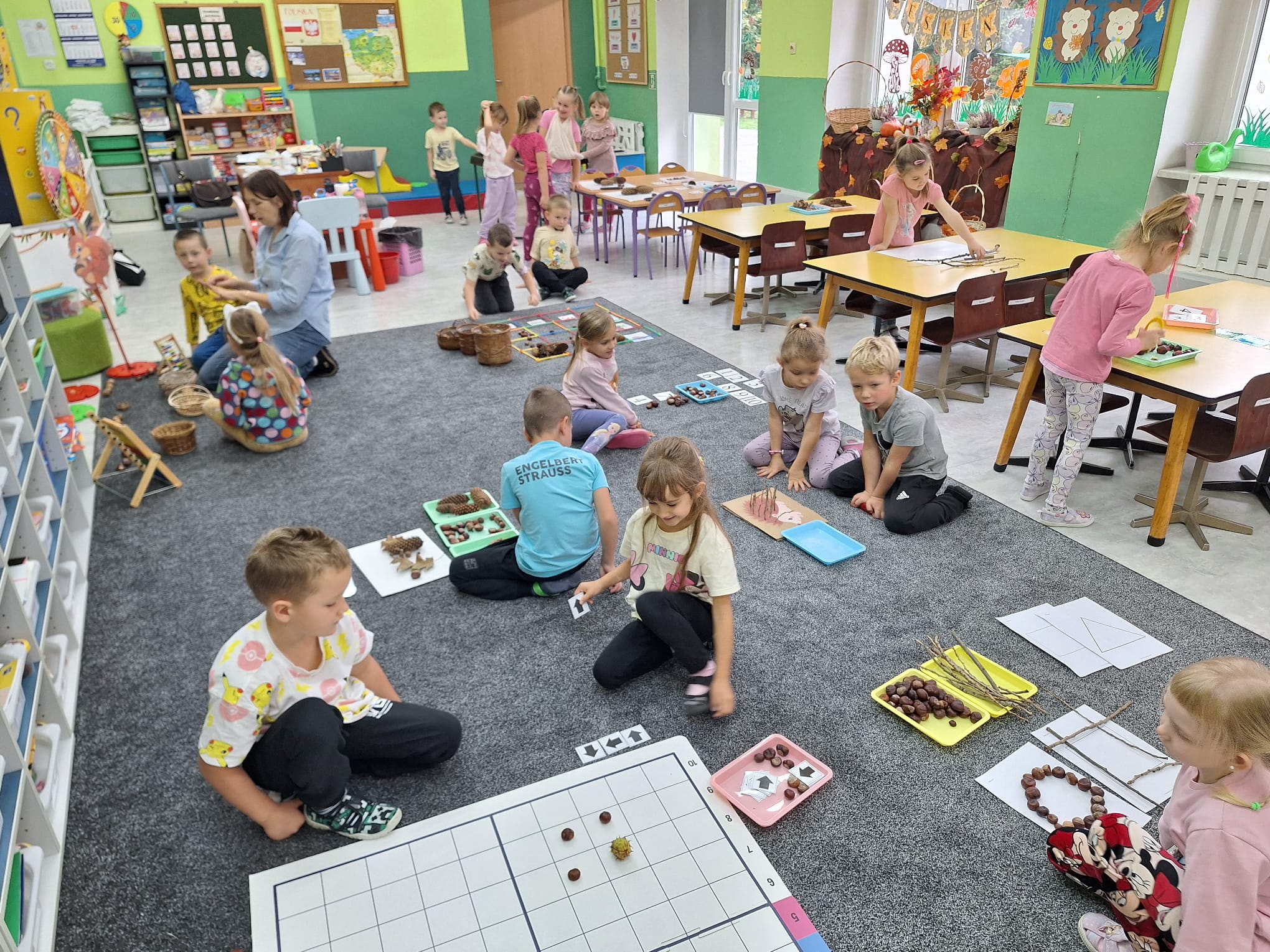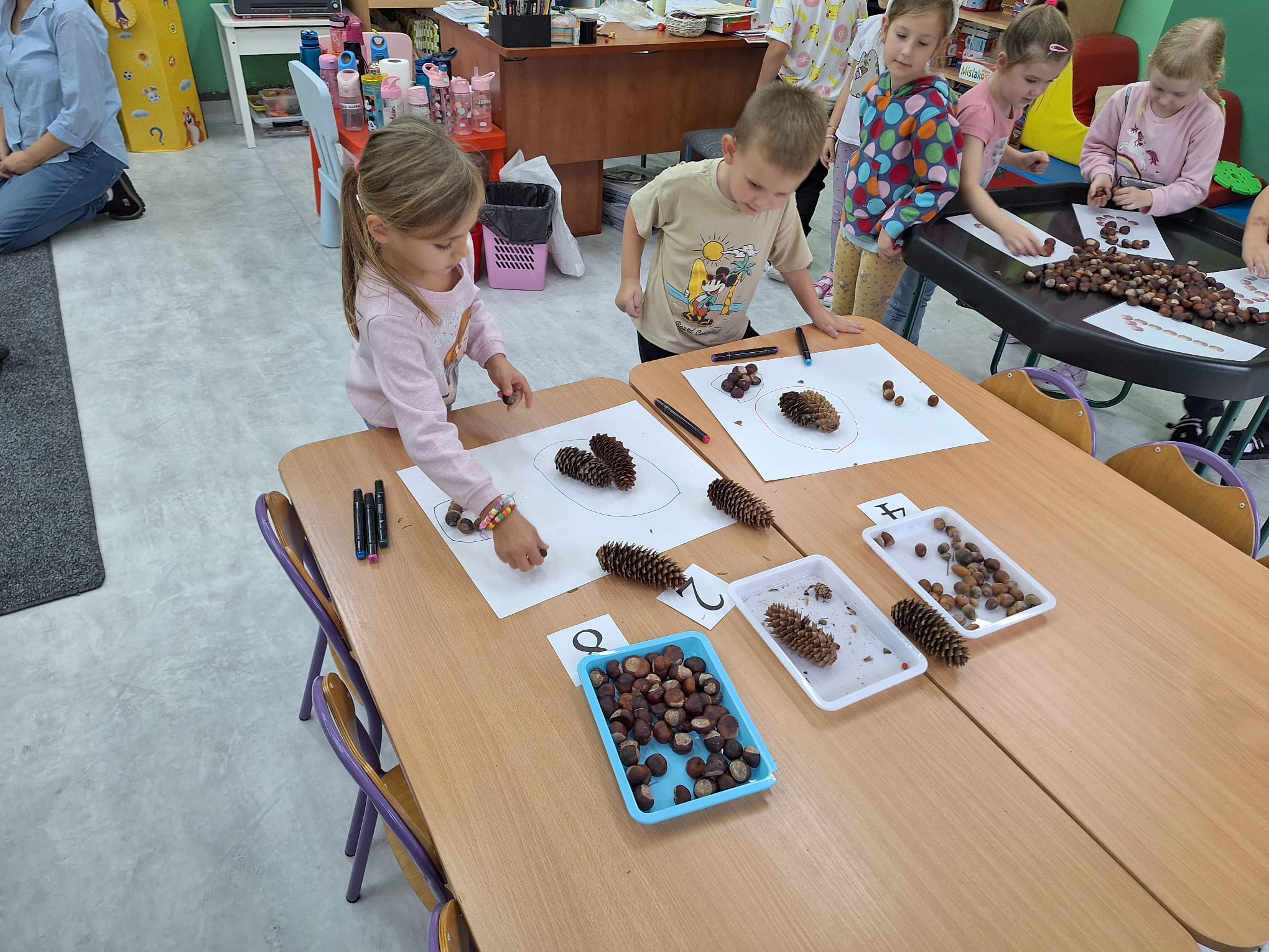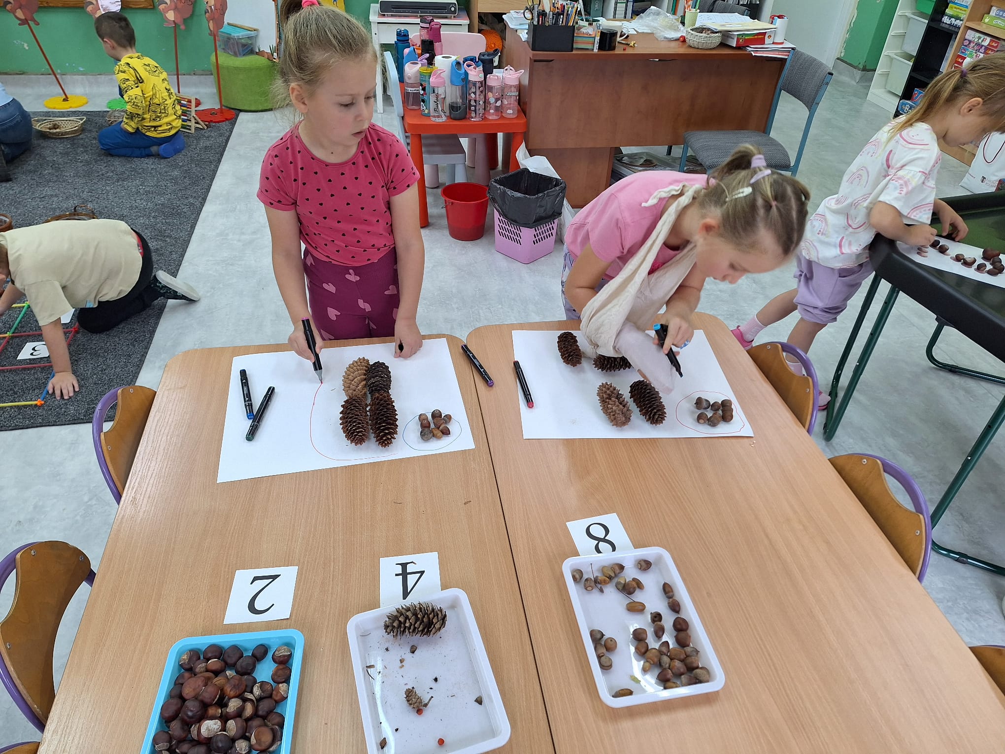 W piątek najstarsza grupa - Jeżyki wzięła udział w projekcie edukacyjnym "Matematyka w darach natury ukryta", którego założeniem jest rozwijanie dziecięcego myślenia matematycznego poprzez bezpośredni kontakt z naturą. Jest to matematyka, którą dziecko może zobaczyć, dotknąć, ułożyć i przeżyć wszystkimi zmysłami.