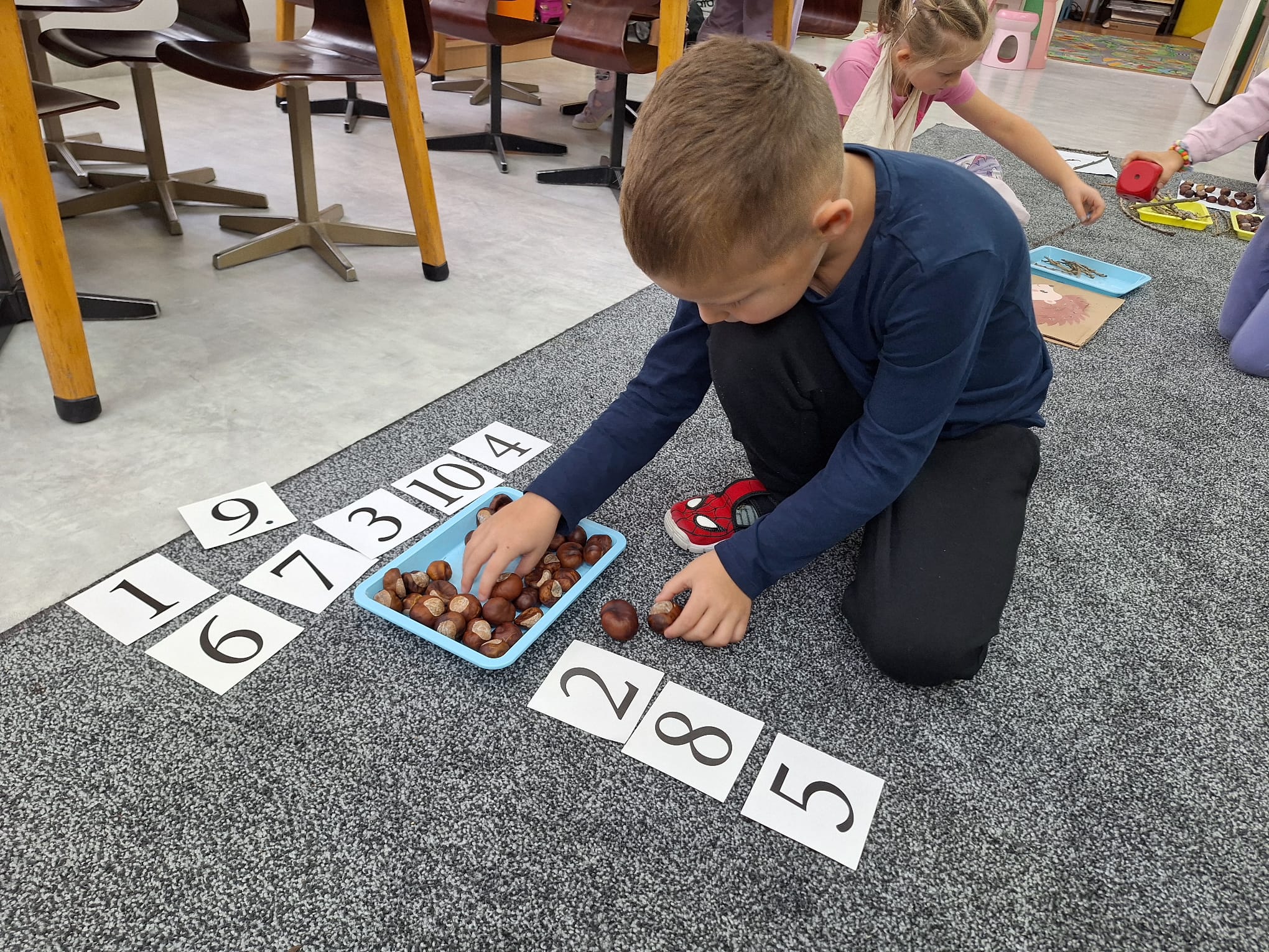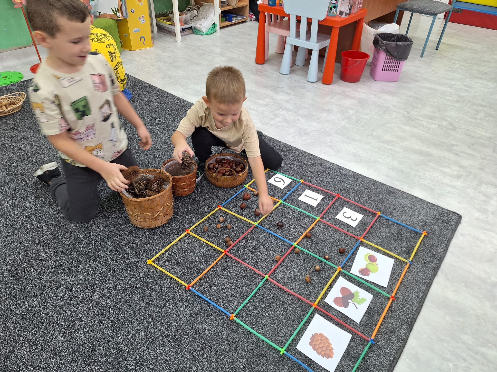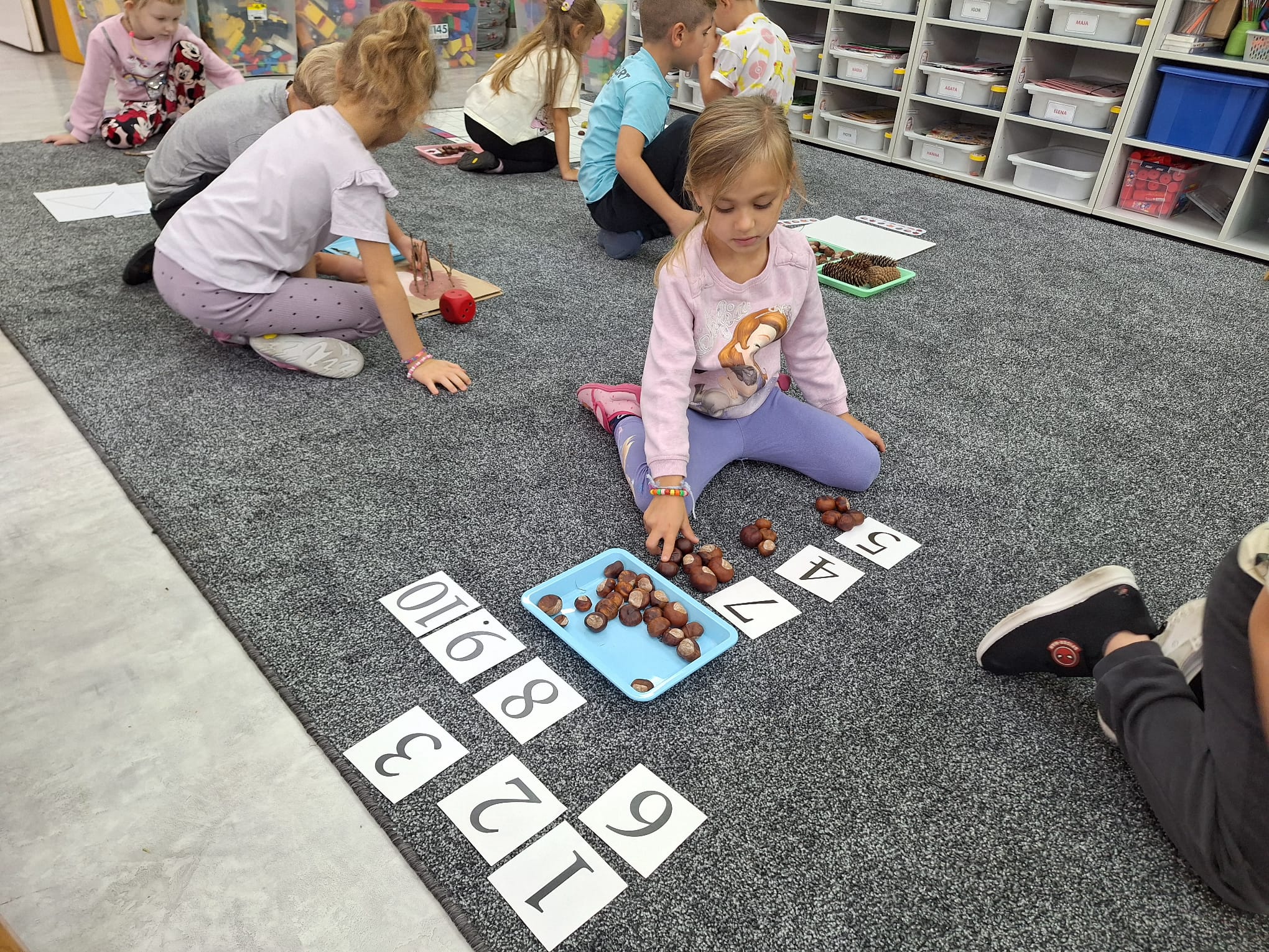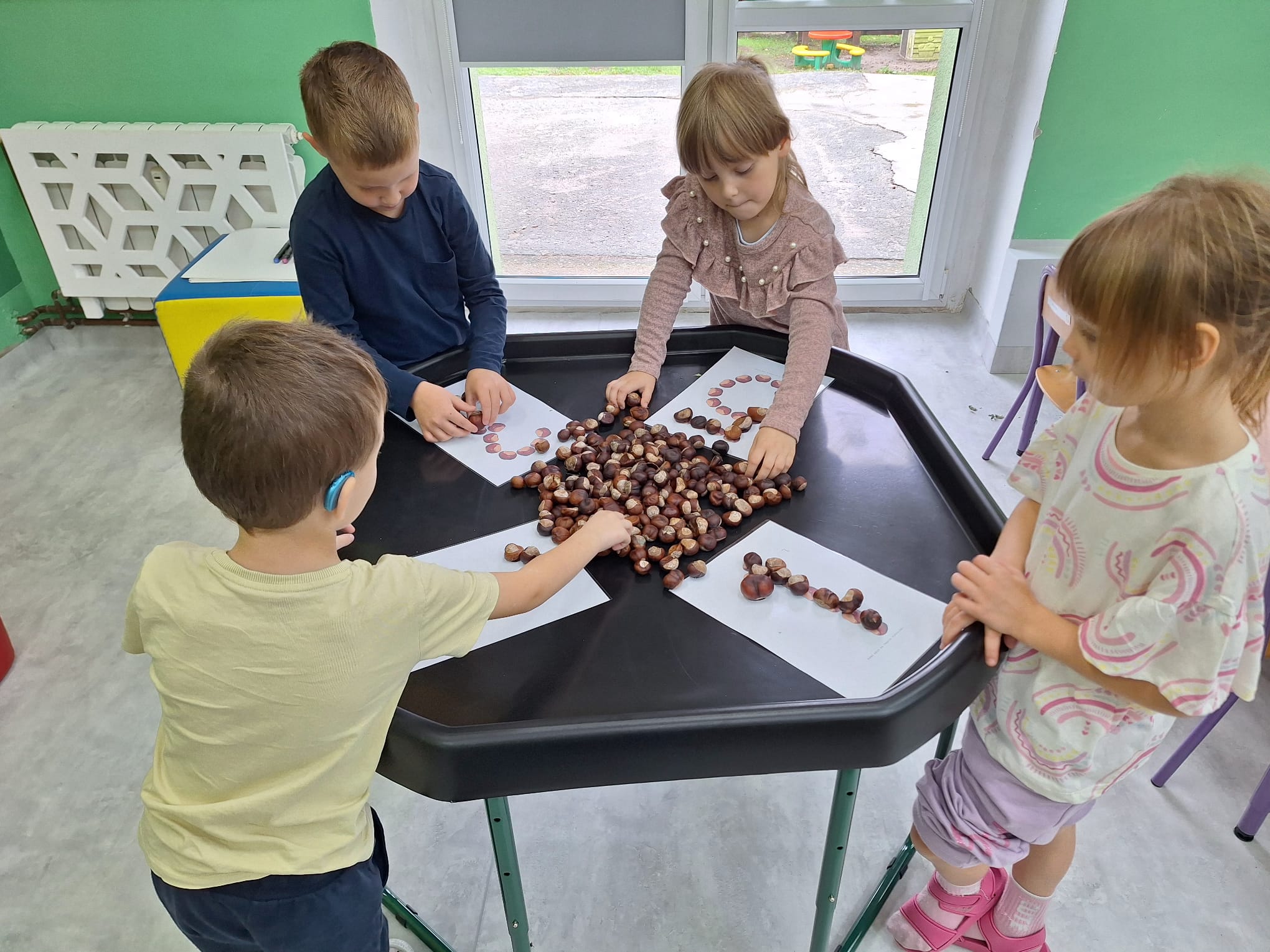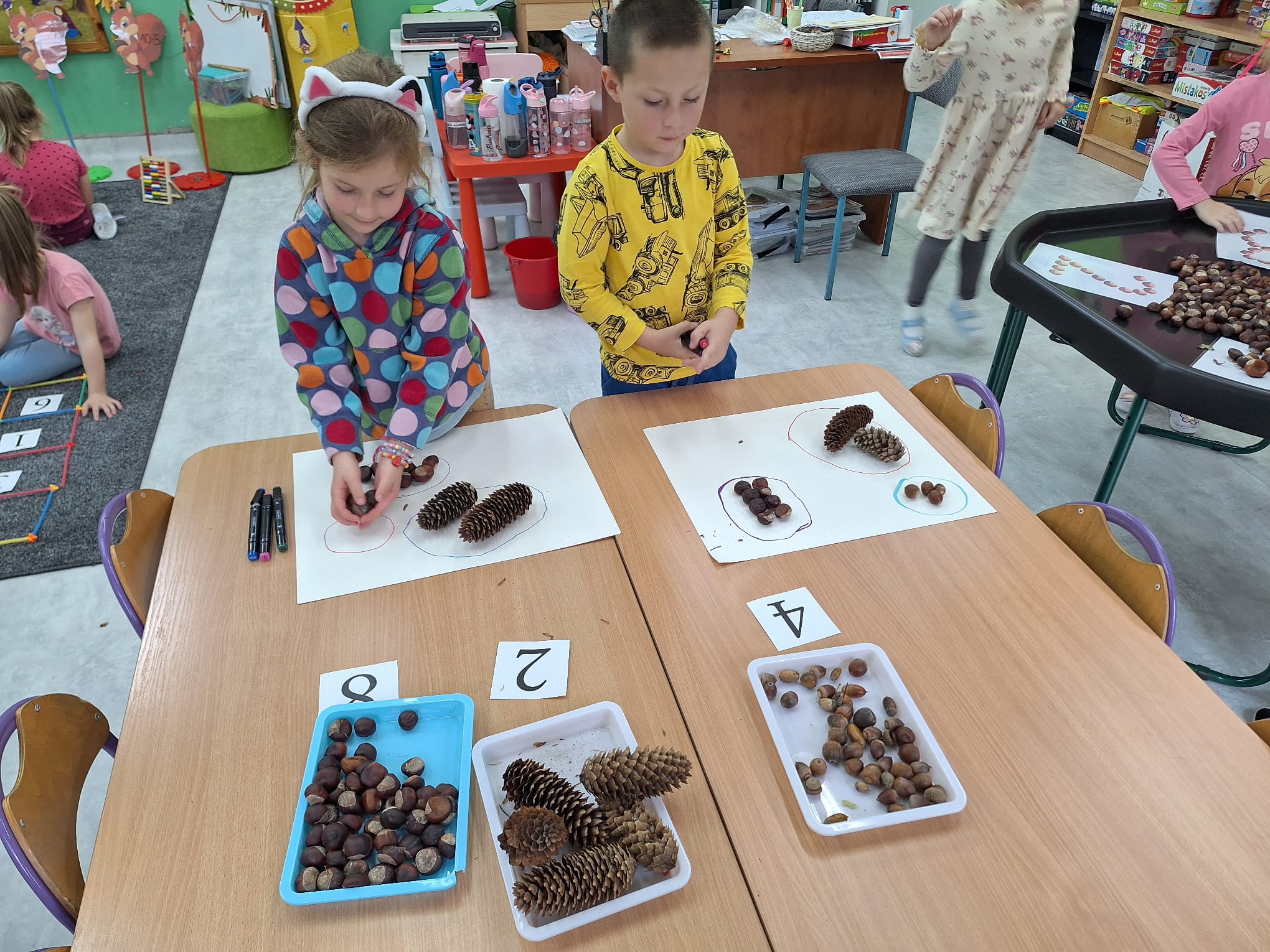 W piątek najstarsza grupa - Jeżyki wzięła udział w projekcie edukacyjnym "Matematyka w darach natury ukryta", którego założeniem jest rozwijanie dziecięcego myślenia matematycznego poprzez bezpośredni kontakt z naturą. Jest to matematyka, którą dziecko może zobaczyć, dotknąć, ułożyć i przeżyć wszystkimi zmysłami.