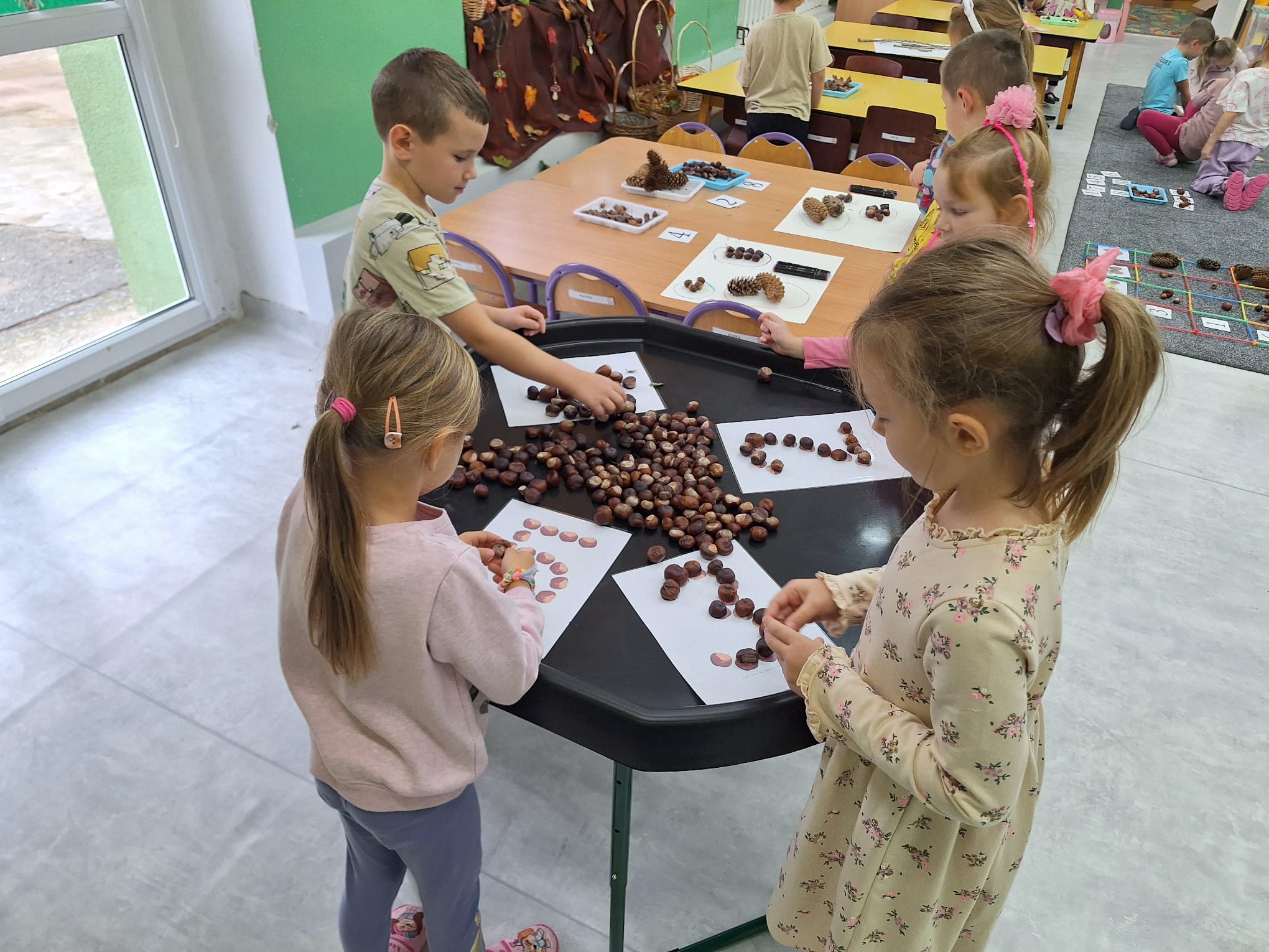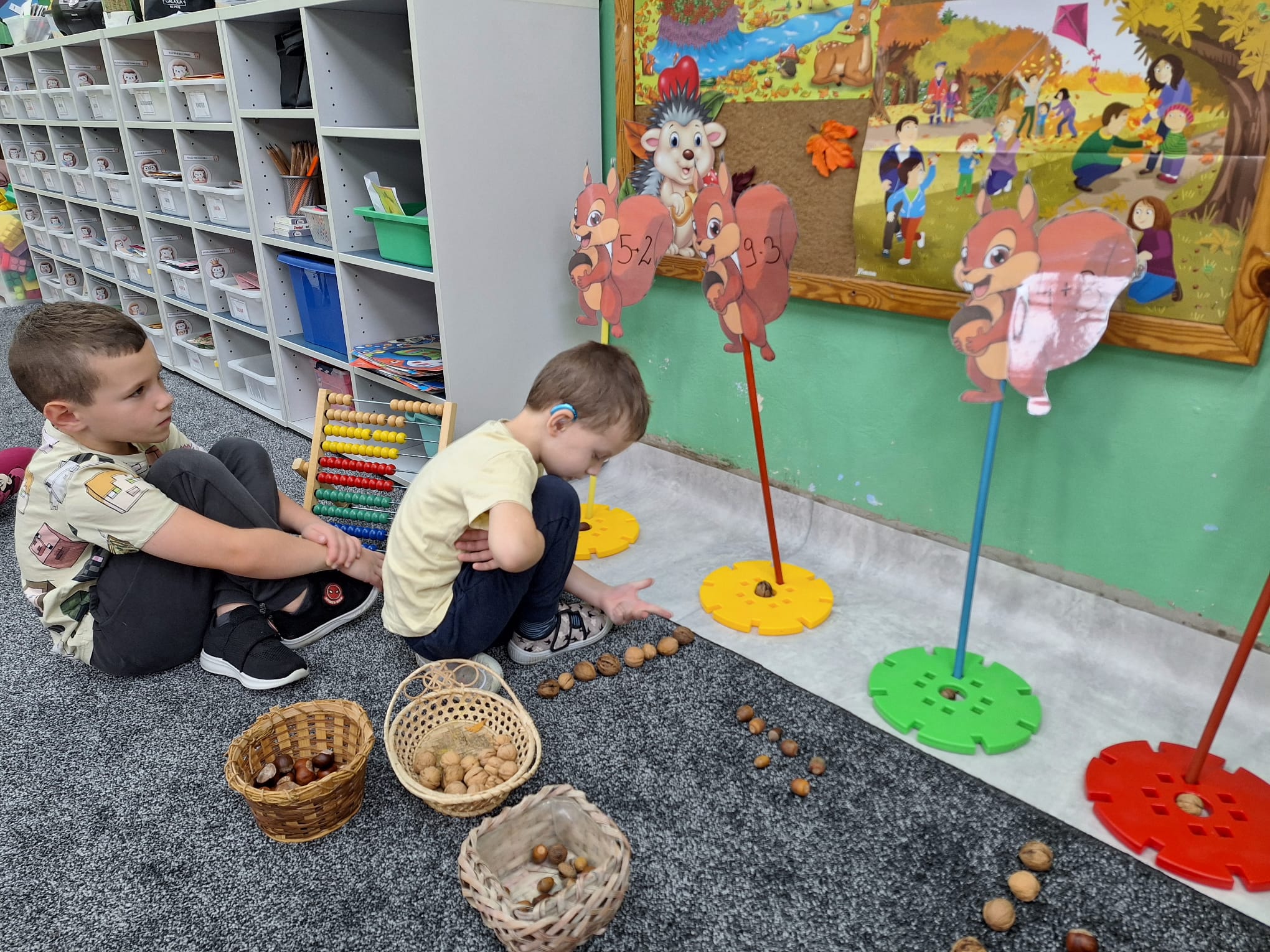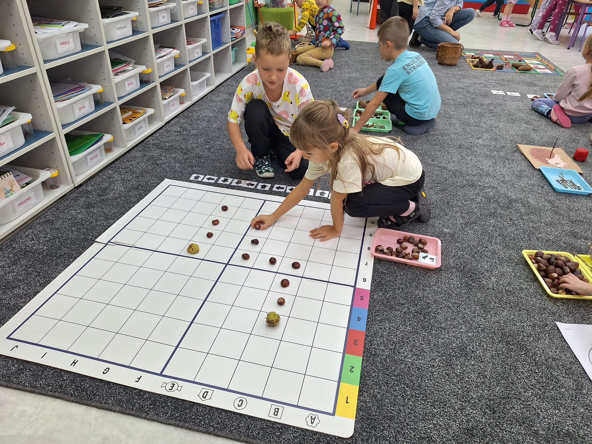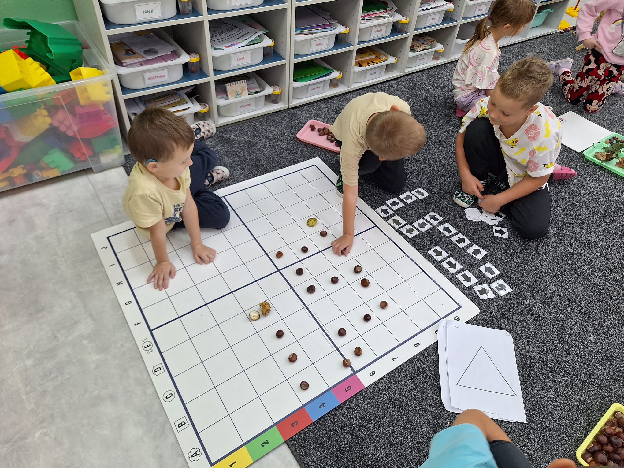 W piątek najstarsza grupa - Jeżyki wzięła udział w projekcie edukacyjnym "Matematyka w darach natury ukryta", którego założeniem jest rozwijanie dziecięcego myślenia matematycznego poprzez bezpośredni kontakt z naturą. Jest to matematyka, którą dziecko może zobaczyć, dotknąć, ułożyć i przeżyć wszystkimi zmysłami.