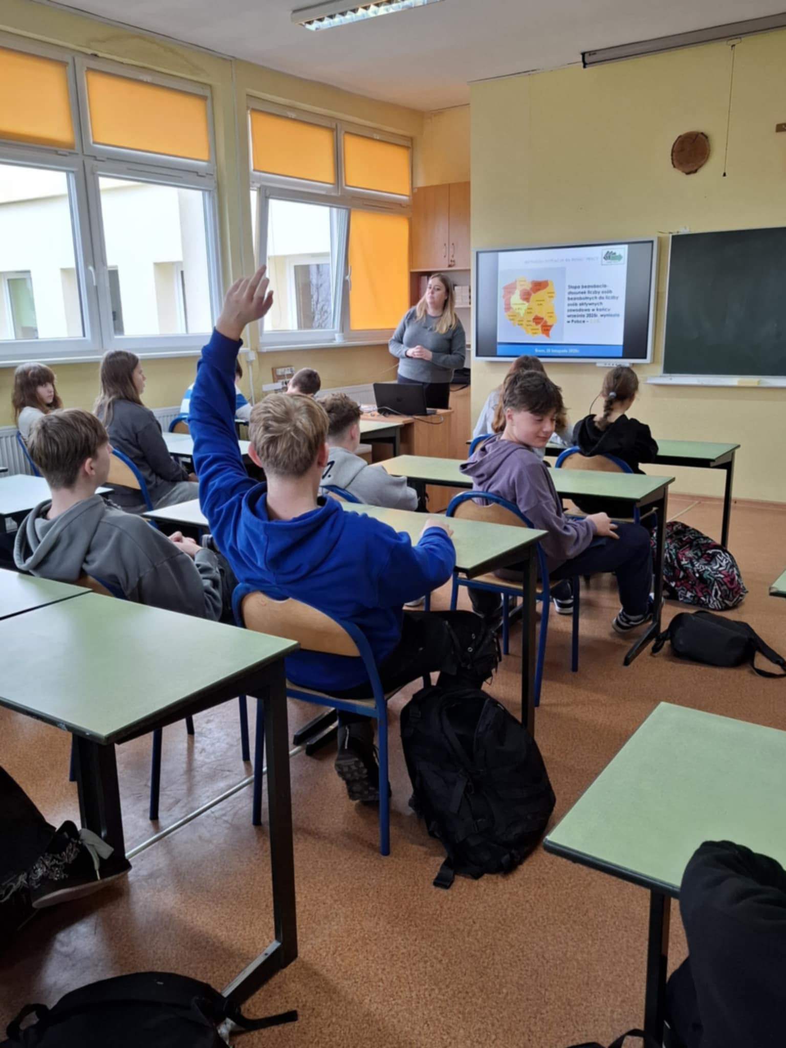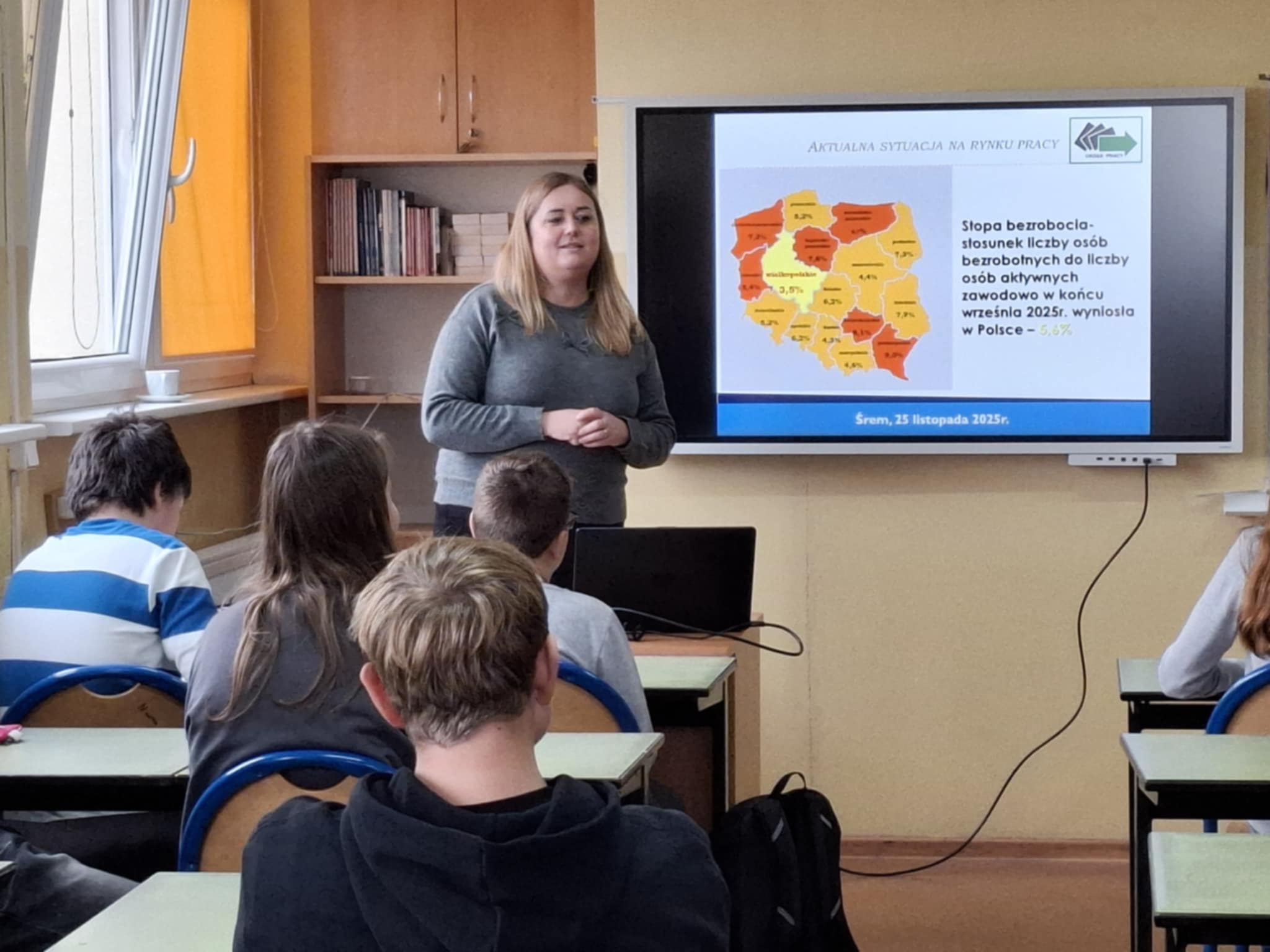 We wtorek 25.11.2025r. odbyło się spotkanie uczniów klas 7 i 8 z panią Karoliną Ronke z Powiatowego Urzędu Pracy w Śremie. Wsparcie młodzeży na etapie szkoły podstawowej w wyborze właściwej ścieżki zawodowej i podjęciu jak najlepszych decyzji dotyczących wyboru szkoły i przyszłego zawodu jest bardzo ważne. Spotkanie z doradcą zawodowym miało na celu wyposażenie uczniów w wiedzę na temat sytuacji na lokalnym rynku pracy oraz przedstawienie informacji na temat zawodów deficytowych i nadwyżkowych.
