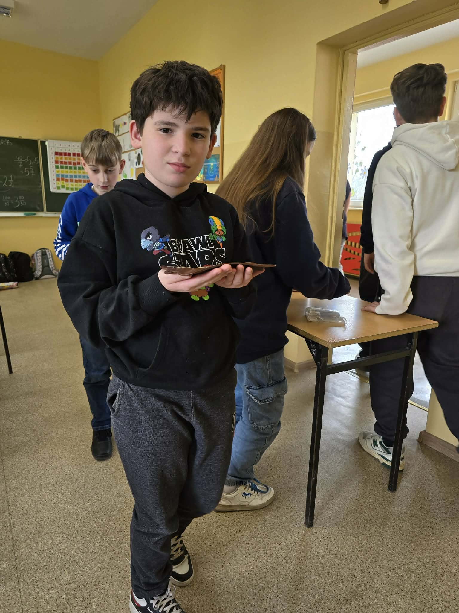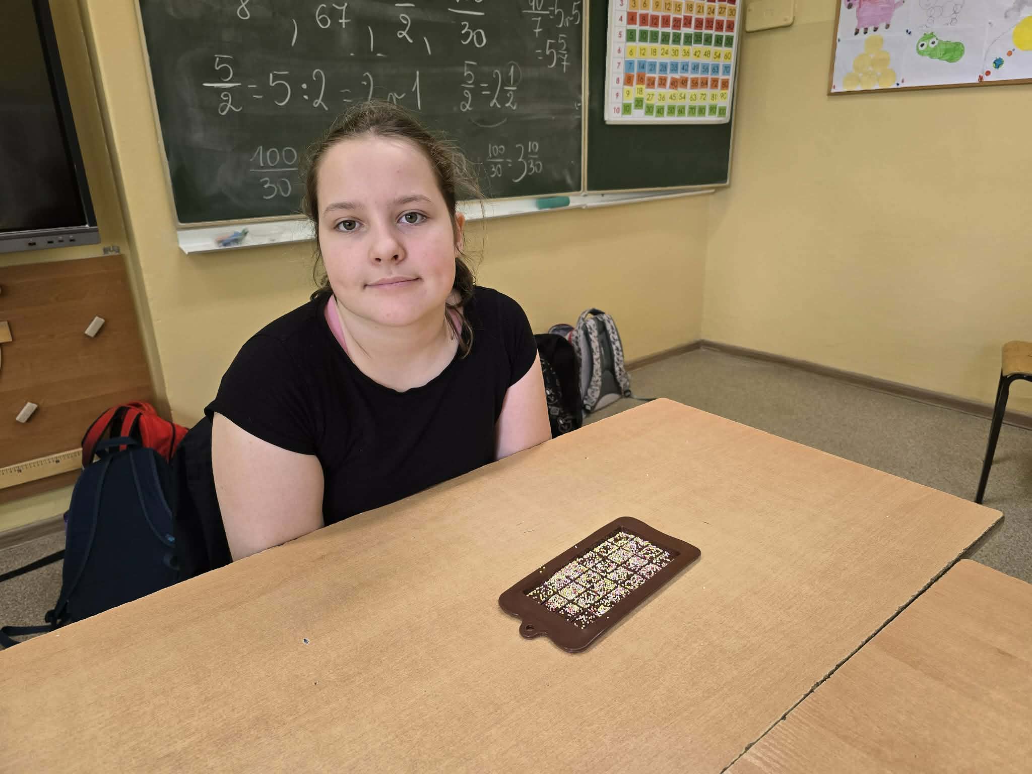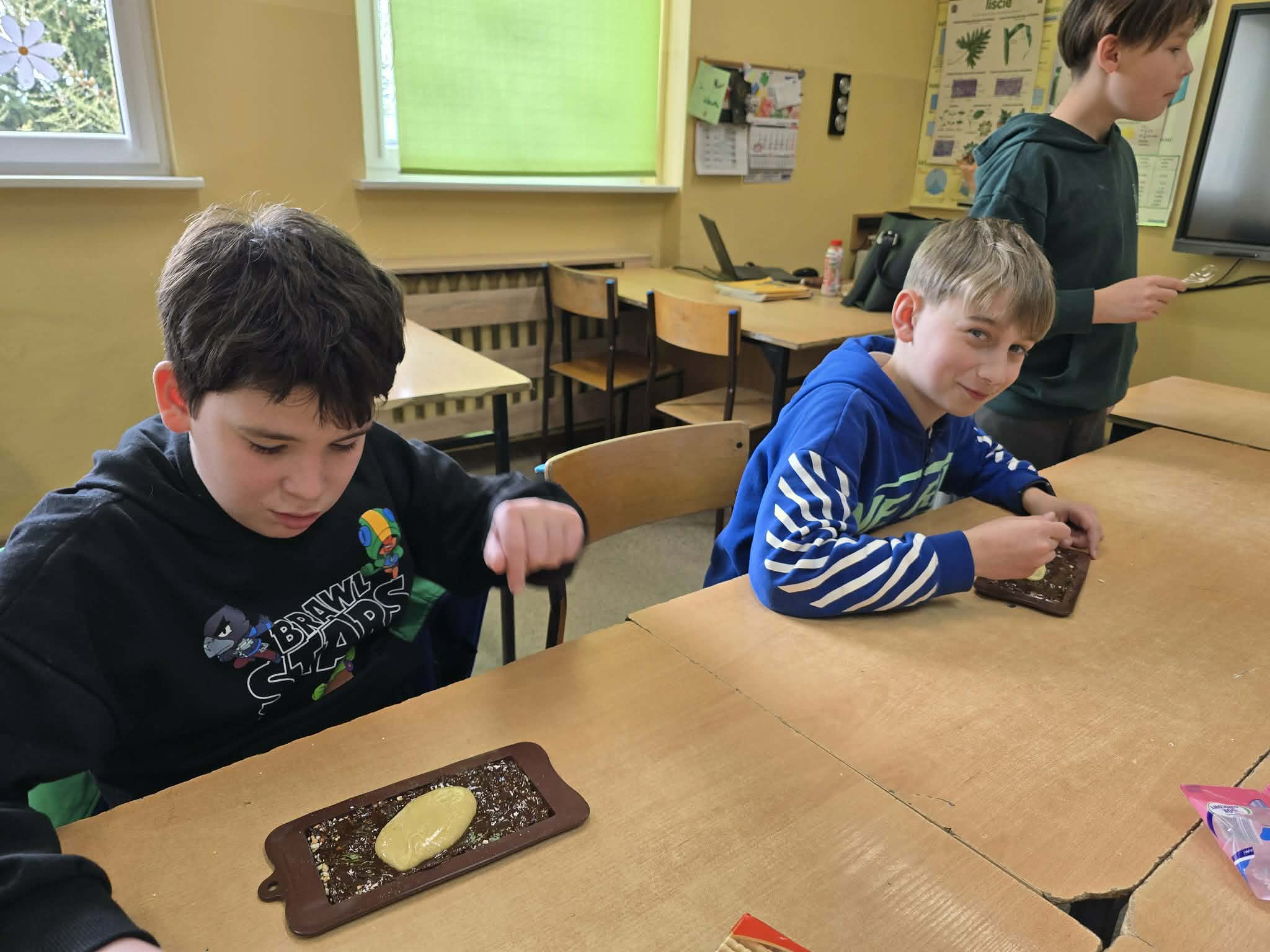 Efektem ich pracy były pięknie udekorowane tabliczki czekolady oraz pyszne, chrupiące gofry. Uczniowie z dużym zaangażowaniem podchodzili do każdego etapu przygotowań, wykazując się kreatywnością i współpracą.