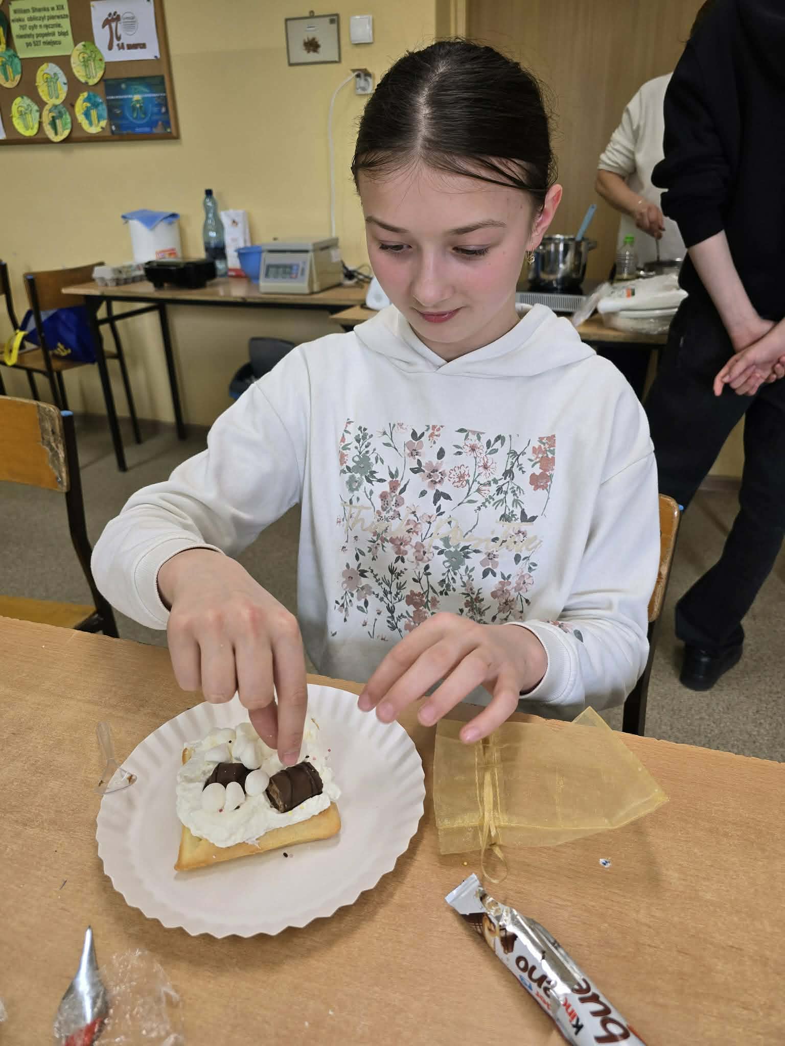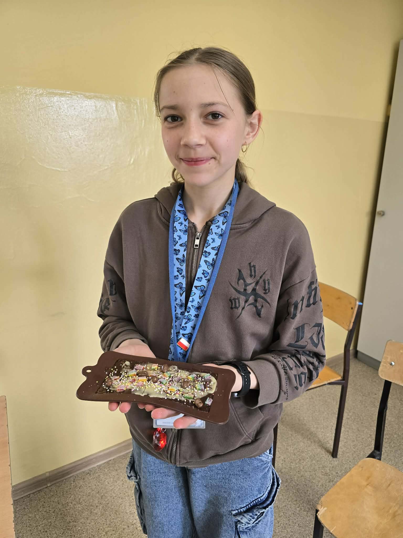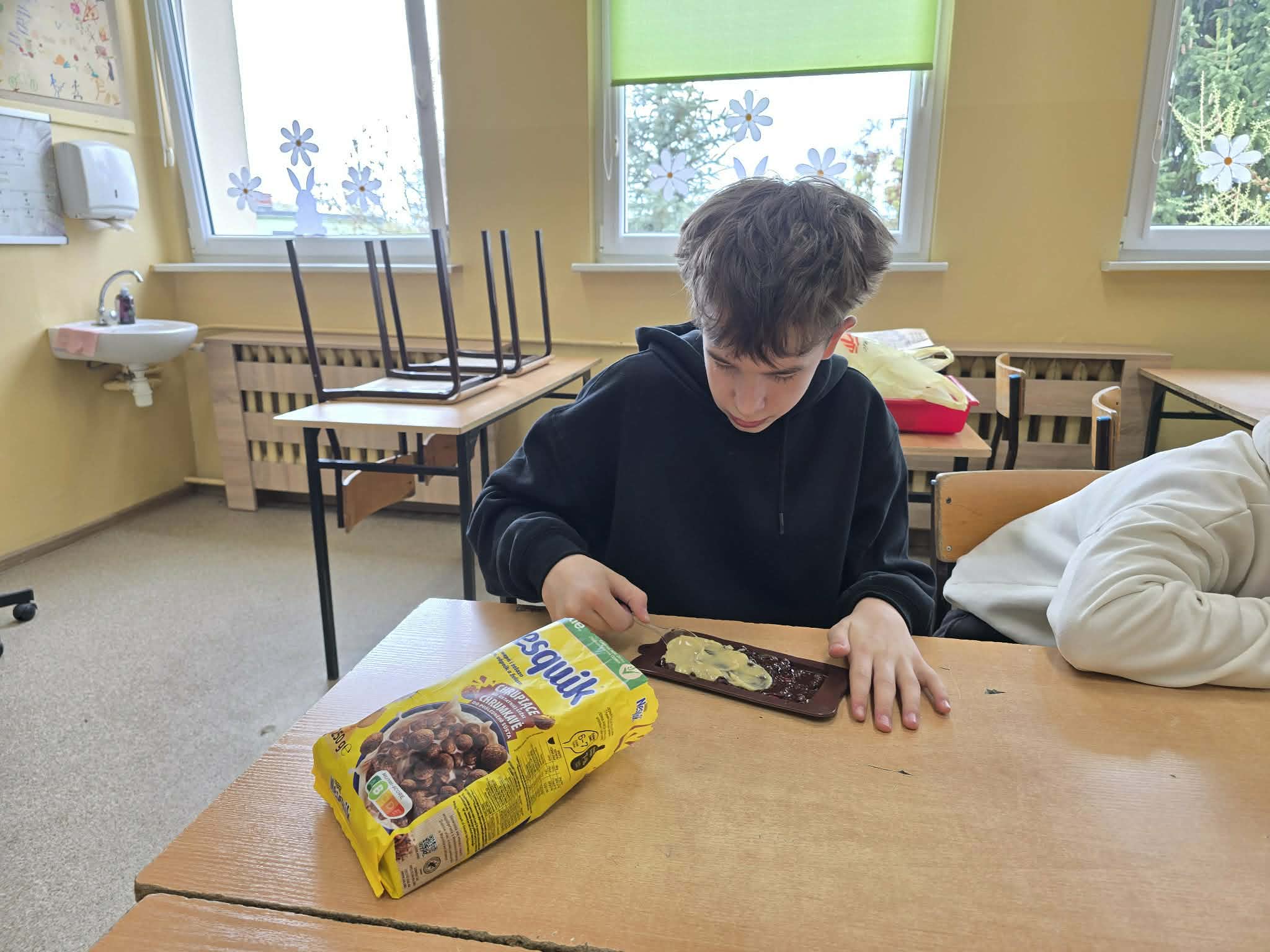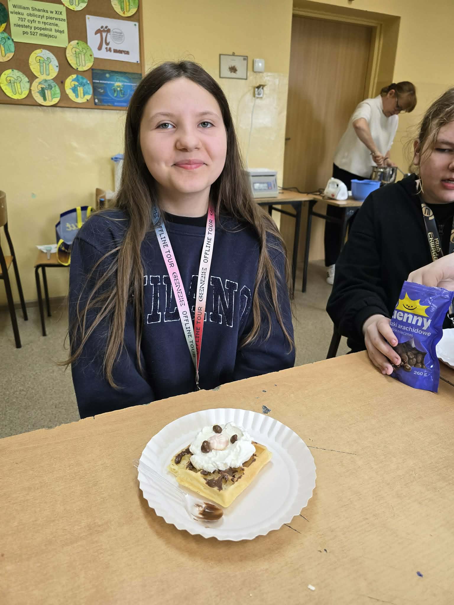 Efektem ich pracy były pięknie udekorowane tabliczki czekolady oraz pyszne, chrupiące gofry. Uczniowie z dużym zaangażowaniem podchodzili do każdego etapu przygotowań, wykazując się kreatywnością i współpracą.