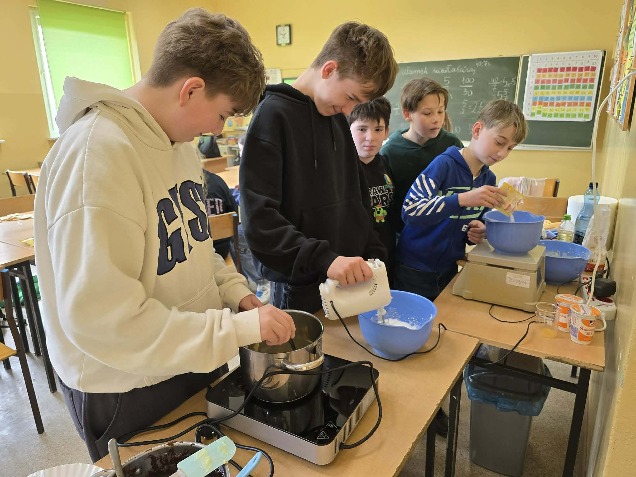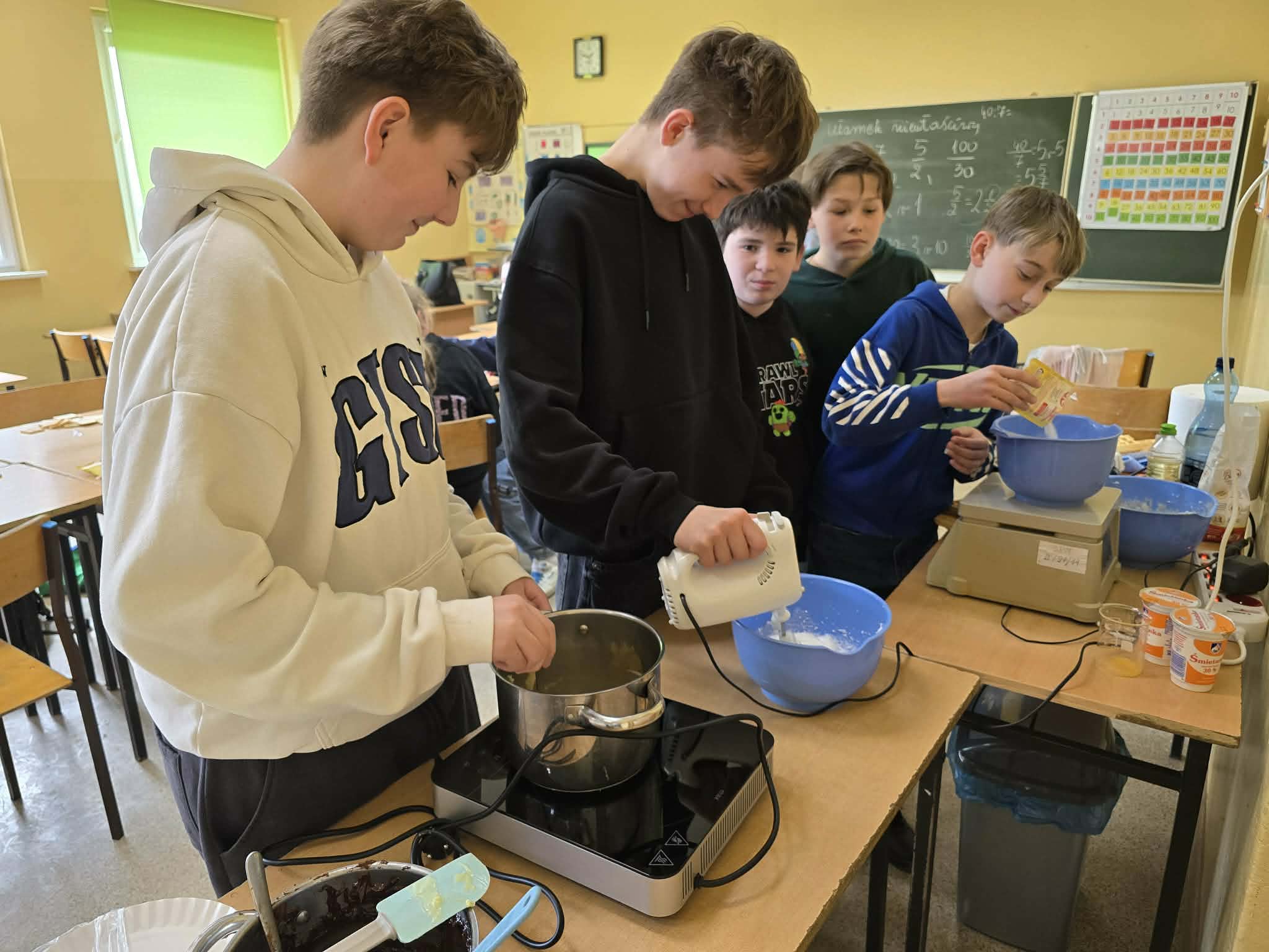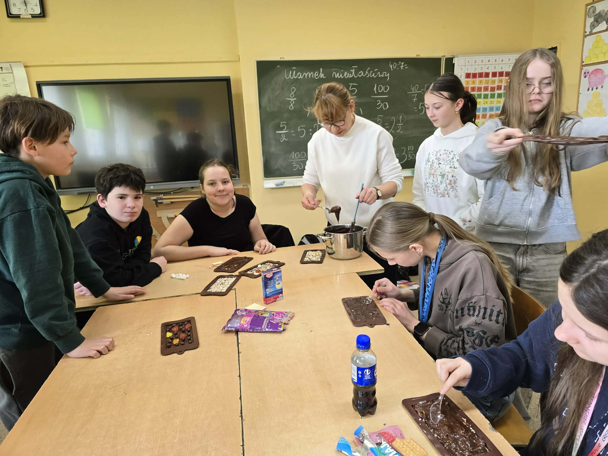 Uczniowie klasy VI wzięli udział w kolejnych zajęciach Klubu Młodego Odkrywcy, które tym razem miały wyjątkowo słodki charakter. Podczas spotkania szóstoklasiści eksperymentowali z różnymi składnikami, tworząc własne, niepowtarzalne smakołyki.