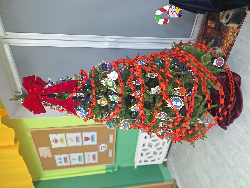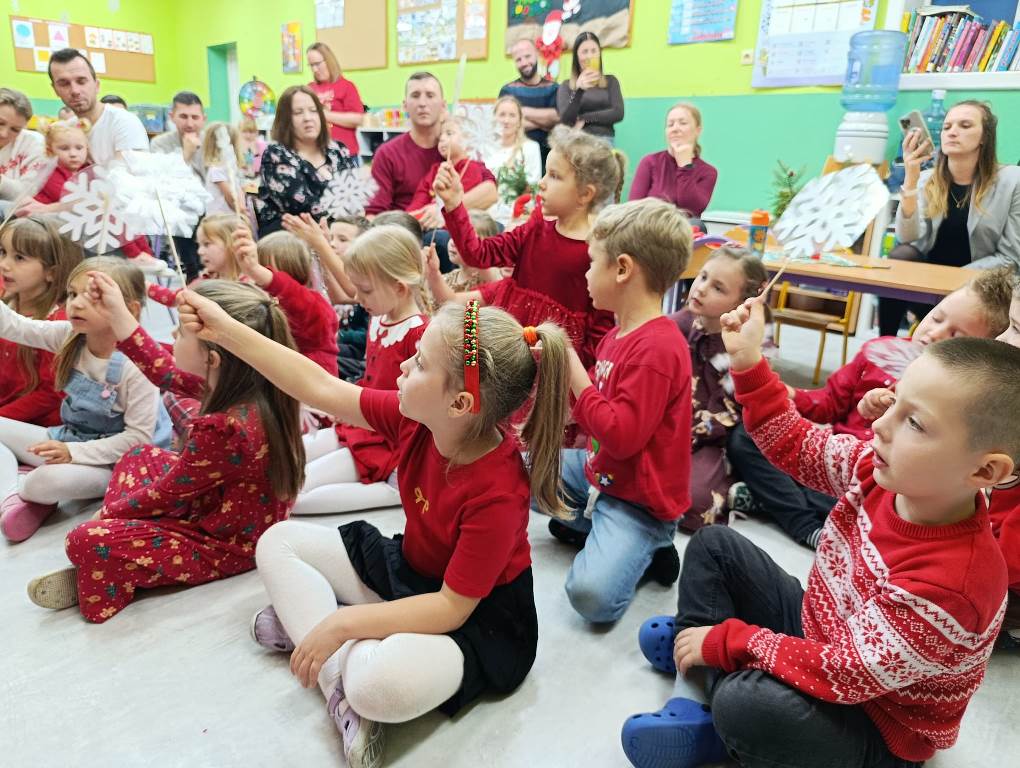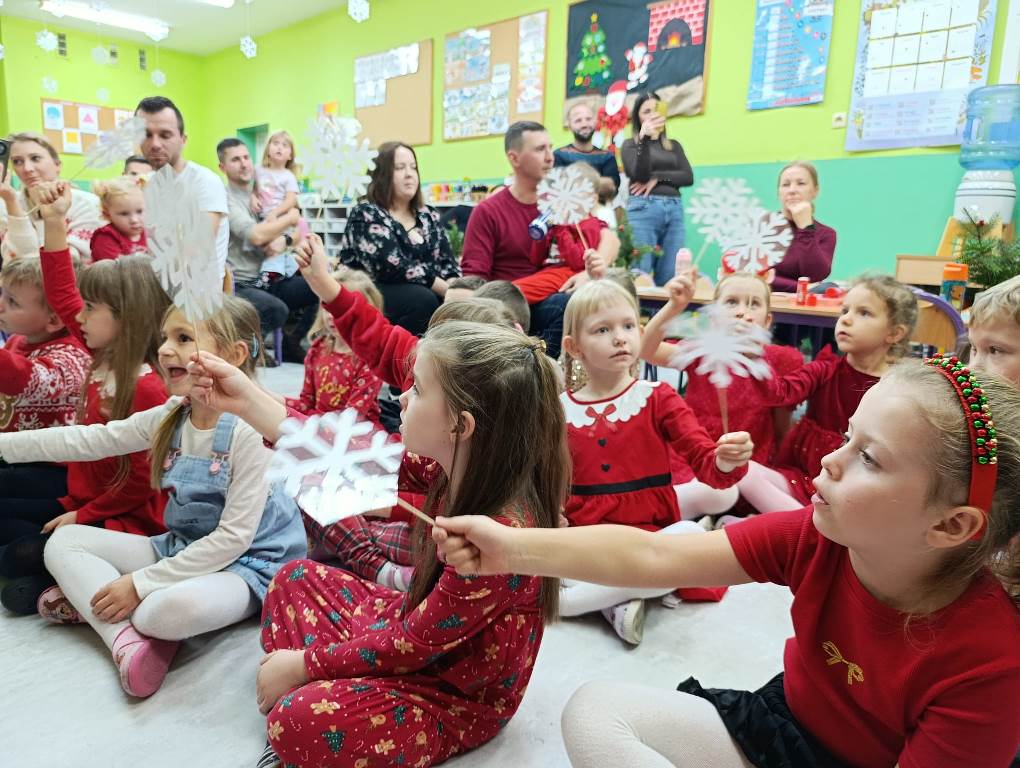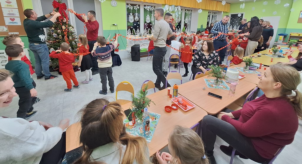 W grupie Jeżyki świąteczne spotkanie było pełne radości i rodzinnej atmosfery. Dzieci wraz z rodzicami uczestniczyły w warsztatach plastycznych, tworząc własne ozdoby na choinkę.