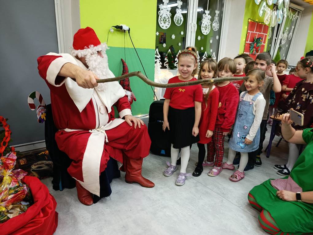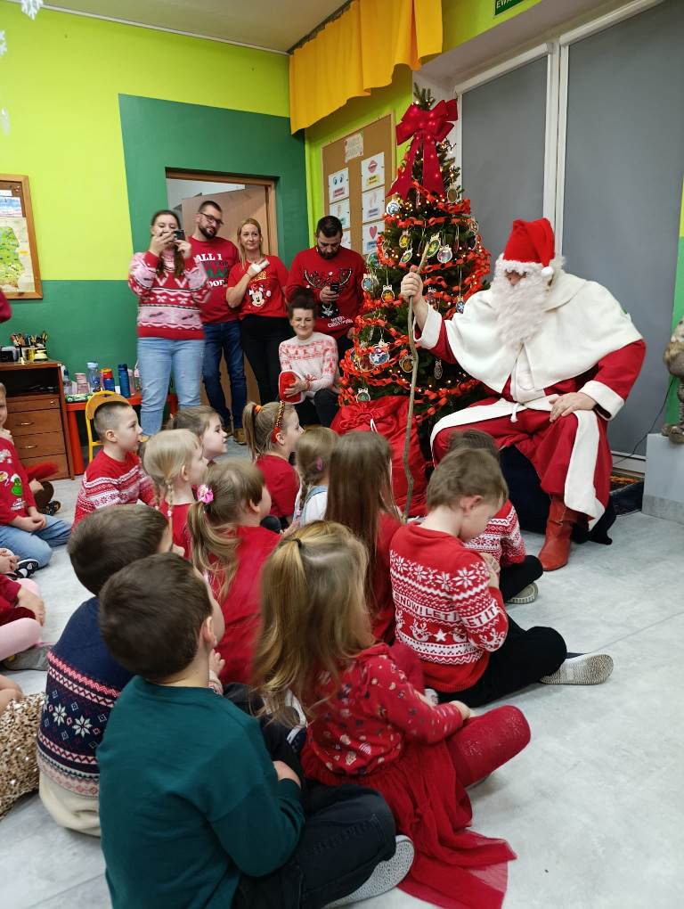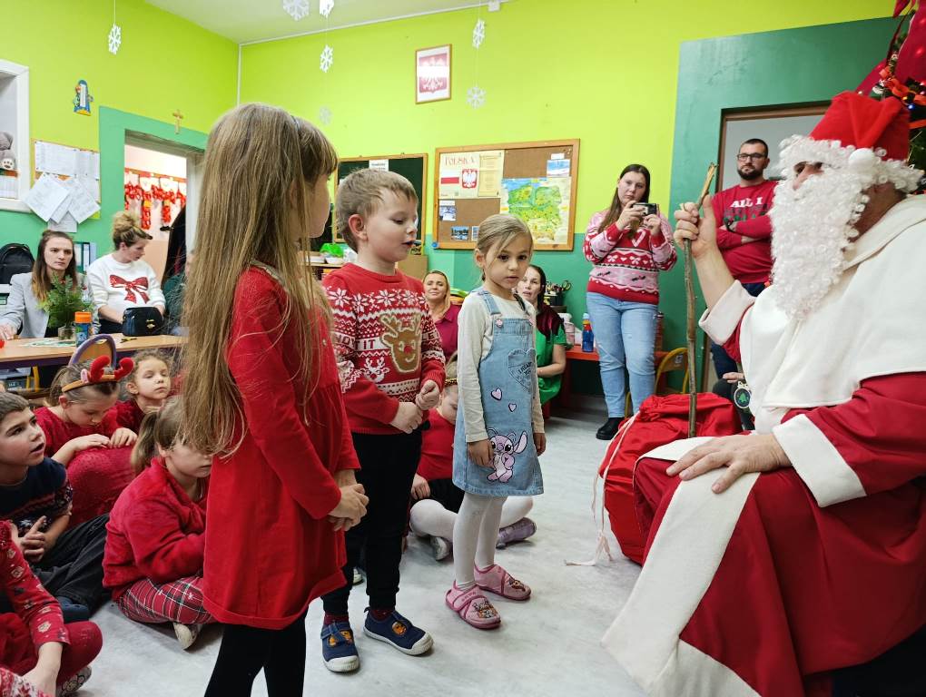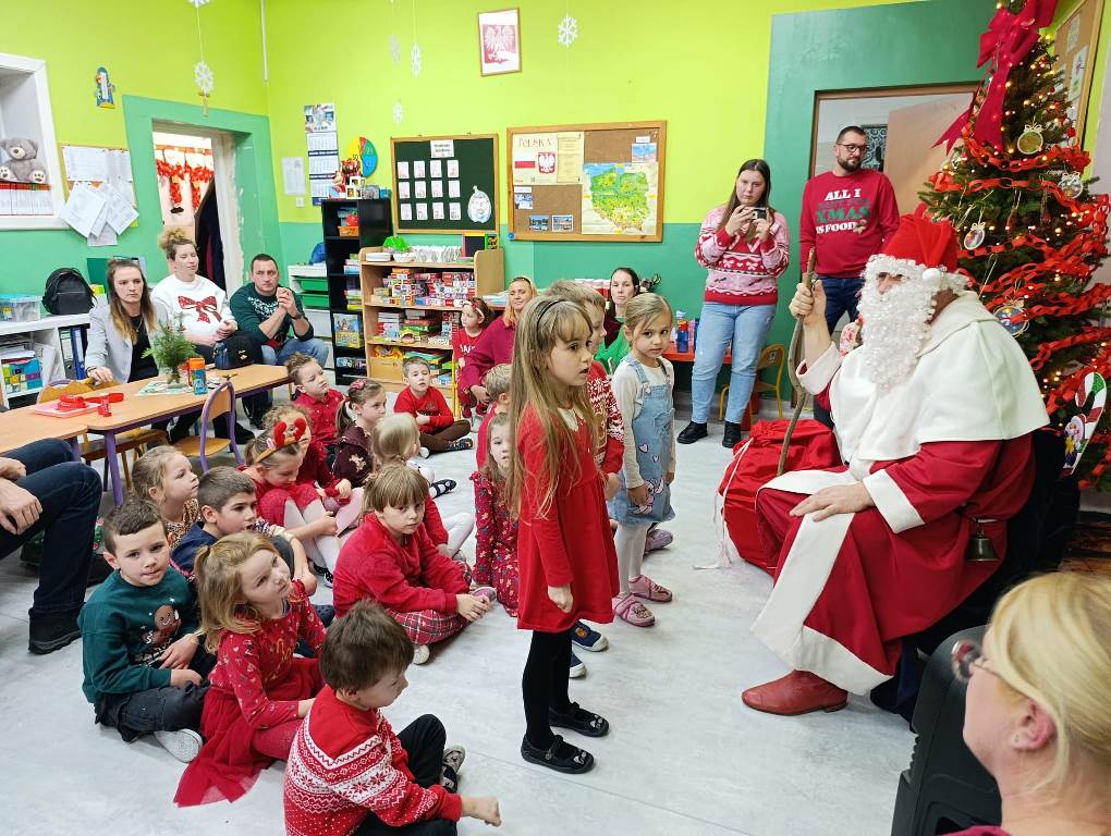 Gdy choinka była już pięknie udekorowana, do sali niespodziewanie przybył Gwiazdor, dla którego dzieci przygotowały krótki występ.